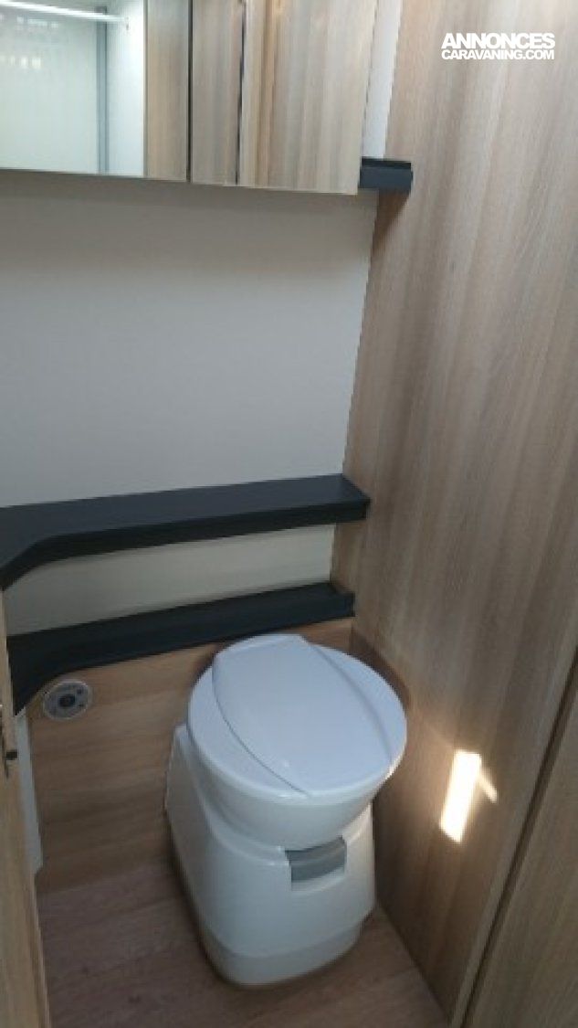 Chambre enfants avec 3 couchages possibles, Double penderie, Douche séparée, Eclairage soute, Evier Inox avec couvercle noir brillant en verre, Grand plan de travail, MODELE NEUF D EXPOSITION, Plaque cuisson 2 feux, Réfrigérateur 145 L, Support TV pour écran plat, Truma combi 4 gaz, WC céramique