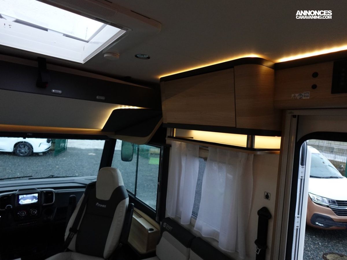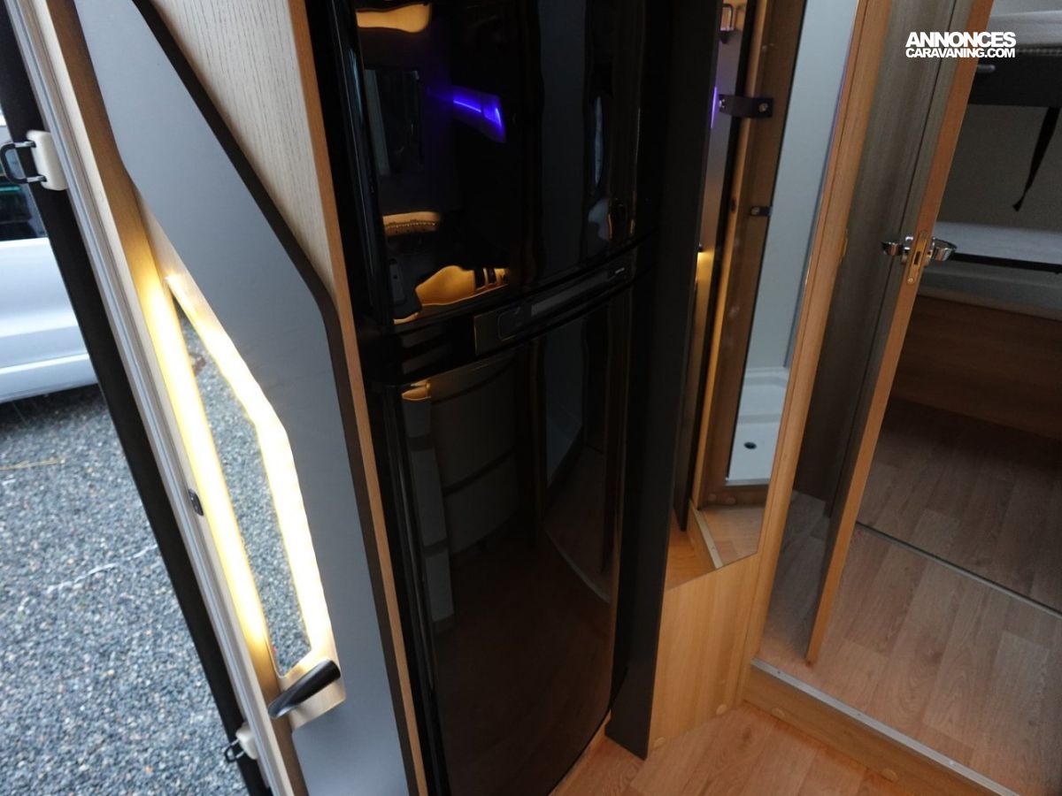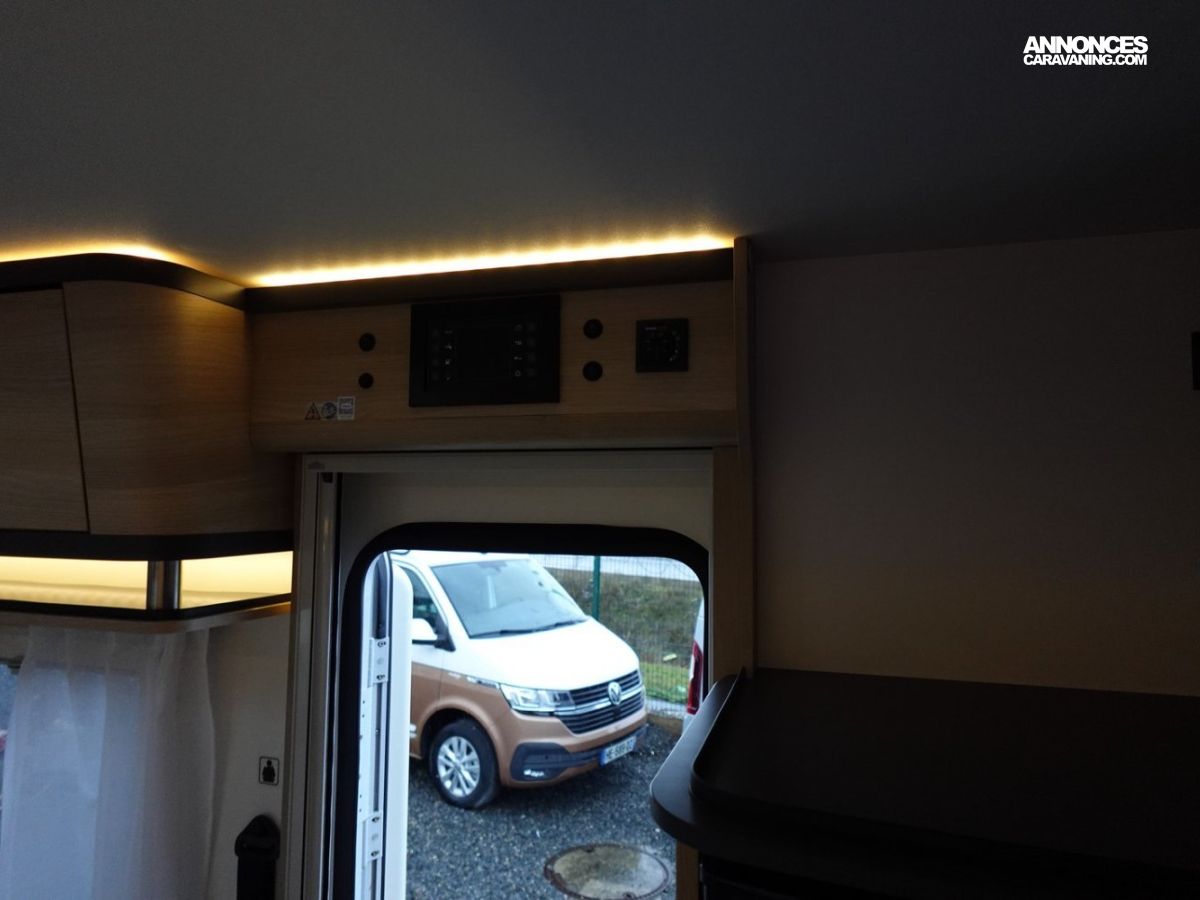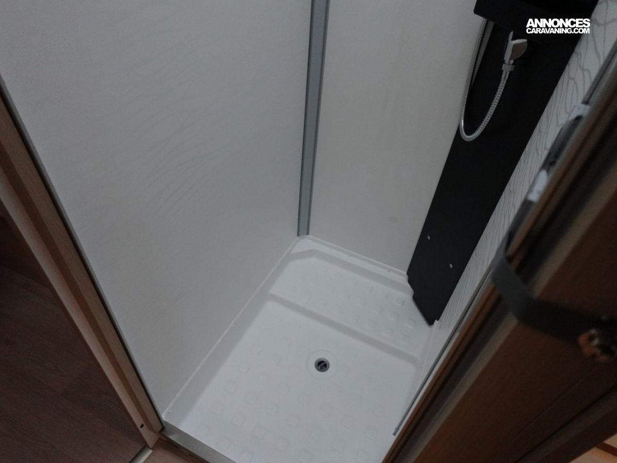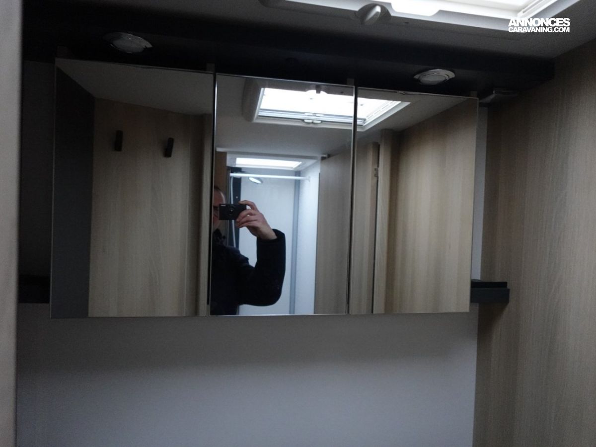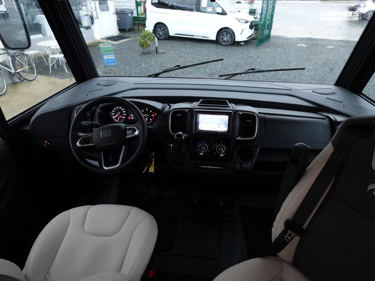 Intégral comprenant un salon avant panoramique, une douche indépendante de l’espace WC / lavabo, des lits superposés, un salon enfant transformable en couchage 1 personne, un lit de pavillon 2 places et une cuisine en L avec de nombreux rangements. Le tout en série limitée Spirit Edition