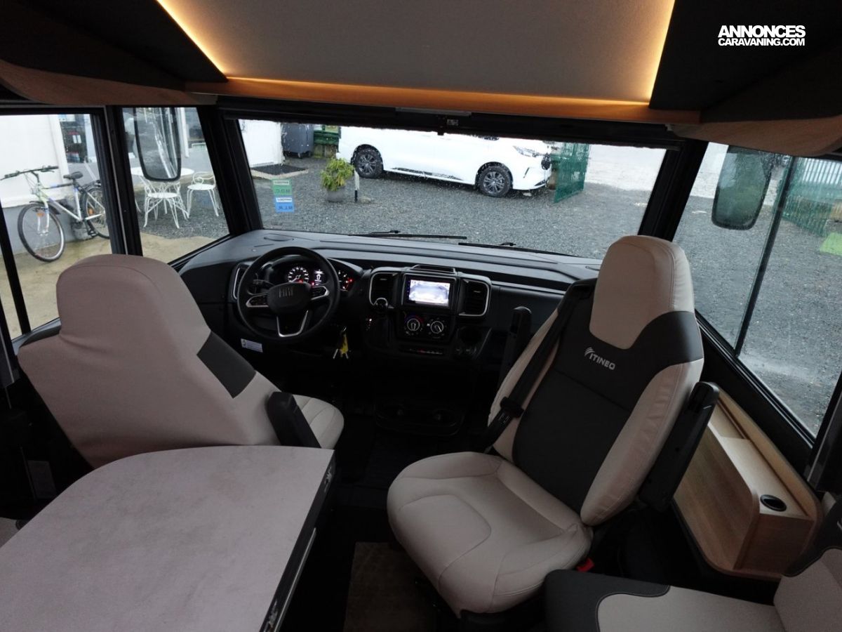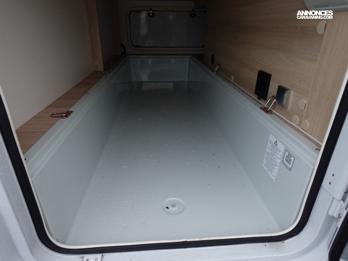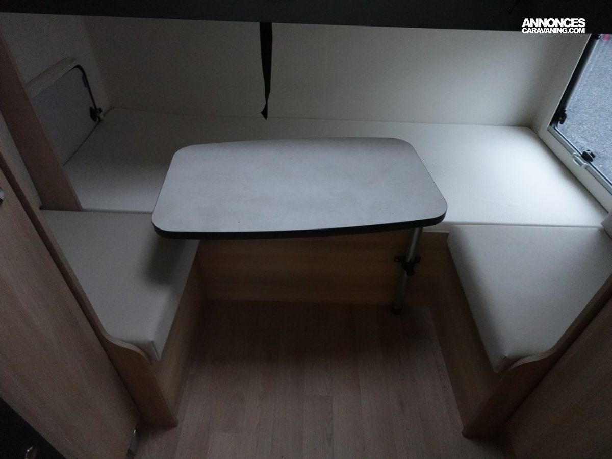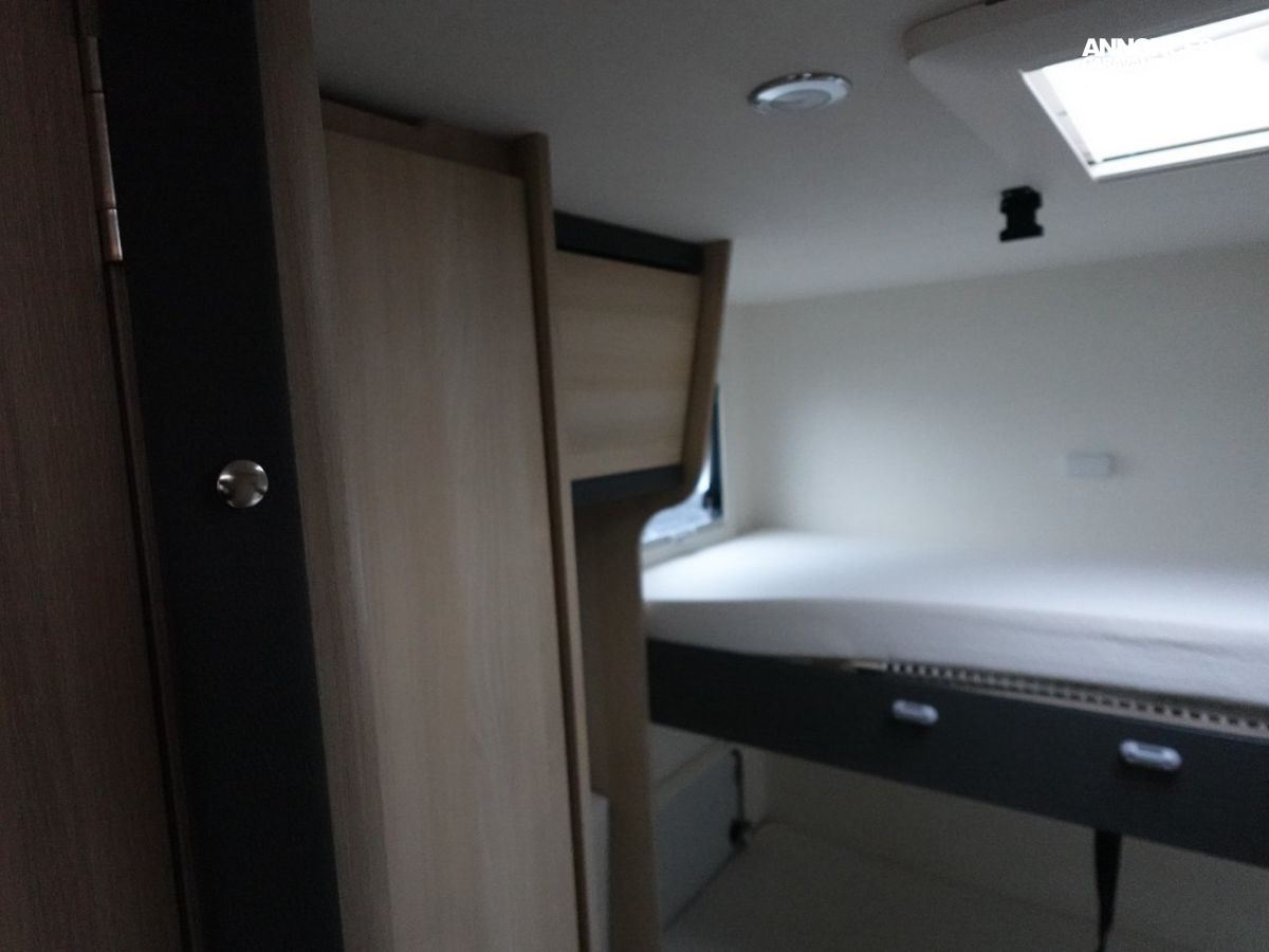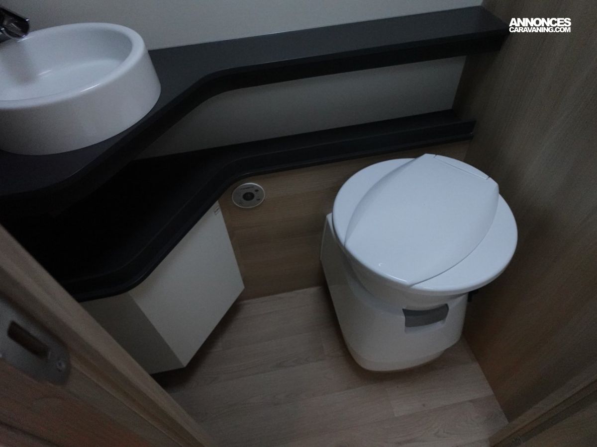 Intégral comprenant un salon avant panoramique, une douche indépendante de l’espace WC / lavabo, des lits superposés, un salon enfant transformable en couchage 1 personne, un lit de pavillon 2 places et une cuisine en L avec de nombreux rangements. Le tout en série limitée Spirit Edition