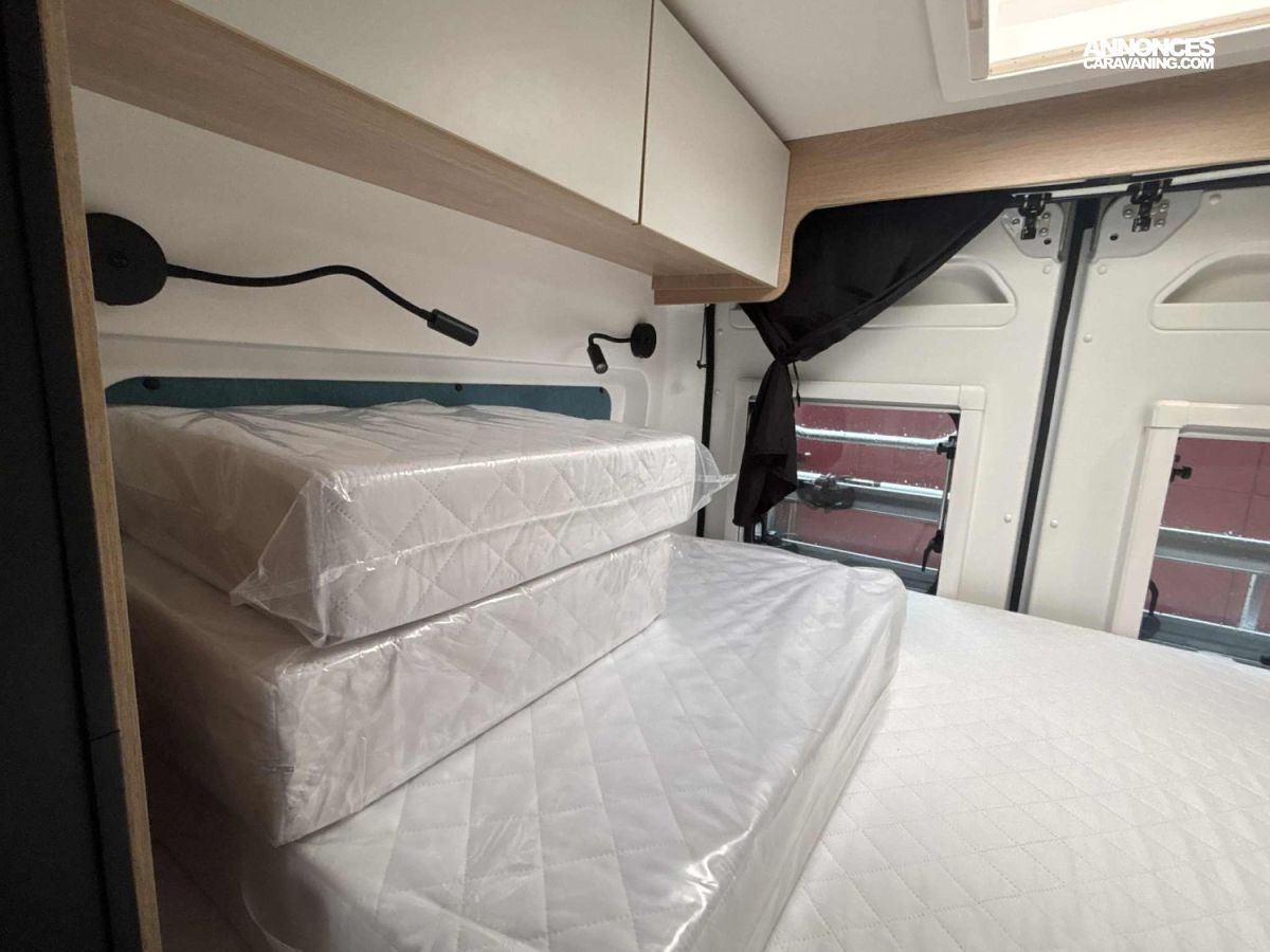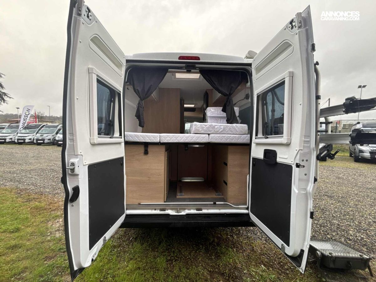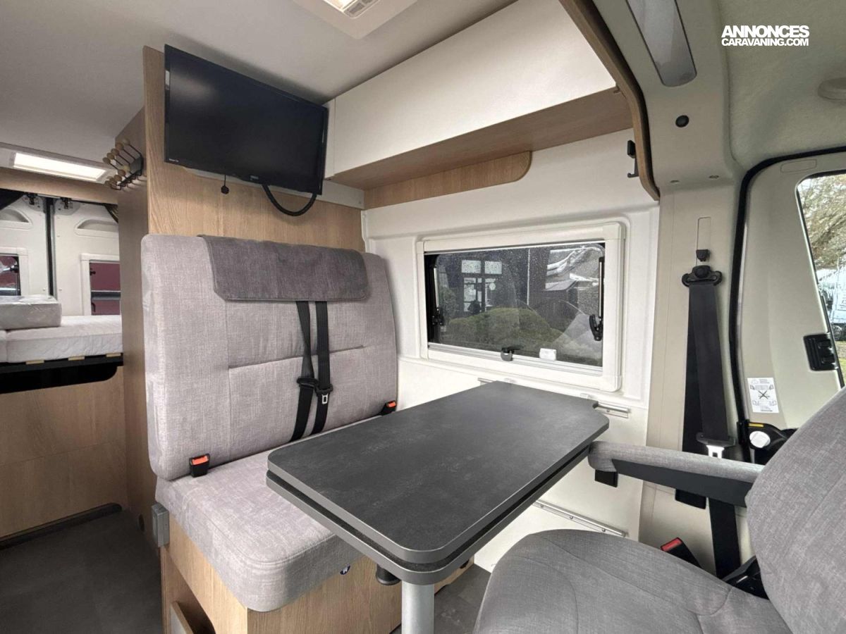 - MOUSTIQUAIRE DE PORTE, - VOLANT ET POMMEAU CUIR, - AUTORADIO DAB CARPLAY/ANDROID AUTO 8', - CAMERA DE RECUL, - JANTES ALU 15, - MOQUETTE CABINE, - OCCULTATIONS CABINE, - PORTE SERVIETTE, - PANNEAU SOLAIRE EXTRA PLAT 120W, - COUCHAGE SALON, - KIT MAINS LIBRE ET COMMANDE AU VOLANT, - STORE EXTERIEUR, - PORTE VELO, - MARCHE PIED ELECTRIQUE, - ANTENNE SAT AUTO, - COMMANDES AU VOLANT, - SMART TV