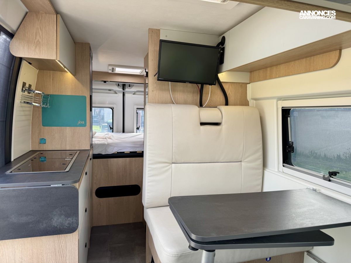 Le JOA Camp 60G 2022 est un fourgon aménagé de 5,99 m conçu pour offrir un maximum d’équipements dans un format facile à conduire et à stationner. Il repose sur un porteur fiable et performant, reconnu pour sa robustesse et son agrément de conduite.