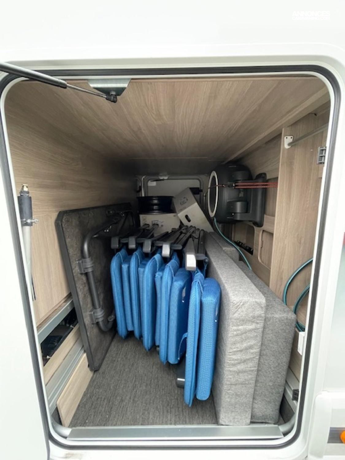 Nombreux accessoires de camping (table, chaises, alimentation électrique...) inclus