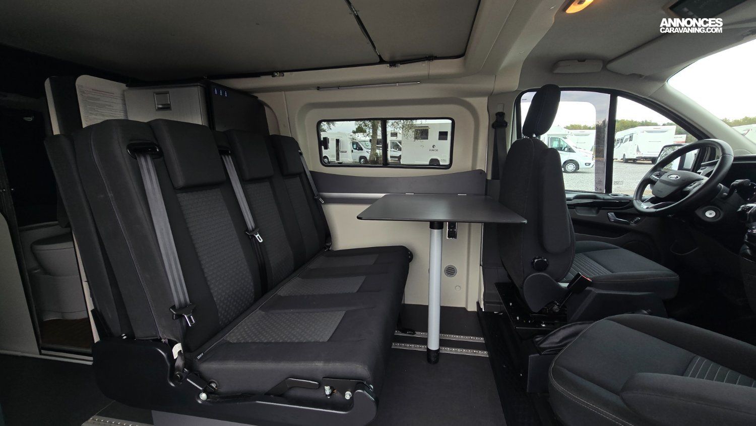 Comprenant un salon banquette transformable en couchage pour 2 personnes + le toit relevable pour 2 personnes . Un côté cuisine très bien aménagé avec 2 feux de cuisson, un évier et de nombreux rangements.