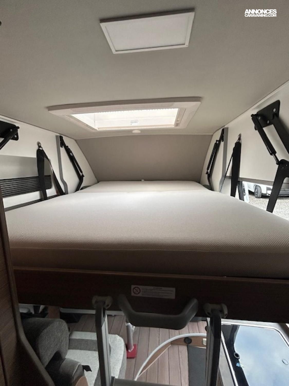 Lit transversal arrière relevable + lit double de pavillon.