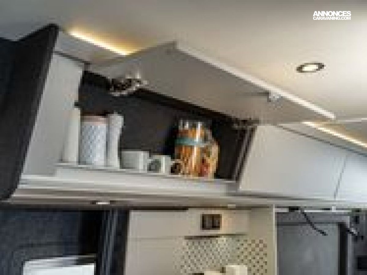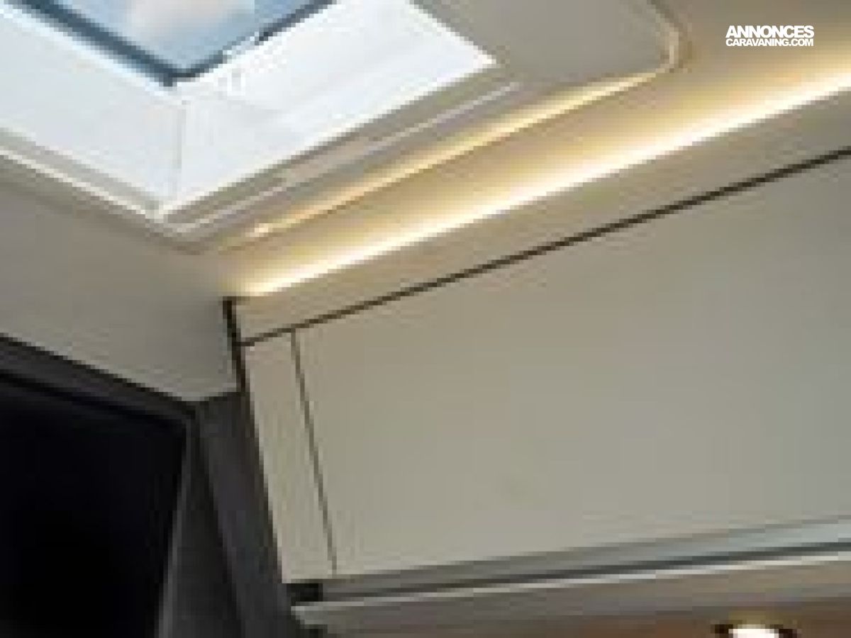 (Gouttière avec éclairage LED au dessus de la porte coulissante -Prise de courant 12 V supplémentaire (1 pièce) dans le garage-Pack éclairage d'ambiance cellule / Espace bain -Prise USB (1 pièce), dans les toilettes-Lampes de lecture dans la cabine-Prise 230 V SCHUKO supplémentaire dans la cuisine (1 unité)-Prise USB dans l'espace cuisine (1 unité)-Prise supplémentaire 230 V SCHUKO (1 unité) à l'arrière)