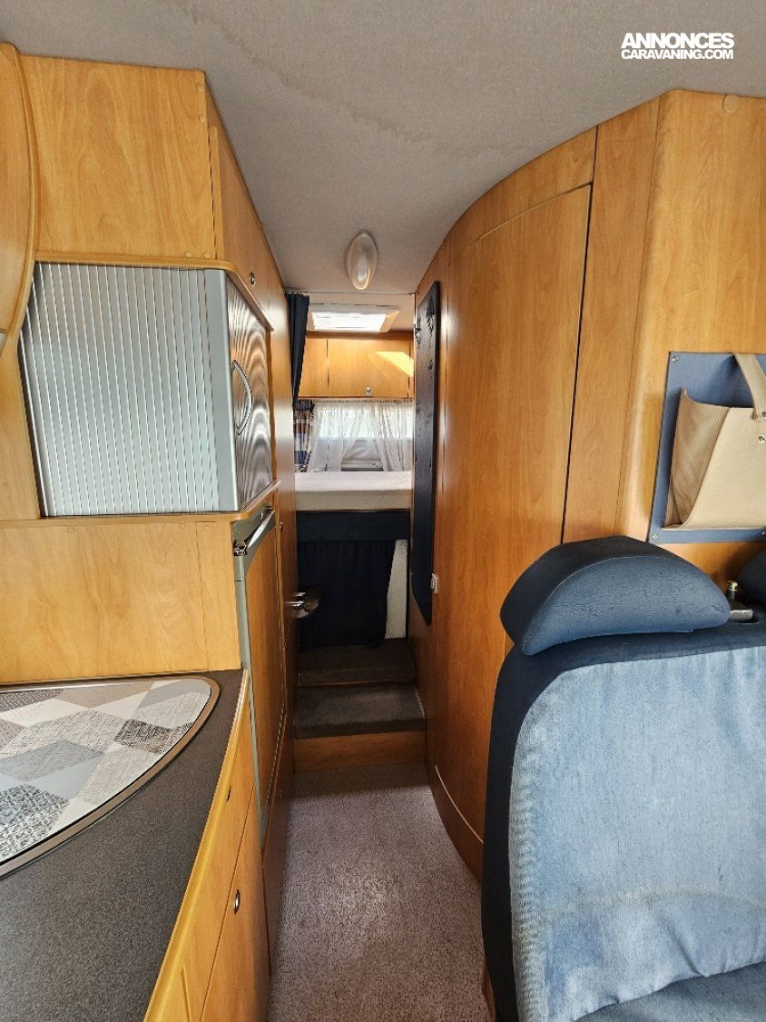 Intégral comprenant des lits superposés à l’arrière, une salle d’eau avec douche séparée, une cuisine avec de nombreux rangement, un salon panoramique avant et un lit de pavillon 2 places.