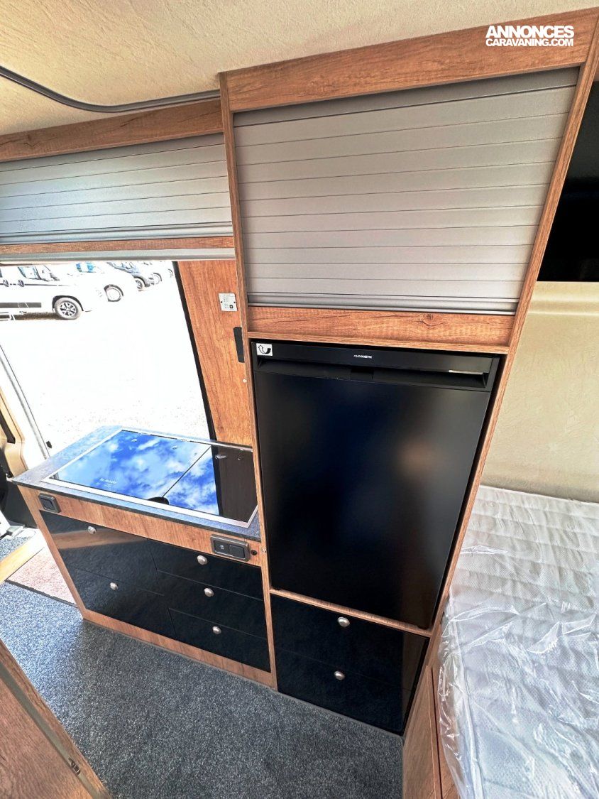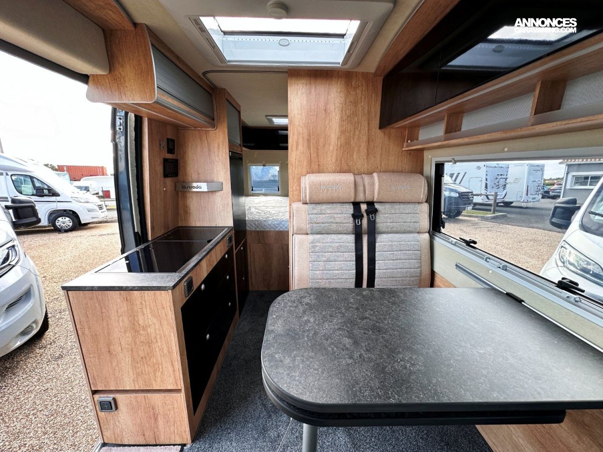 - PACK CONFORT : Commande Truma CP+ / Haut-parleurs cellule / Housses sièges cabine (tissu cellule) / Marchepied électrique 700mm / Place assise équipée du système ISOFIX top-tether sur la banquette / Porte moustiquaire pour porte coulissante / Réfrigérateur avec fonction AES (Avanti M : frigo à compression 50l) / Remi-Rollo - vitres latérales comprises / Tableau de bord Techno avec applications chromées / Tapis cabine la strada / Tapis cellule (amovible) / Truma MonoControl avec Crashsensor / Volant et manchette du levier de changement de vitesse en cuir