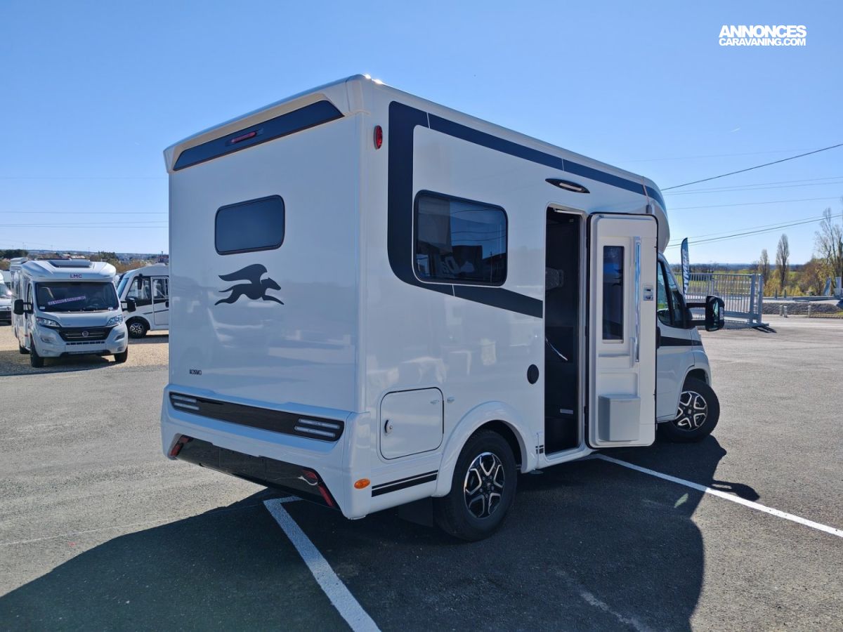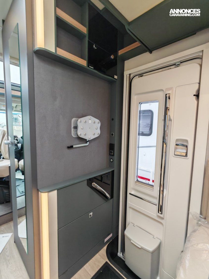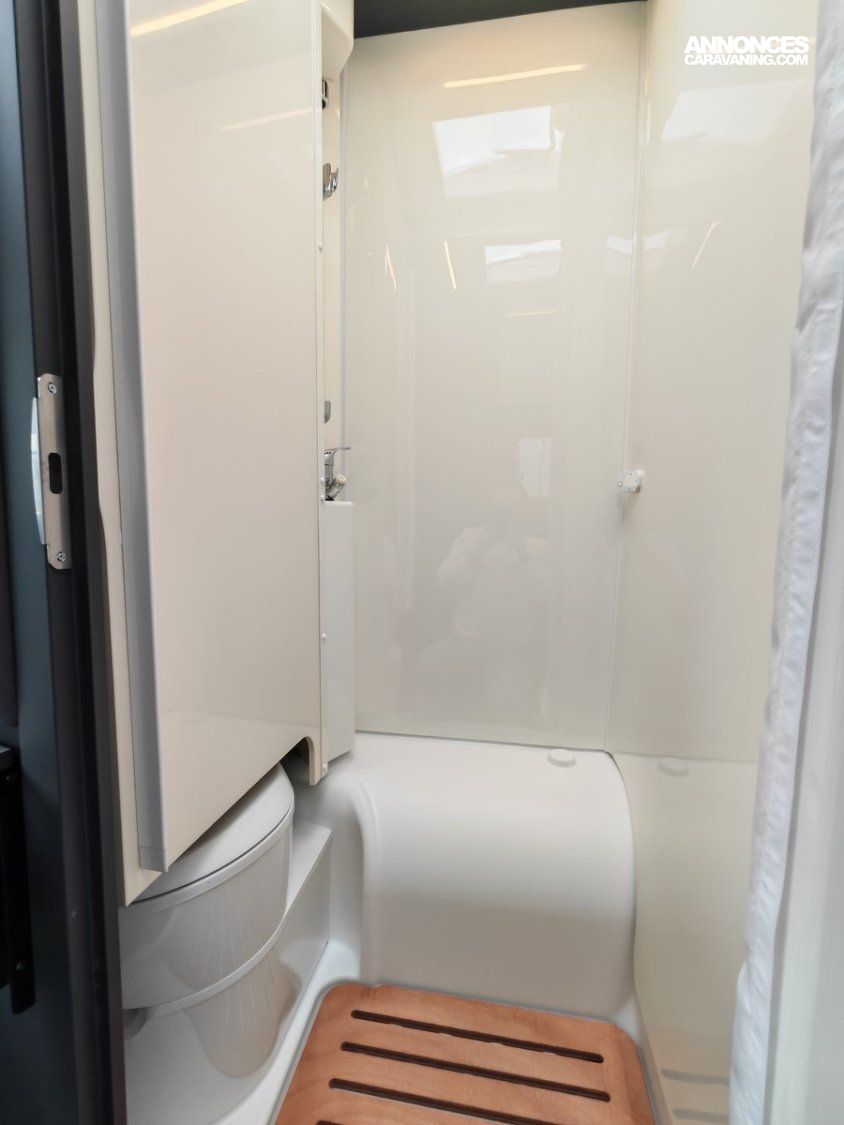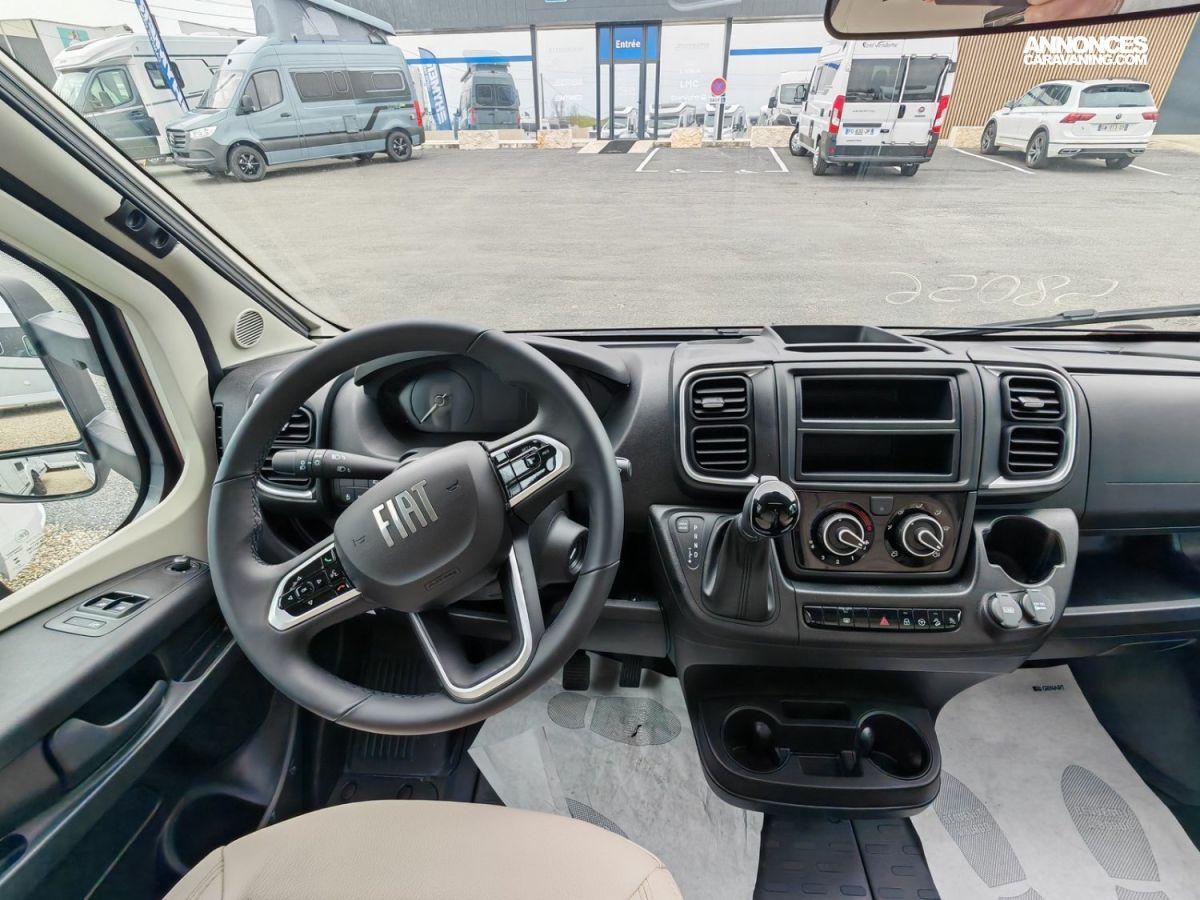- Pack "One" (réservoir d'eaux usées isolé et chauffé, lanterneau Skyview, hotte aspirante, prédisposition caméra de recul, stores plissés occultants de cabine, prédisposition panneau solaire, caillebotis de douche, tapis de cabine, porte cellule premium XL, habillage des parois de la chambre à coucher arrière en simili-cuir, grand tiroir et porte-bouteille coulissant dans la cuisine),