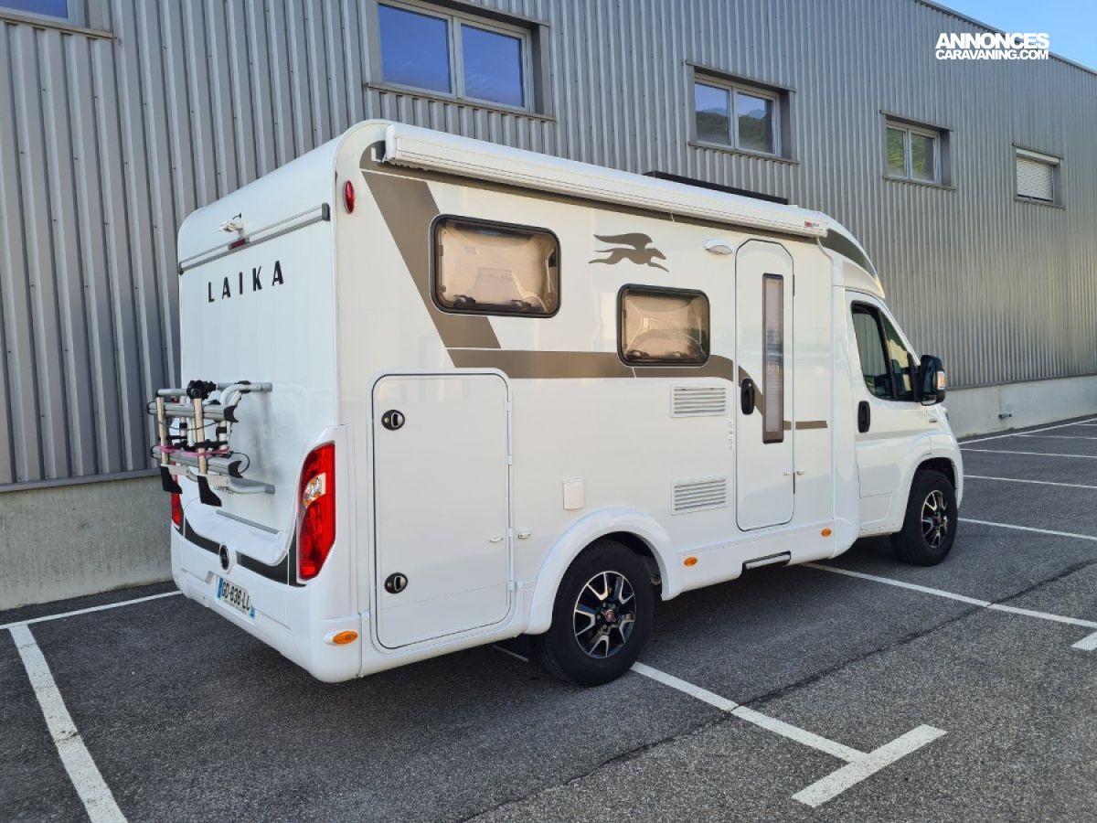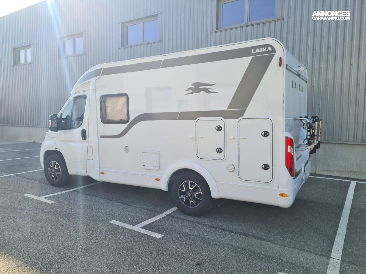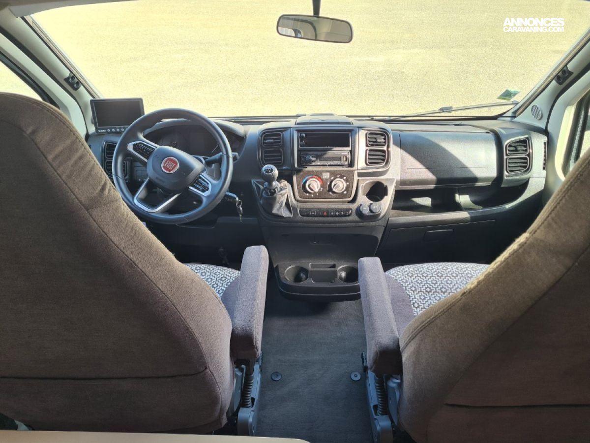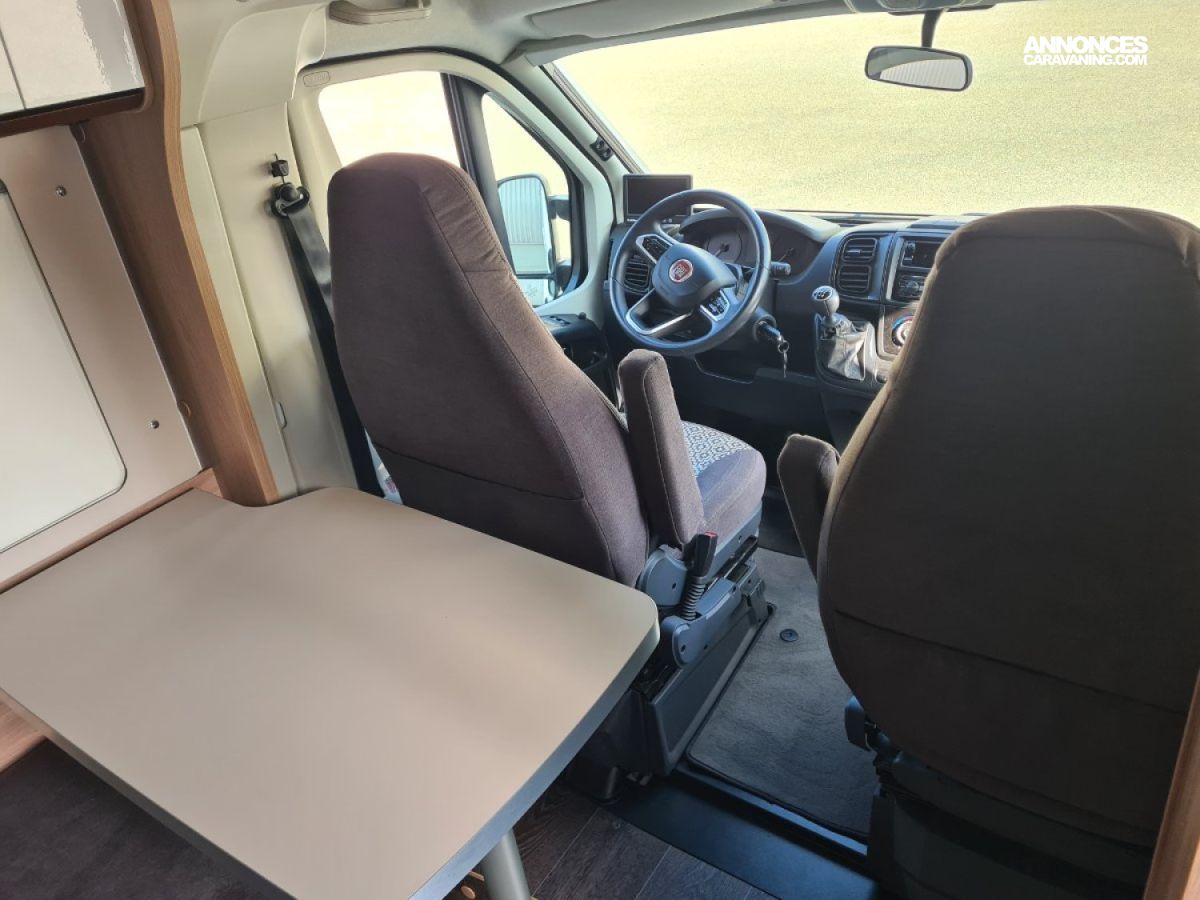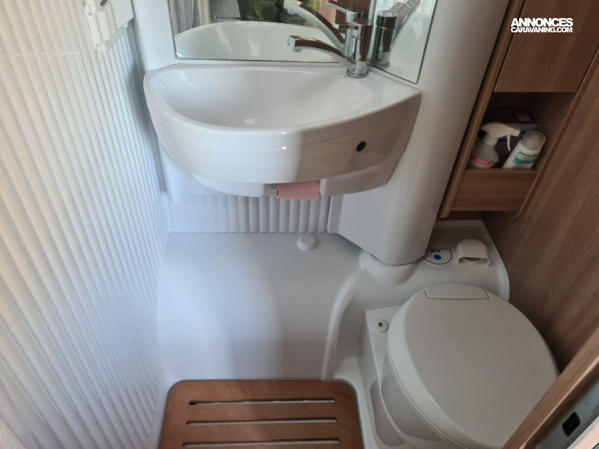 Lit transversal sur grande soute traversante - Douche avec WC séparé par une paroi rigide - Plaque de cuisson 3 feux gaz - réfrigérateur - Chauffage et chauffe-eau Truma gaz - Stores cabine Remi - Store banne - Panneau solaire - TV - Porte vélos pour vélos électriques -