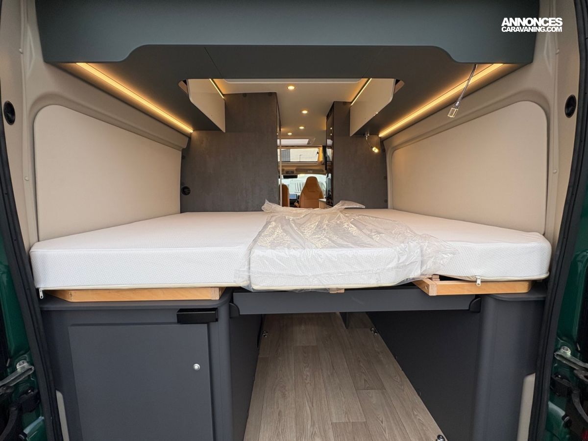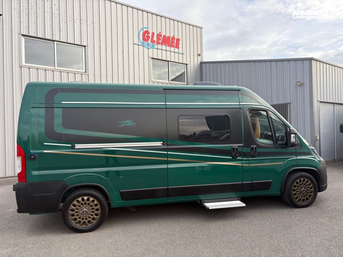 Pack châssis MaxPack SafetyPack Multimédia PioneerPeinture Verde MugelloMotorisation 180 CVBoîte de vitesses automatiqueJantes Racing 18″Élargisseur passages de rouesMarchepied électriqueStore plissés de cabinePack ConfortChauffage gazoleAmbiance Cognac MateraMobilier « Forest Green + Stone Grey”Baies affleurantesDouche vario