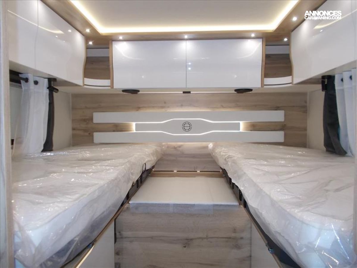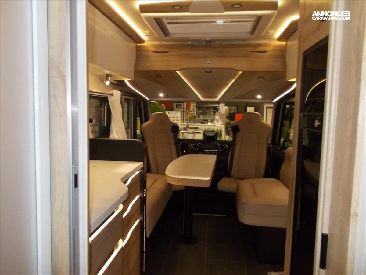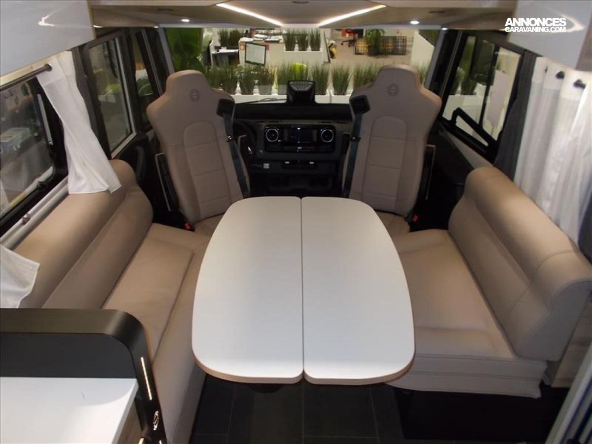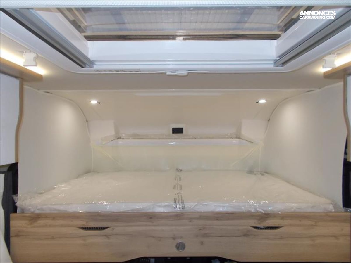 Moquette cabine, ESP ABS Start and stop, Lit pavillon 140*190, Panneau de contrôle tactile 7", Pare soleil manuel, Porte chauffeur verrouillage centralisé, Frein à main électrique, Retroviseurs électriques et dégivrants, Pneumatiques 4 saisons, Camera 360 °, Combi 6 Truma, Allumage automatique des feux et essuies glaces, Volant et pommeau de levier de vitesse en cuir