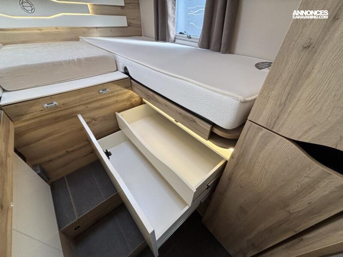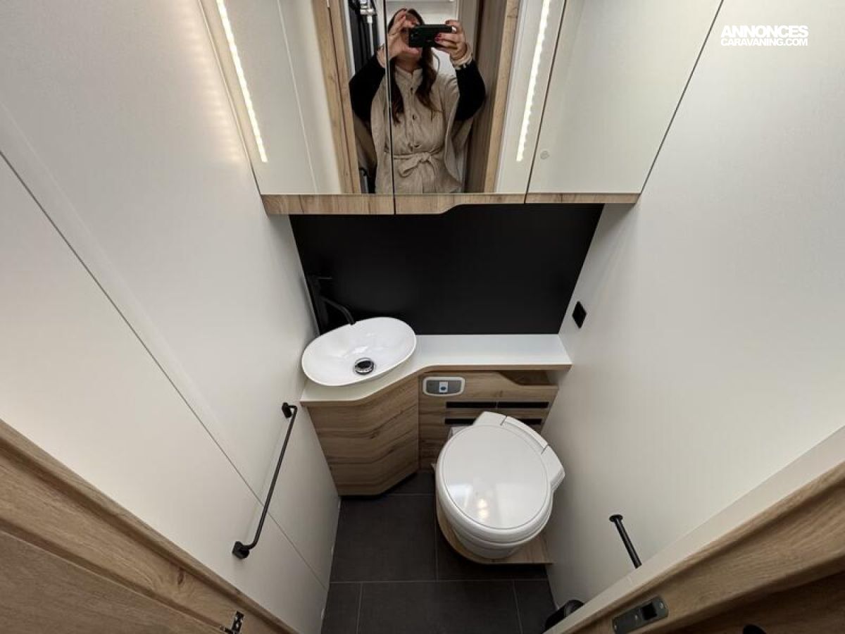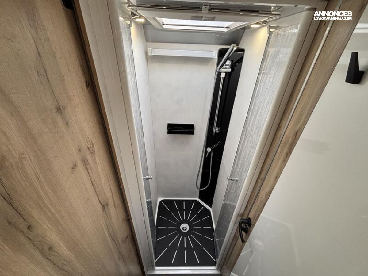 - Banquettes face-face, douche et toilettes séparées