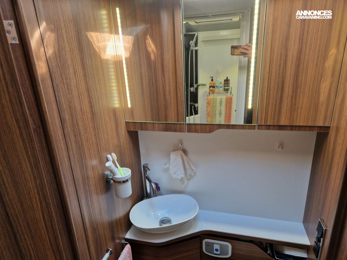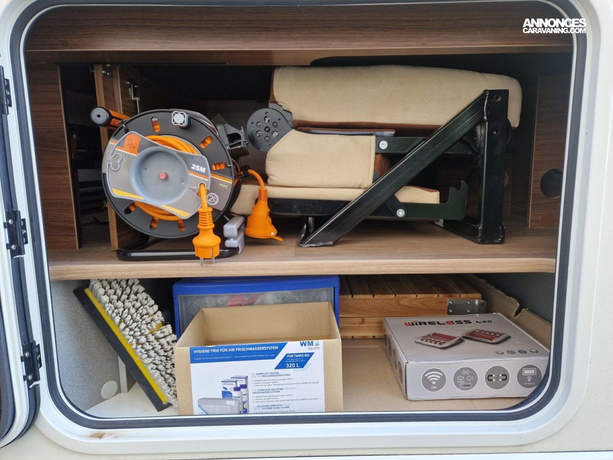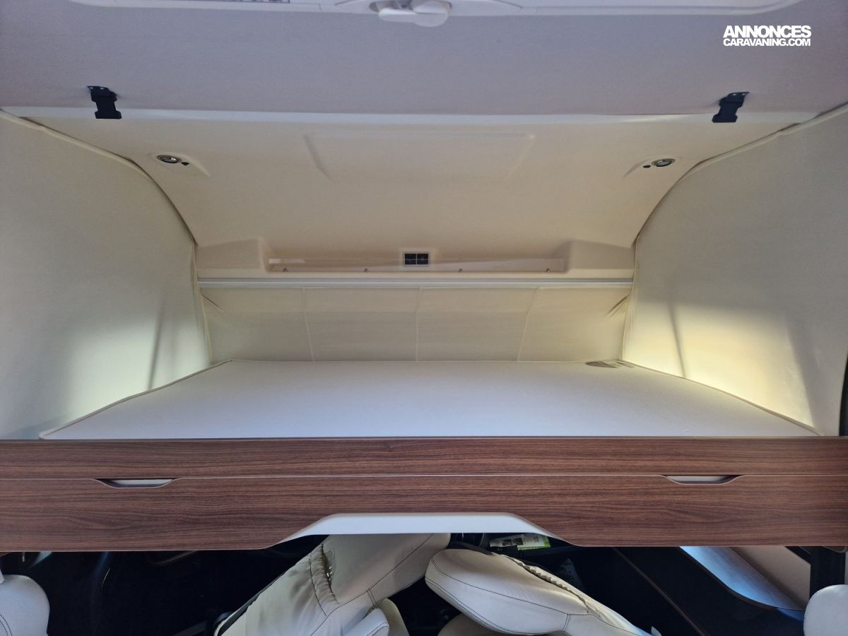 CHAUFFAGE CENTRAL ALDE, GAZINIERE 2 FEUX, TIROIRS FERMETURE RALENTIE, SELLERIE CUIR, DOUCHETTE DANS SOUTE, DOUCHE ET WC SEPARES, ECLAIRAGE LED, EXTRACTEUR D'AIR, FOUR A GAZ, MOUSTIQUAIRE DE PORTE CELLULE, REFRIGERATEUR 150L, REFRIGERATEUR TRI MIX, RESERVOIRS D EAUX ISOLES ET CHAUFFES, STORES PLISSES DE CABINE, VOLET AVANT ELECTRIQUE, SIEGE AGUTI, DOUBLE CLOISON DE SEPARATION, SALON FACE A FACE, STORE EXTERIEUR ELECTRIQUE, RESERVOIR EAUX USEES HORS GEL, LANTERNEAU PANORAMIQUE, SOG, CLIMATISEUR DE SOUTE REVERSIBLE, WC CERAMIQUE