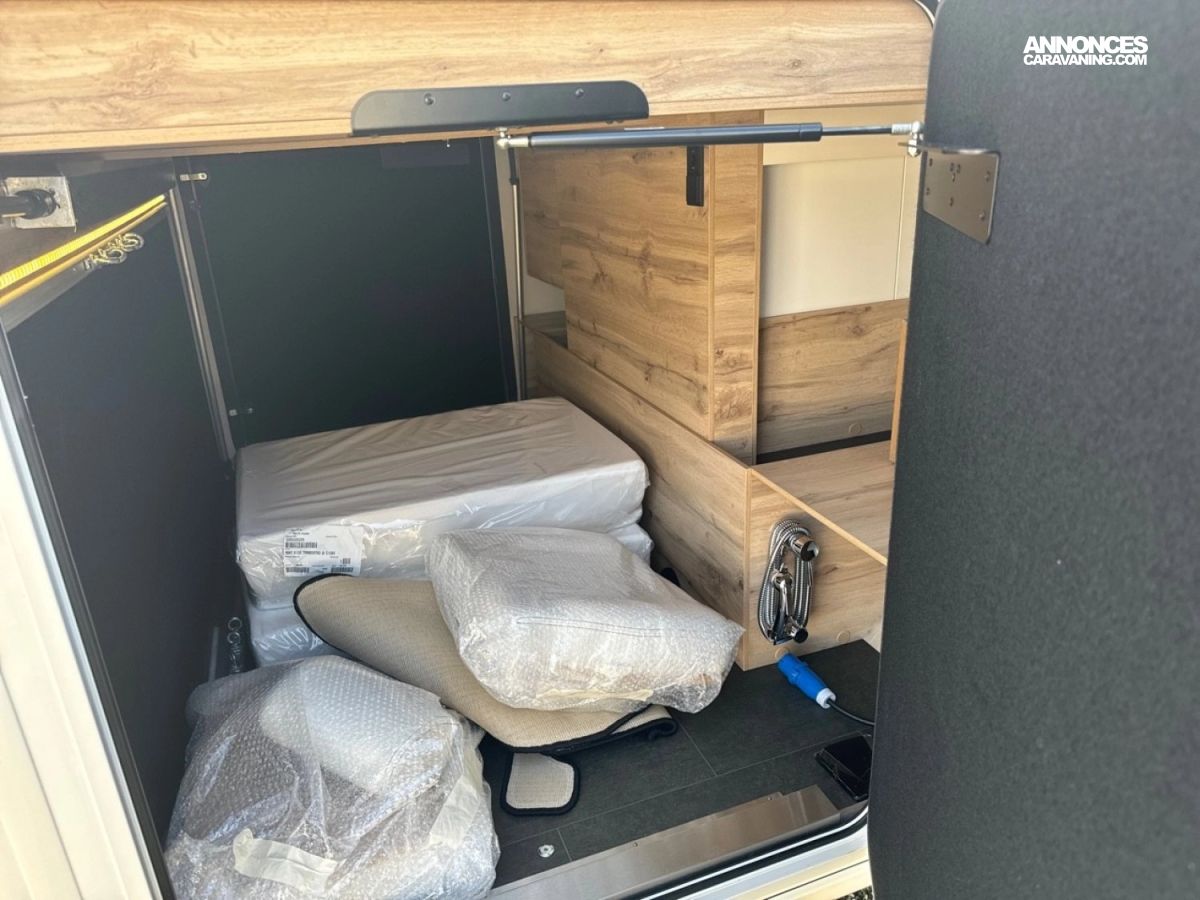 • Lit pavillon électrique longitudinal à tiroir avec échelle, filet anti- chute, tablette de rangement, prises 12 V et USB