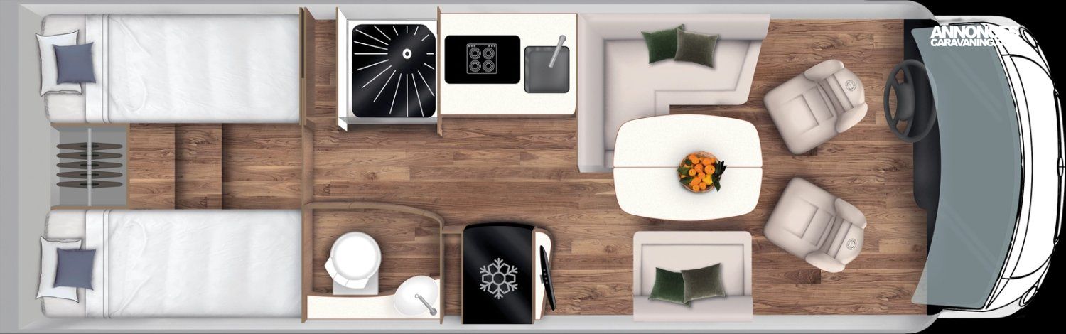 • Lit central rétractable électriquement ou lits jumeaux avec système électrique d’écartement de la paroi**