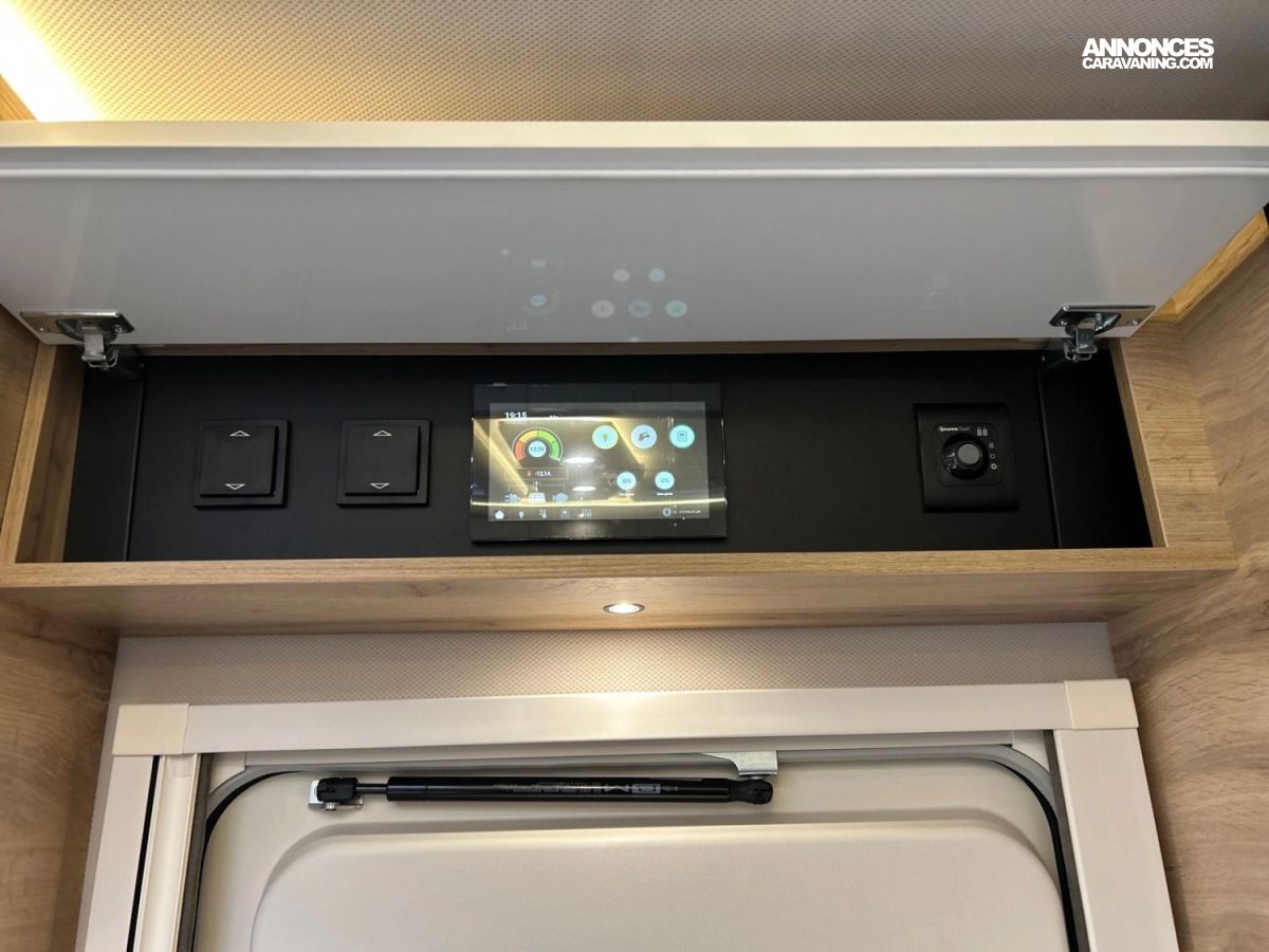 - Store d'occultation pare-brise à lames et commande électrique avec manivelle de secours.