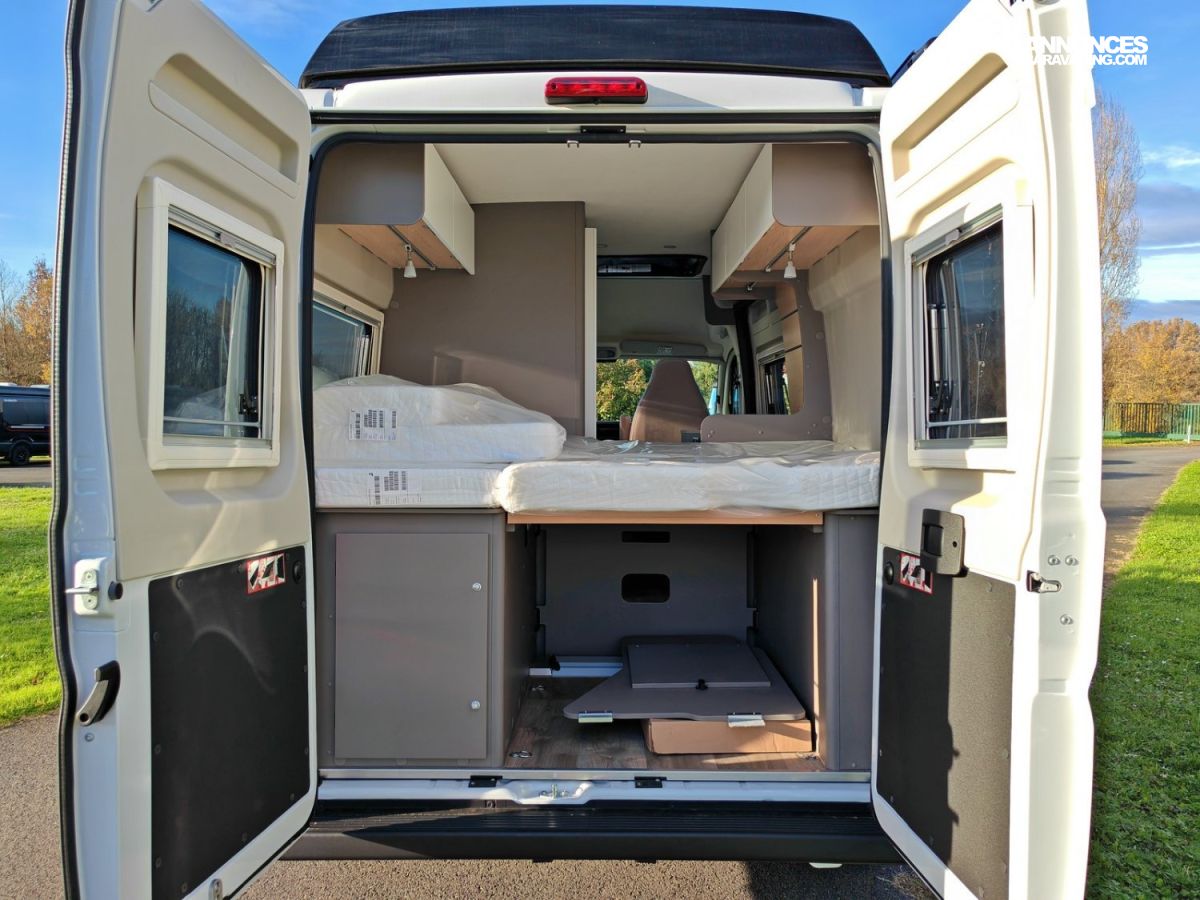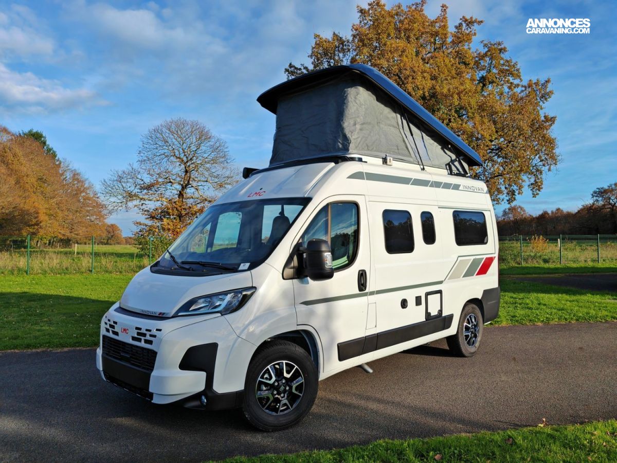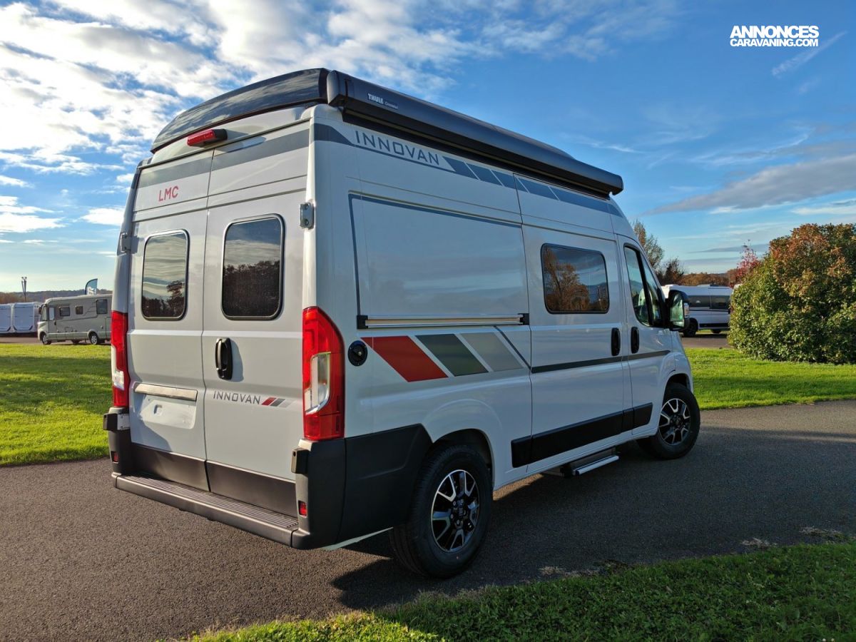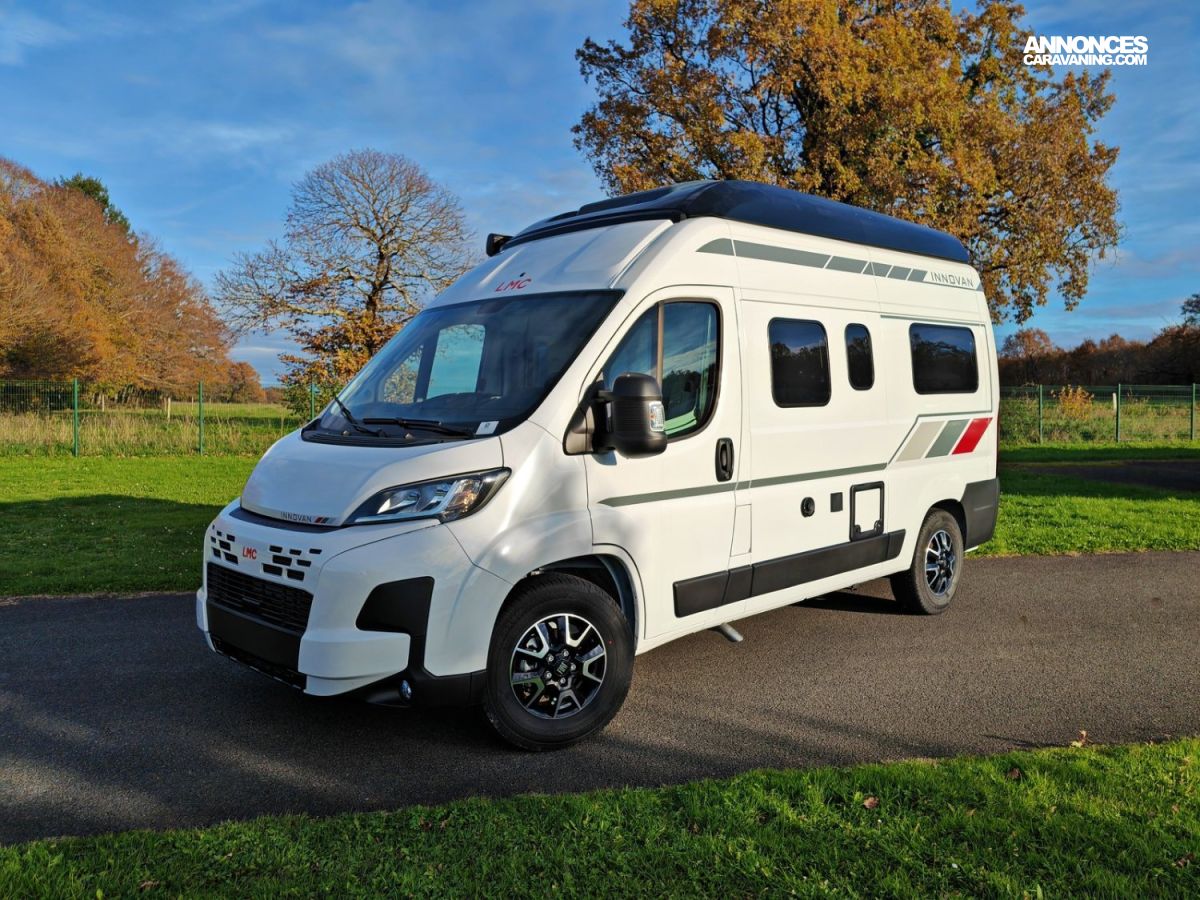 - Pack "Innovan" (baie de SDB, séchoir à linge, transformation de la dînette en couchage, réservoir d'eaux usées isolé, prédisposition TV, rallonge de table de dînette, moustiquaire de porte cellule, stores plissés de cabine, équipement de douche, grand lanterneau, caillebotis de douche, store coloris anthracite, marchepied extra-large),