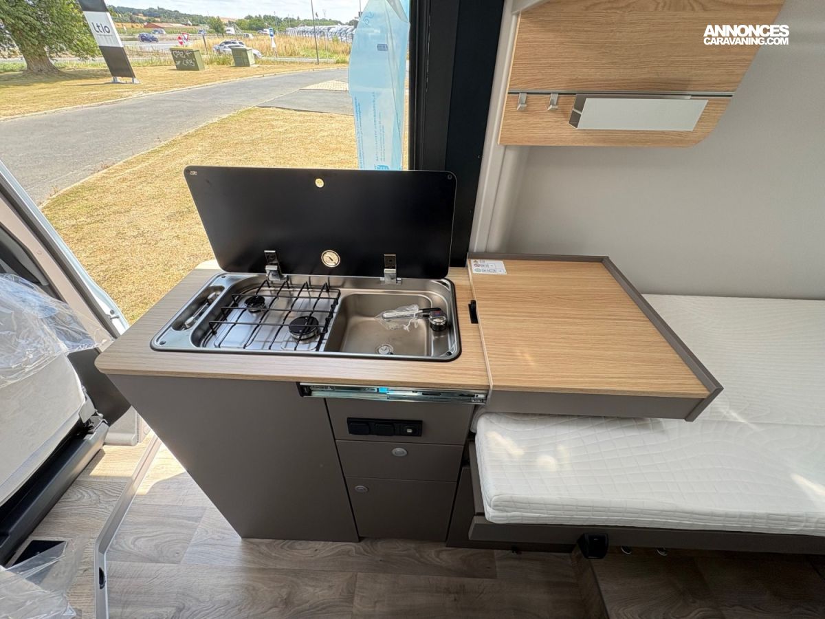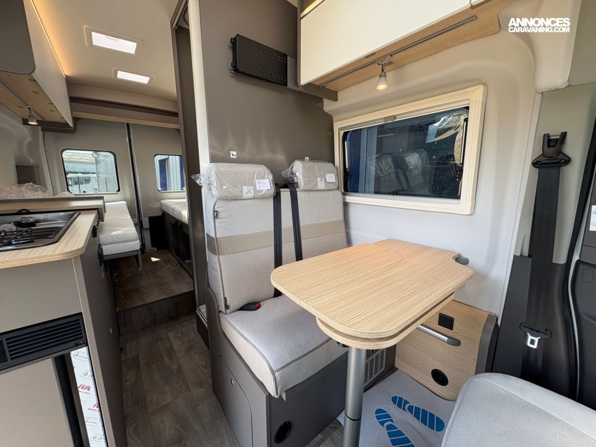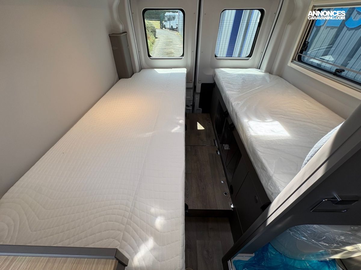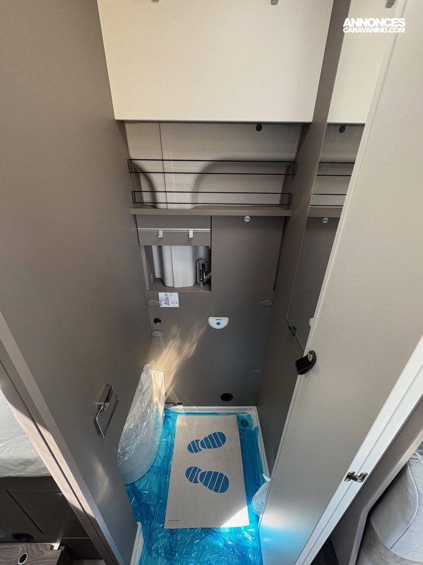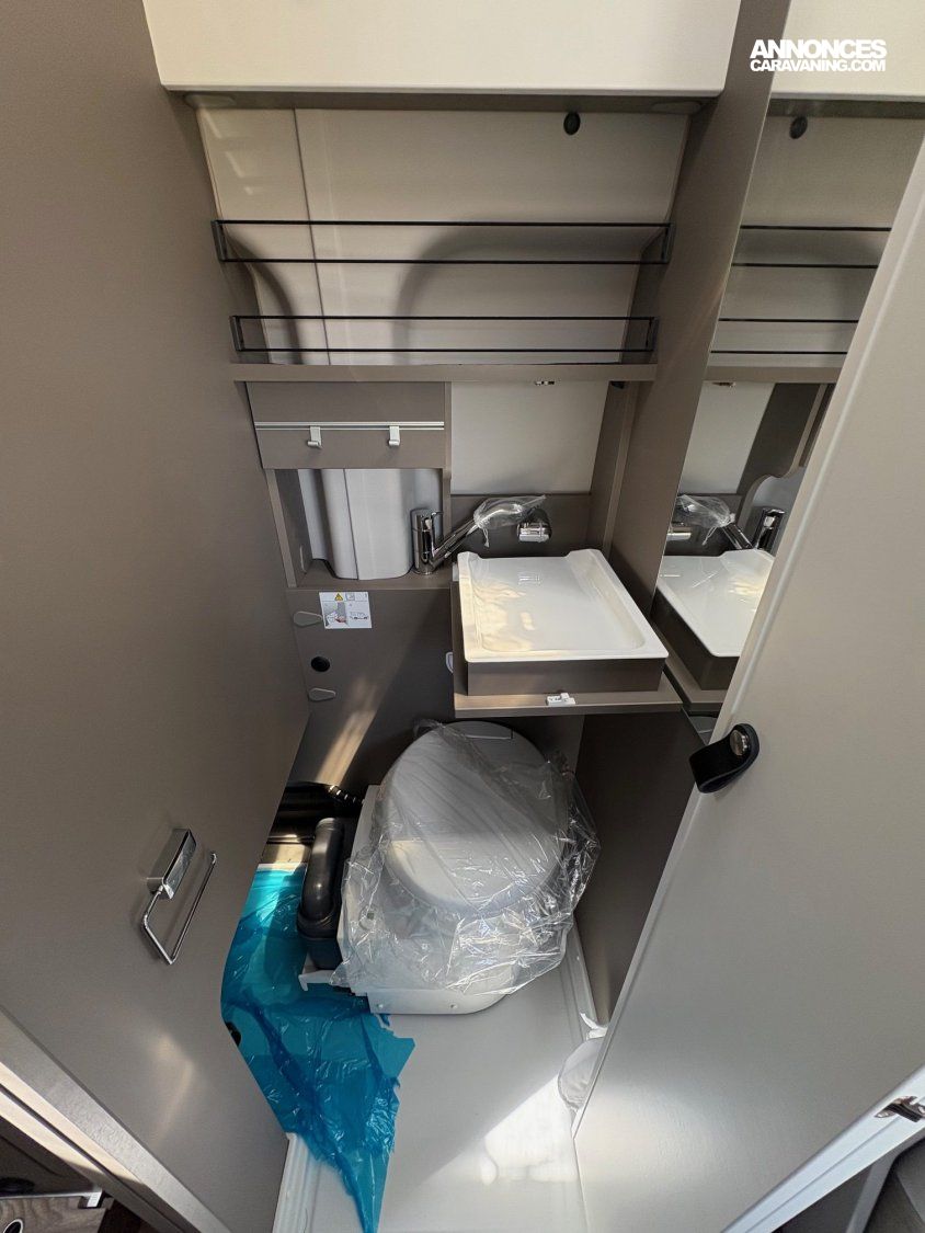 Porte moustiquaireMarche d’accès électrique extra-largeÉquipement doucheStores plissés de cabineStore extérieur coloris anthracitePlateau pivotant pour extension de tableLanterneau avec verre translucide 700 x 500 mm avec store occultant et moustiquaire dans le séjourPrise USB pour rail multifonctionPrédisposition TVDînette transformableRéservoir eaux usées isolé, manuel et chauffé électriquementSéchoir à linge pliable dans la salle d’eau/douchePack sécurité