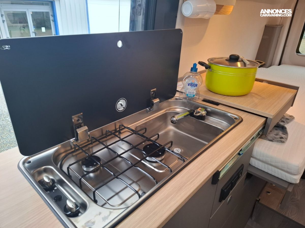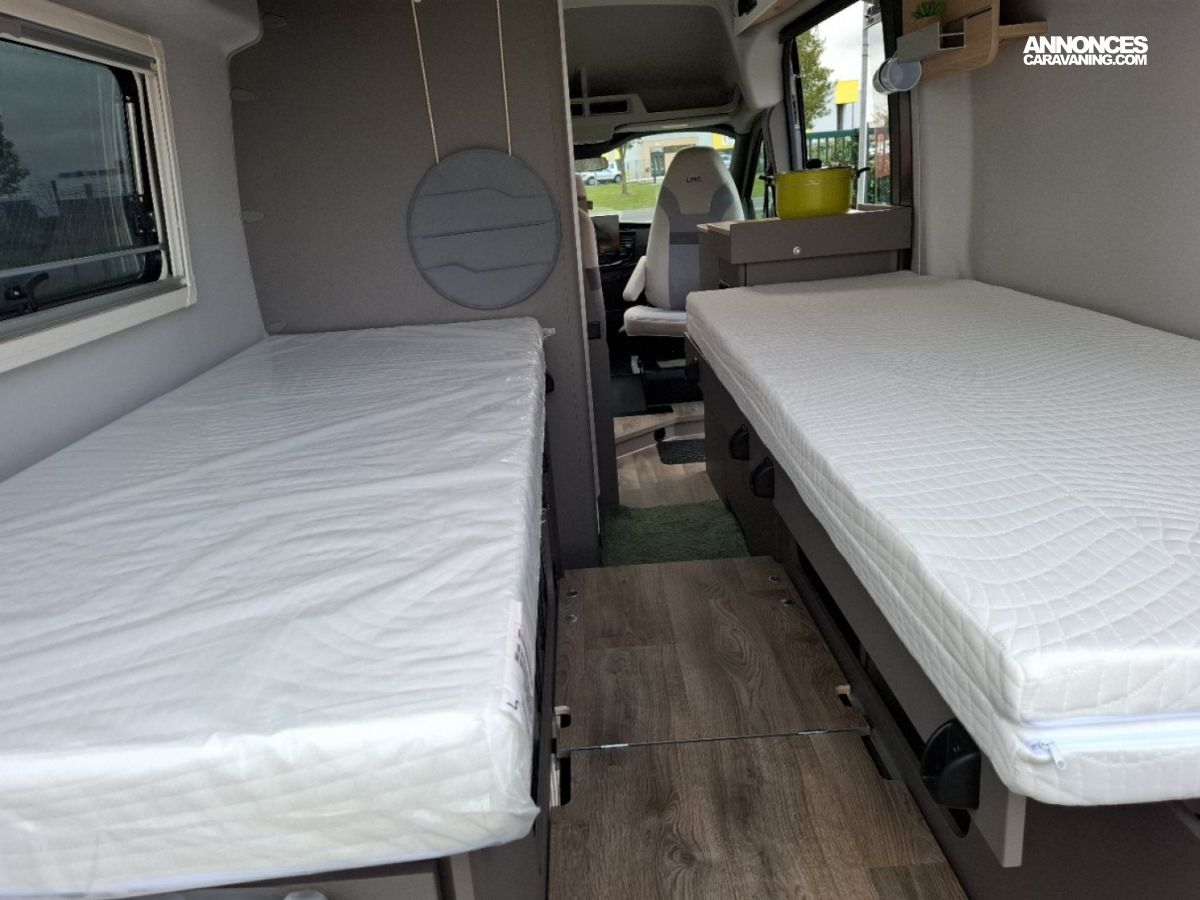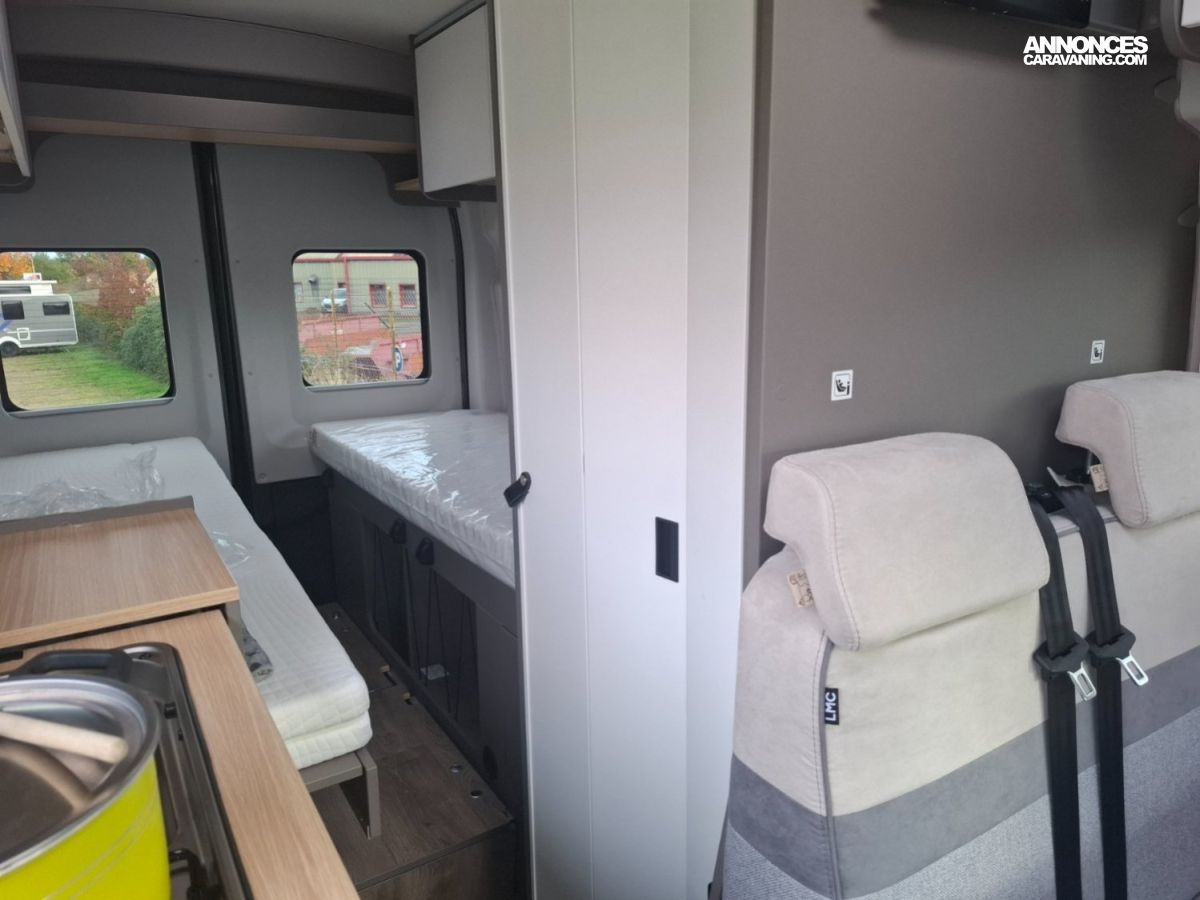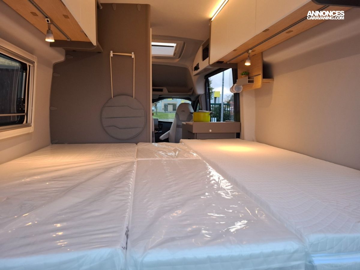 Un couchage facilité (lits jumeaux et/ou couchage XXL), une motorisation au top (170 CV et boîte automatique), un excellent niveau d'équipements, la fiabilité d'une marque de groupe HYMER (12 ans de garantie étanchété) et un design résolument différent (couleur de carrosserie Gris Magnetic)