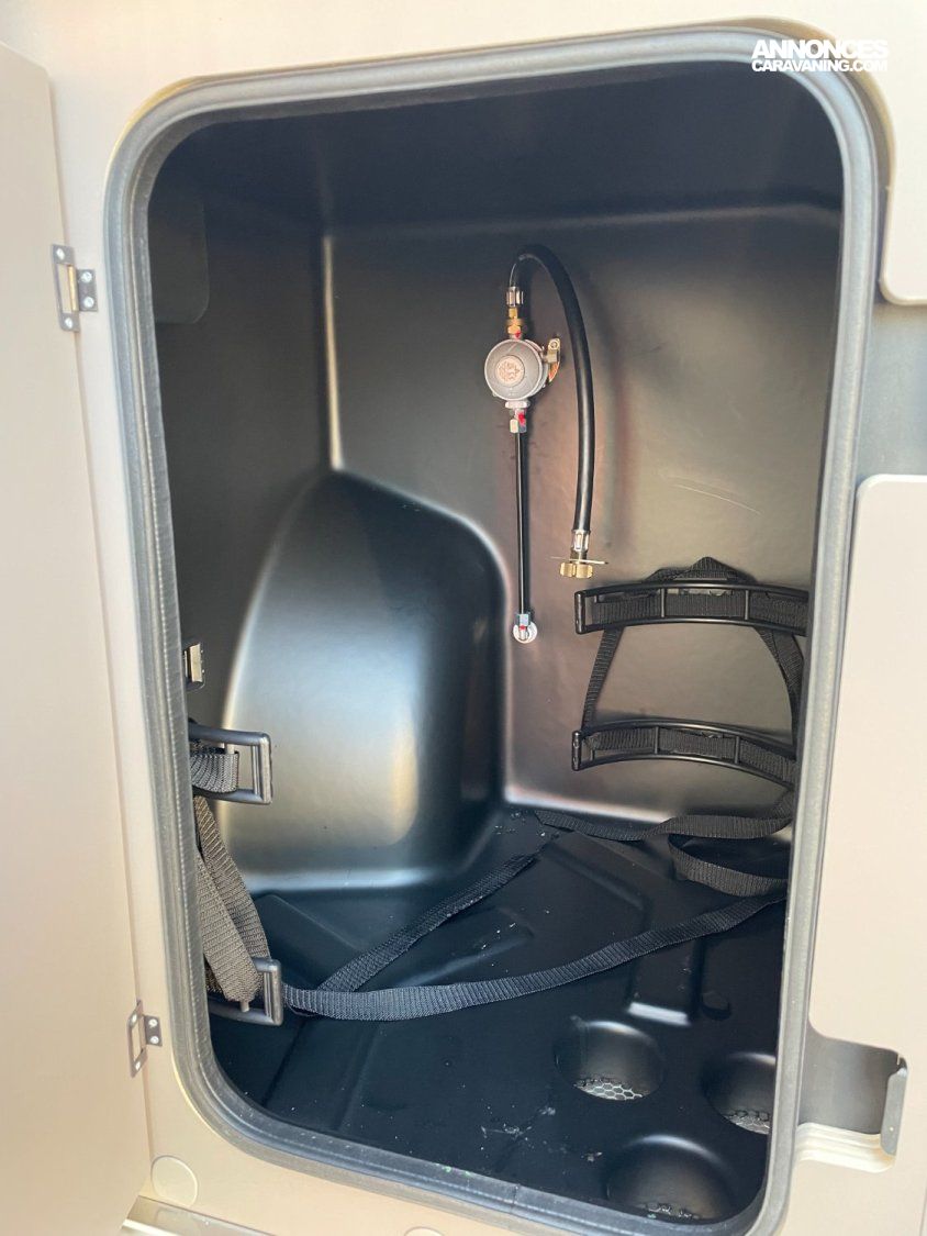 * Compartiment de rangement dans le plancher/Penderie spacieuse (sauf 540)/Grands rangements dans les portes arrière/Lit(s) arrière avec sommier à lattes relevable/Arrêt de charge avec marche intégrée pour lit double arrière (selon l'implantation)
