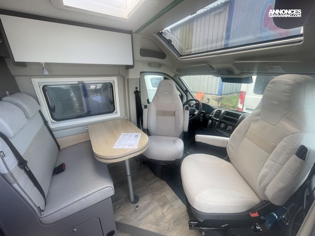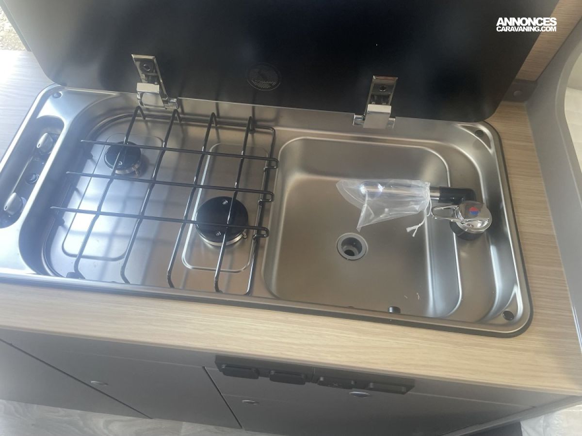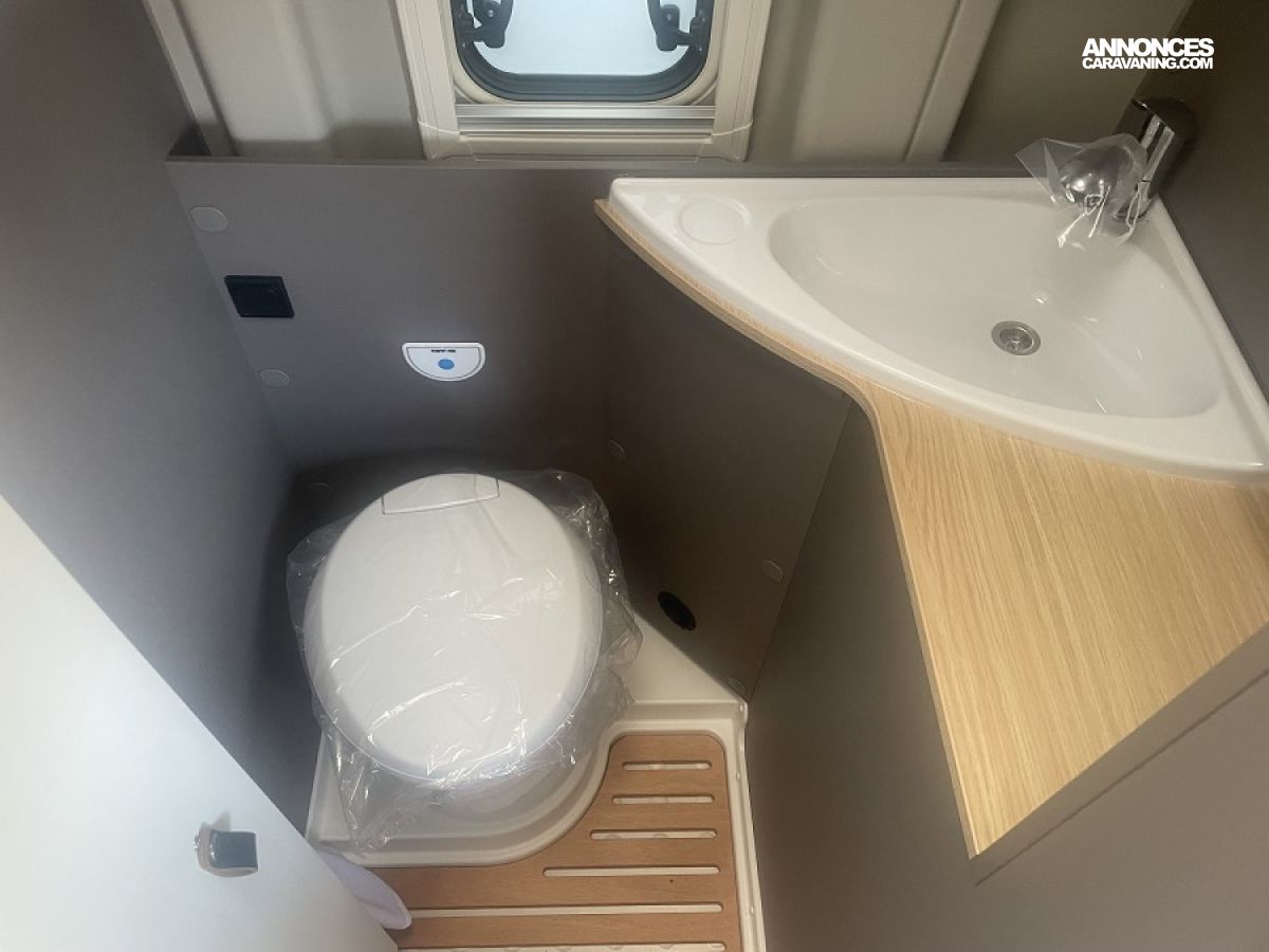 Marche d’accès extra-largeStore extérieur coloris anthraciteCaméra de recul intégrée dans le troisième feu stopCaillebotis de douche en boisLanterneau avec verre translucide 700 x 500 mm avec store occultant et moustiquaire dans le séjourÉquipement doucheStores plissés de cabinePorte moustiquaireRallonge de table dînettePrédisposition TVDînette transformableSéchoir à linge pliable dans cabinet de toilette ou doucheRéservoir eaux usées isolé et chauffé électriquement (manuel)Baie projetante dans la salle d’eau avec store occultant et moustiquaire