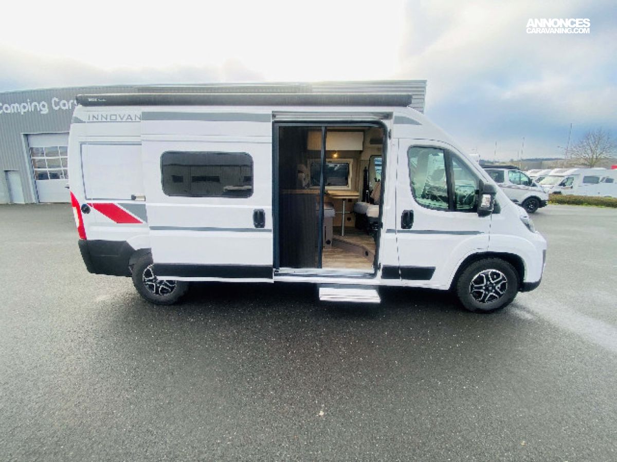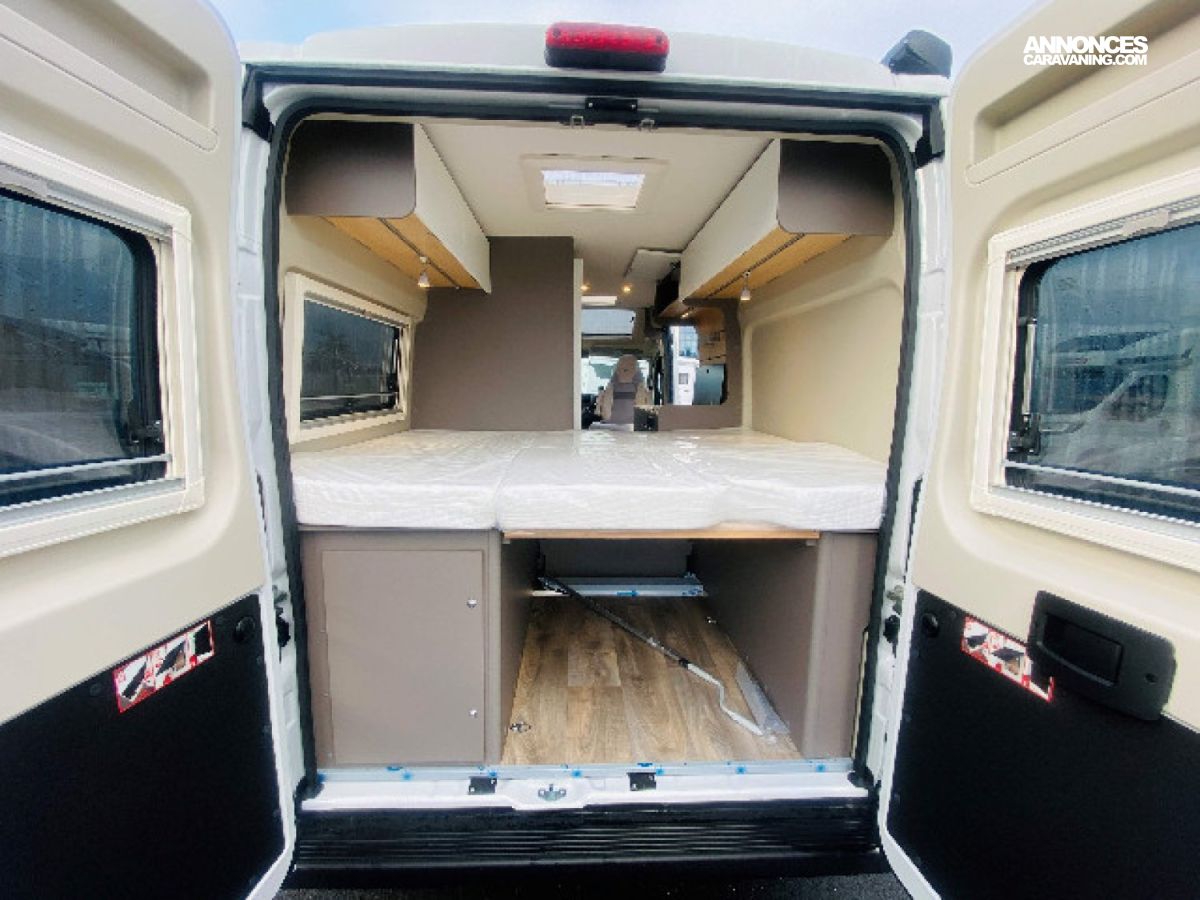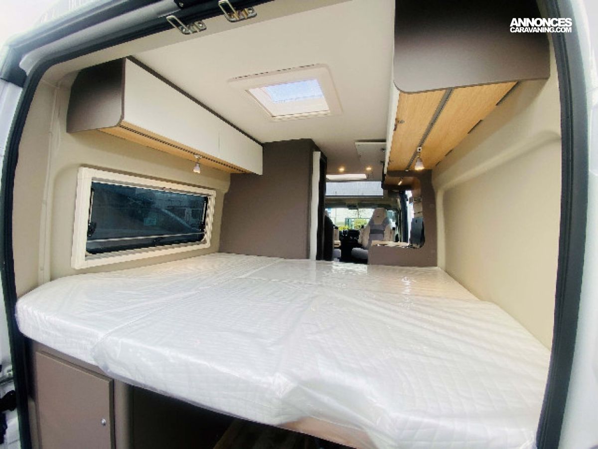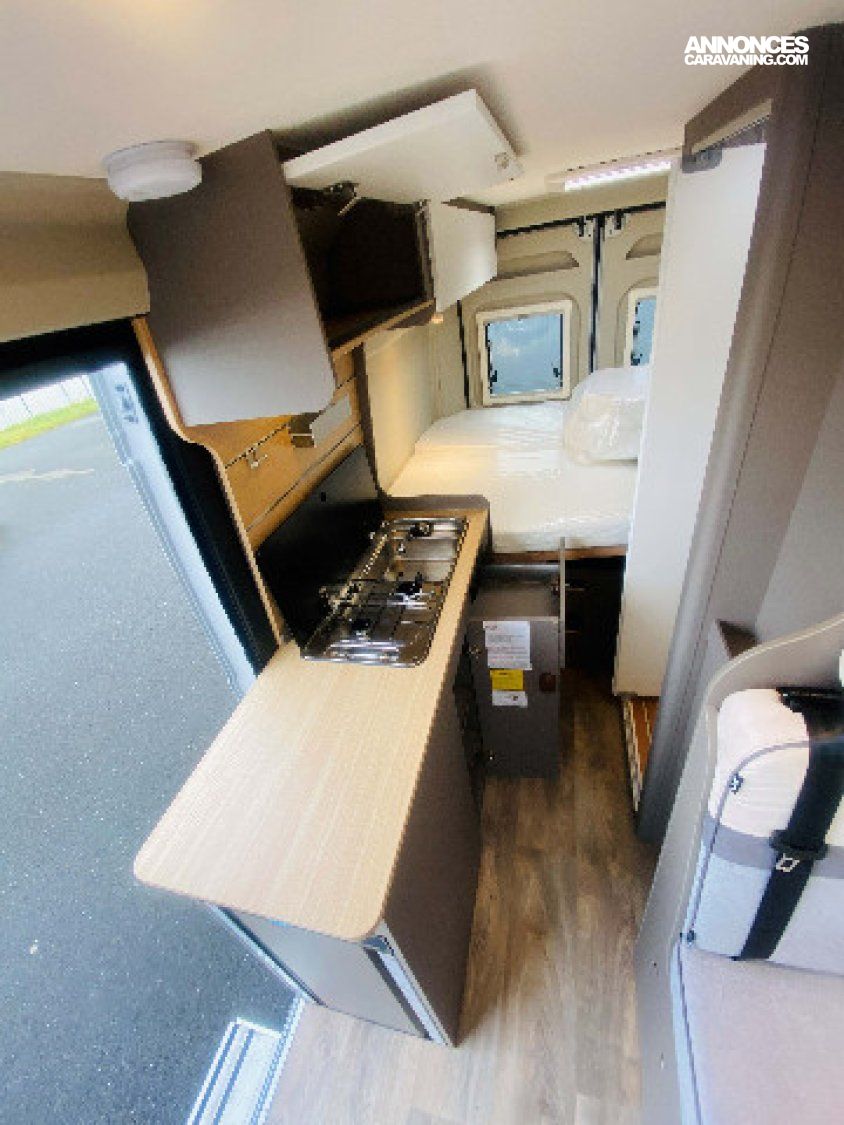 Baie projetante dans la salle d'eau avec store occultant et, Caillebotis de douche en bois, Dînette transformable en couchage, Lanterneau avec verre translucide 700 x 500 mm avec store oc, Marche d'accès extra-large, Porte moustiquaire, Rallonge de table dînette (plateau pivotant), Réservoir eaux usées isolé et chauffé électriquement, Store extérieur coloris anthracite, Stores plissés de cabine