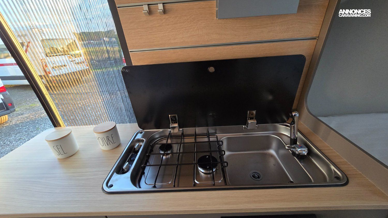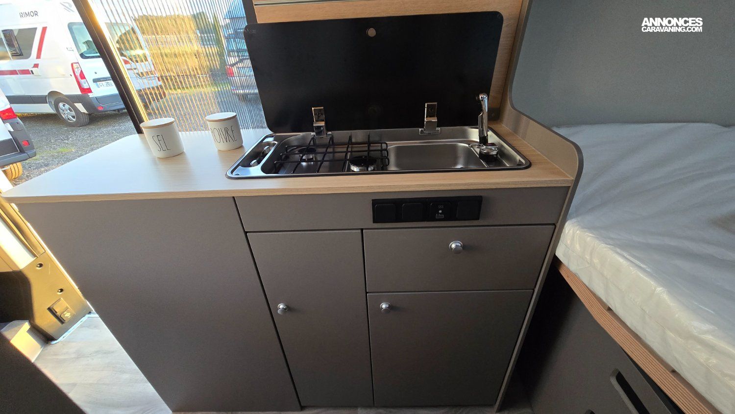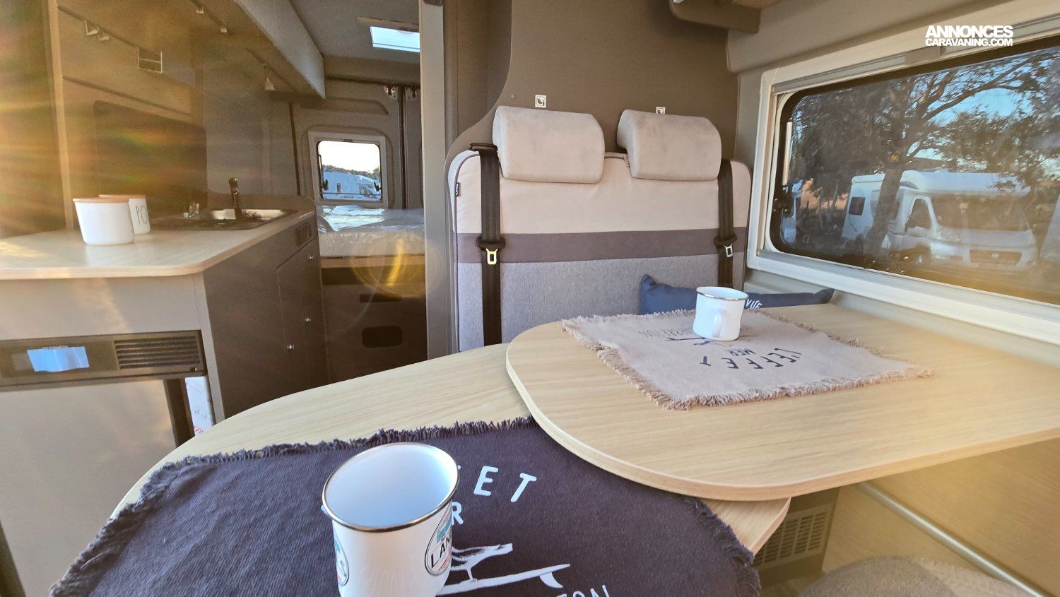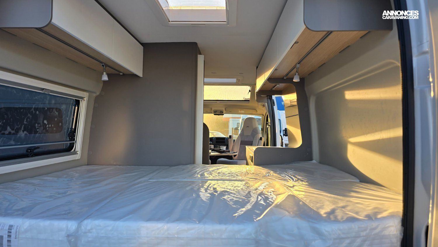 Ce fourgon aménagé de 5.99 mètres greffé au fiat ducato 140 ch et son lit transversal arrière offre tout ce que l'on peut attendre d'un fourgon : compact, finition soignée, un agencement bien pensé.