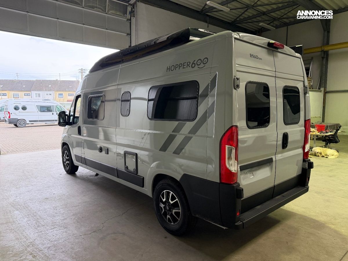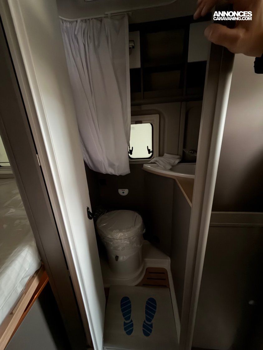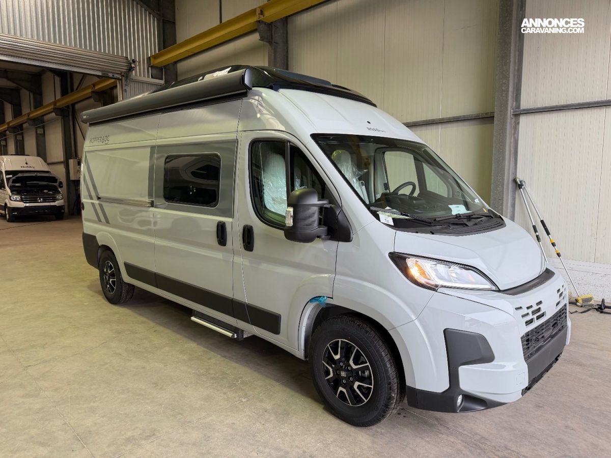 Pack Hopper (réservoir d'eaux usées isolé et chauffé manuellement/électriquement, fenêtre d'aération de salle de bain (verre dépoli), marchepied électrique large, toit ouvrant en verre clair 700 x 500 mm avec store occultant et moustiquaire au-dessus des sièges, rallonge de table pivotante, équipement de douche, receveur de douche en bois, stores occultants de cabine (stores plissés), porte moustiquaire, étendoir à linge pliable dans la salle de bain/douche, auvent anthracite, caméra de recul)