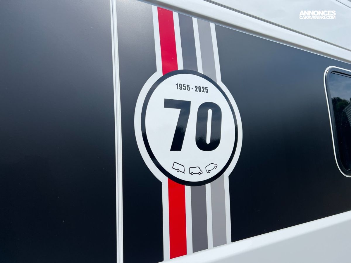 Alliant modernité, qualité allemande et design exclusif pour les 70 ans de la marque. Compact et agile, ce fourgon est idéal pour voyager librement sans renoncer au confort. Il dispose d’un équipement premium : climatisation cabine, chauffage, cuisine équipée, couchage spacieux, finitions haut de gamme. Véhicule prêt à prendre la route, garanti constructeur. Une édition spéciale pour vivre la route avec style et fiabilité.