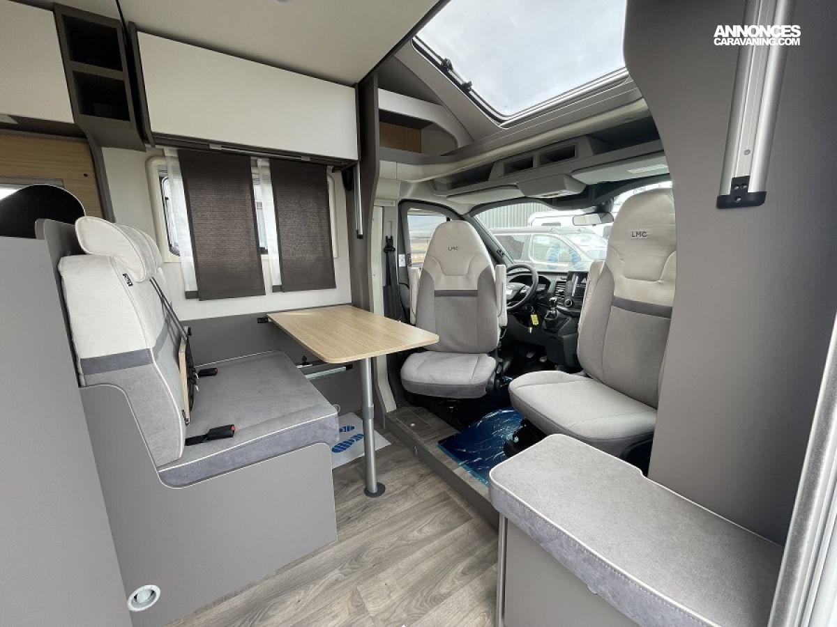 Tourer First Edition FordStores plissés de cabineRéservoir eaux usées isolé et chaufféBandes LED dans espace couchagePorte moustiquairePrédisposition emplacement TV (2x 12 V, 1x 230 V, 1x Cinch RCA AV)Batterie supplémentaire 95 Ah AGMCP Plus, panneau de commande pour le chauffageBaie(s) à cadre affleurant avec stores multifonctionsStore extérieur noir mat 4,0 x 2,50 mAssistant de feux avec capteur jour/nuitAssistance au freinage d’urgence, active (basée sur la caméra)Système d’aide au maintien de la trajectoire avec assistant de maintien de voie et assistant de changement de voieSystème d’alerte de changement de voie avec détecteur de fatigue et feux de route automatiquesEssuie-glaces avec capteur de pluieÉclairage indirect au-dessus et en-dessous des meubles de pavillonÉclairage indirect dans crédence cuisineSkyroof dans la casquettePrédisposition panneaux solairesPrédisposition antenne satellite, climatisation, panneaux solaires avec renforcement du toitIsofix (fixation siège enfant)Pare-brise chauffantÉcran multifonctions 9″ (Zenec)Jantes alliage 16″Lanterneau Midi-Heki 700 x 500 mm au-dessus de la dînette