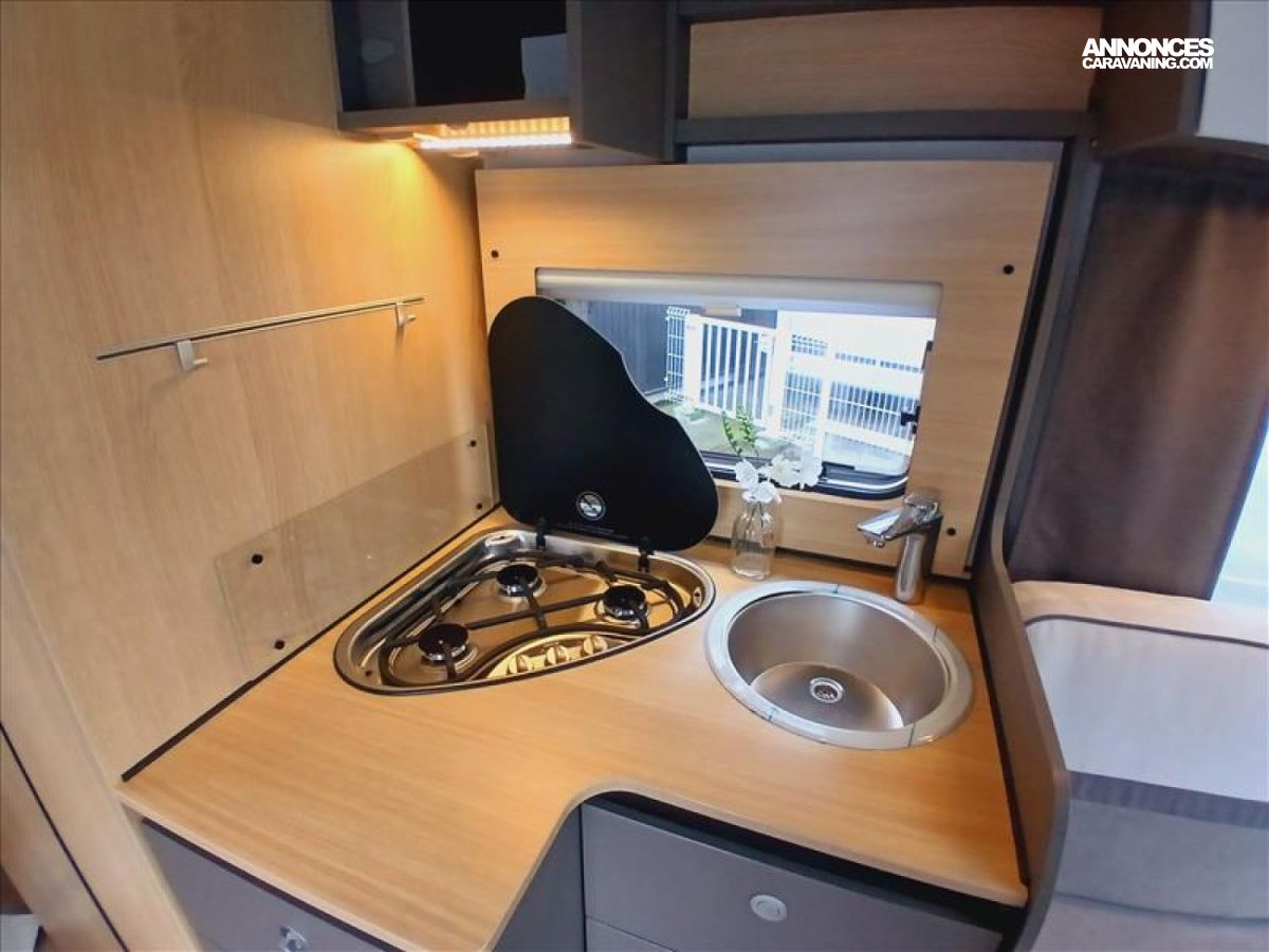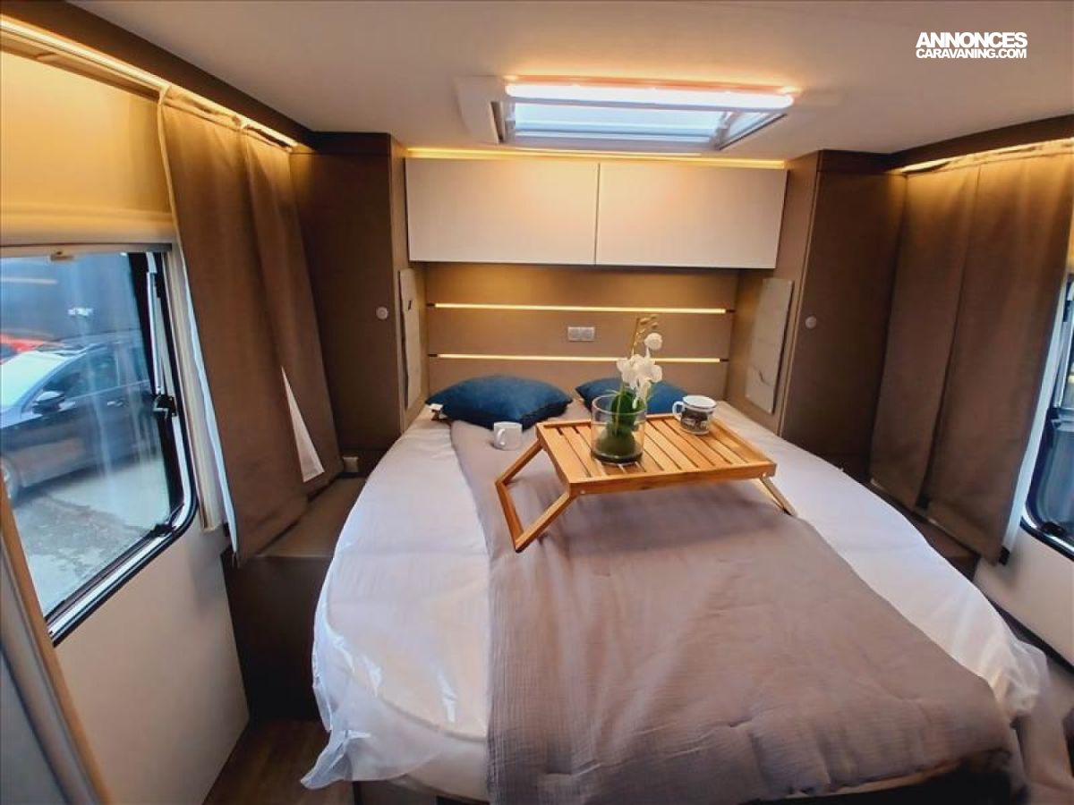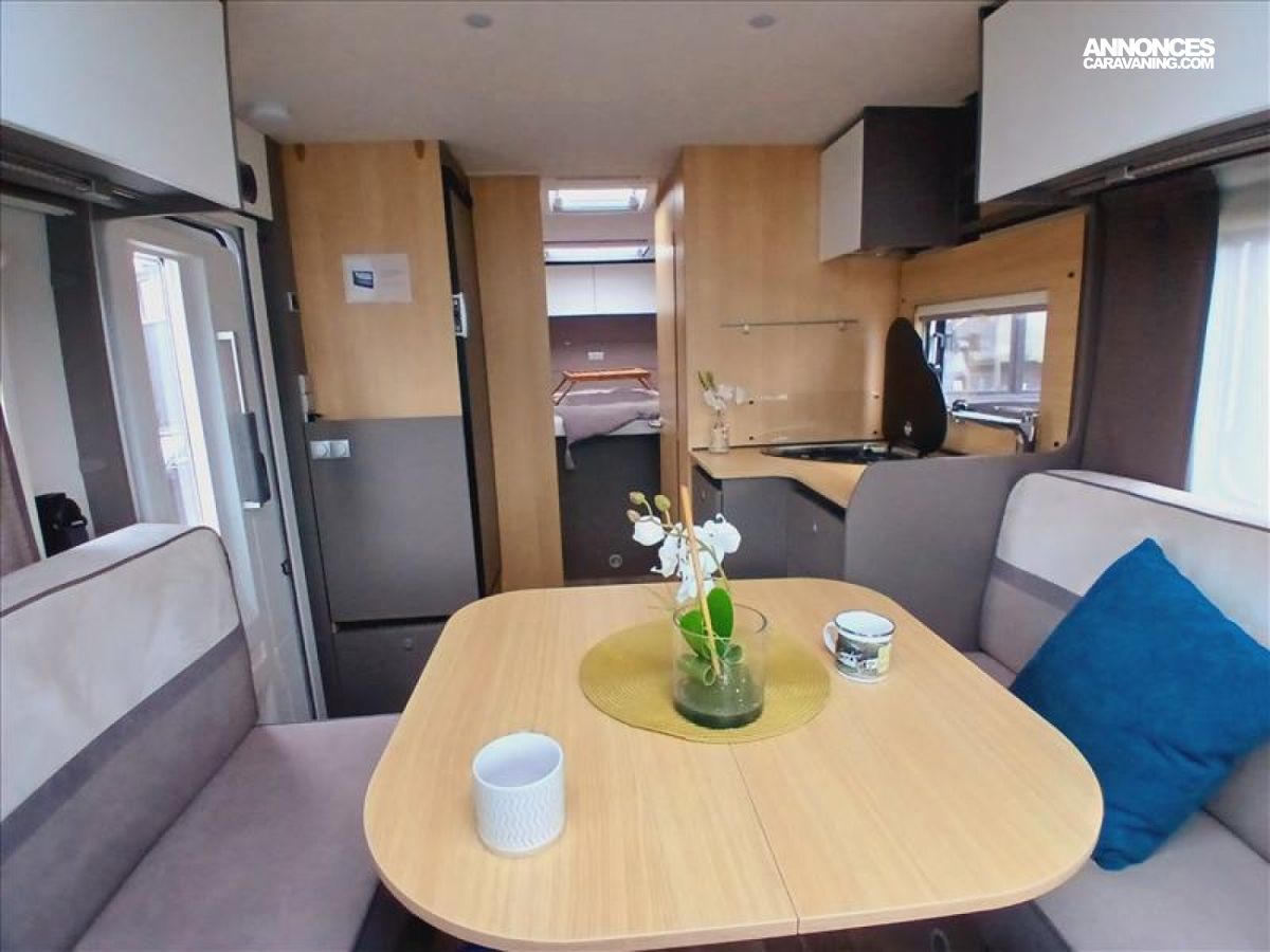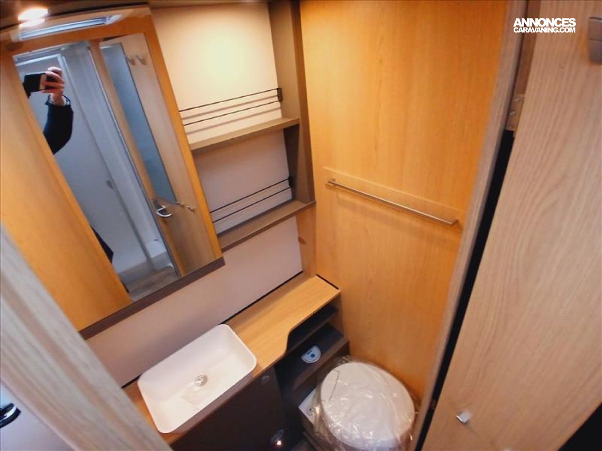 ASR + ESP incl. l'aide au démarrage en côte, Baie panoramique (lit central), Chauffage à air pulsé Combi 6 avec panneau de commande CP, Eclairage au-dessus de la porte cellule, Éclairage dans la penderie, Éclairage intérieur LED, Fermeture centralisée, Lanterneau dans la cuisine et dans l'espace couchage, Lanterneau dans le cabinet de toilette, Marche d'accès intégrée, Ordinateur de bord, Panneau de commande multifonction, Pompe à eau double immergée, Porte cellule 70 cm avec baie intégrée, Porte-gobelets, Prédisposition radio avec haut-parleurs et antenne DAB, Prise électrique 230 V avec commutateur RCD et chargeur, Régulateur de vitesse, Sièges cabine pivotants, Spots de lecture, VEHICULE NEUF D EXPOSITION, Volant réglable en hauteur