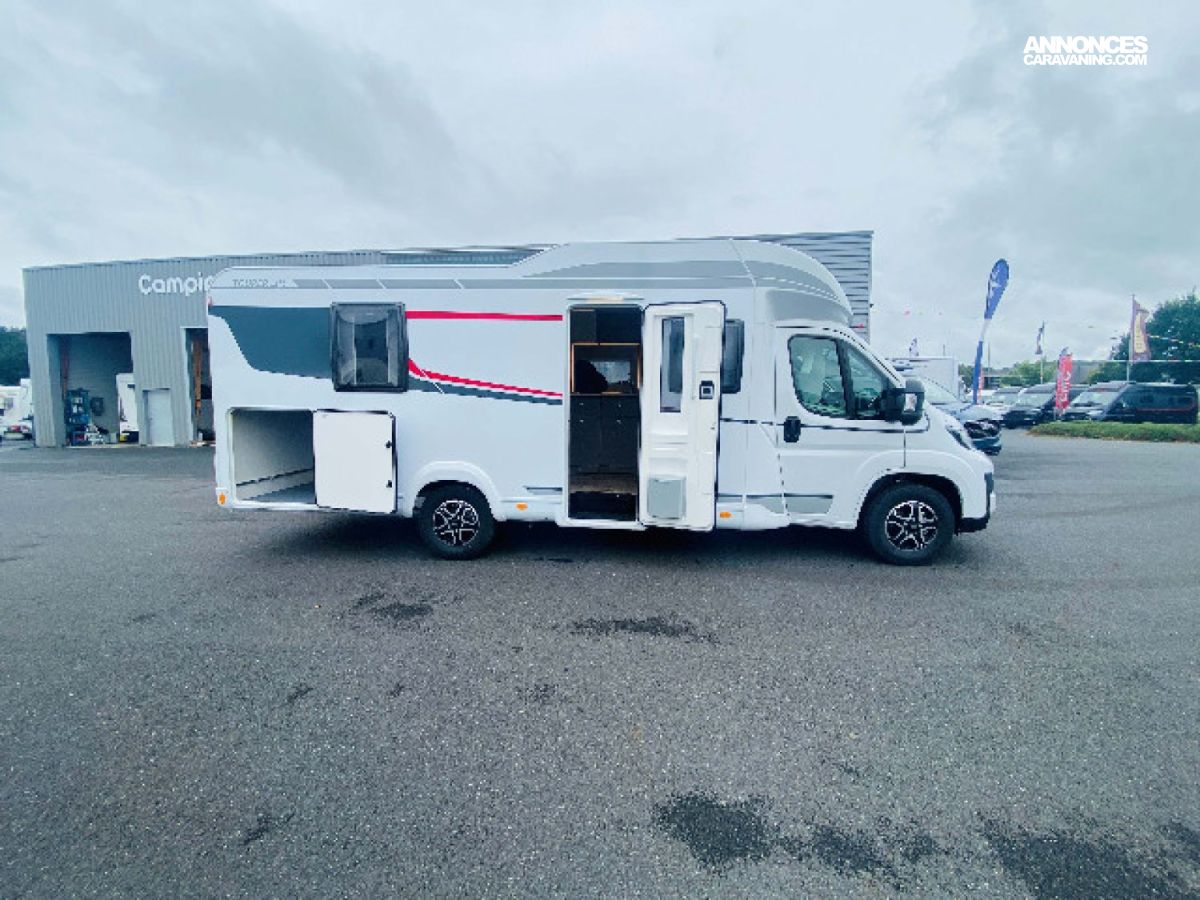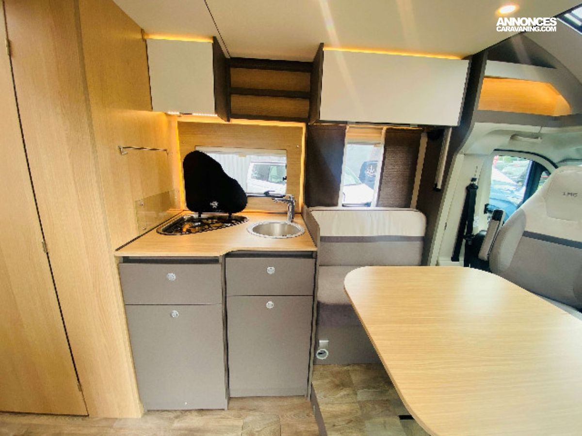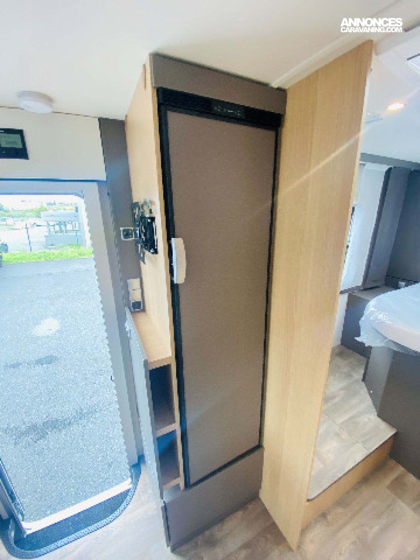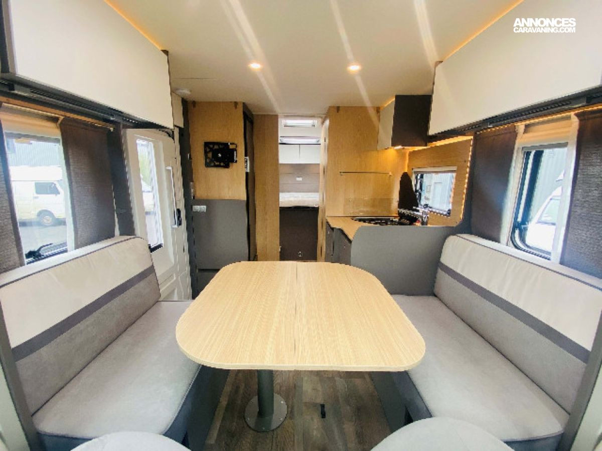 4 couchages : Lit pavillon intégré au plafond et lit central, Éclairage indirect au niveau du plancher, de la crédence cui, Finition anti-traces grâce au système "Anti-Finger-Print"., Porte cellule confort de 70 cm avec marche d’accès pour une