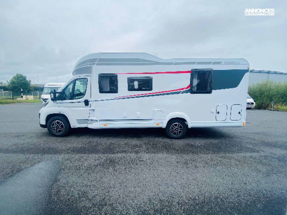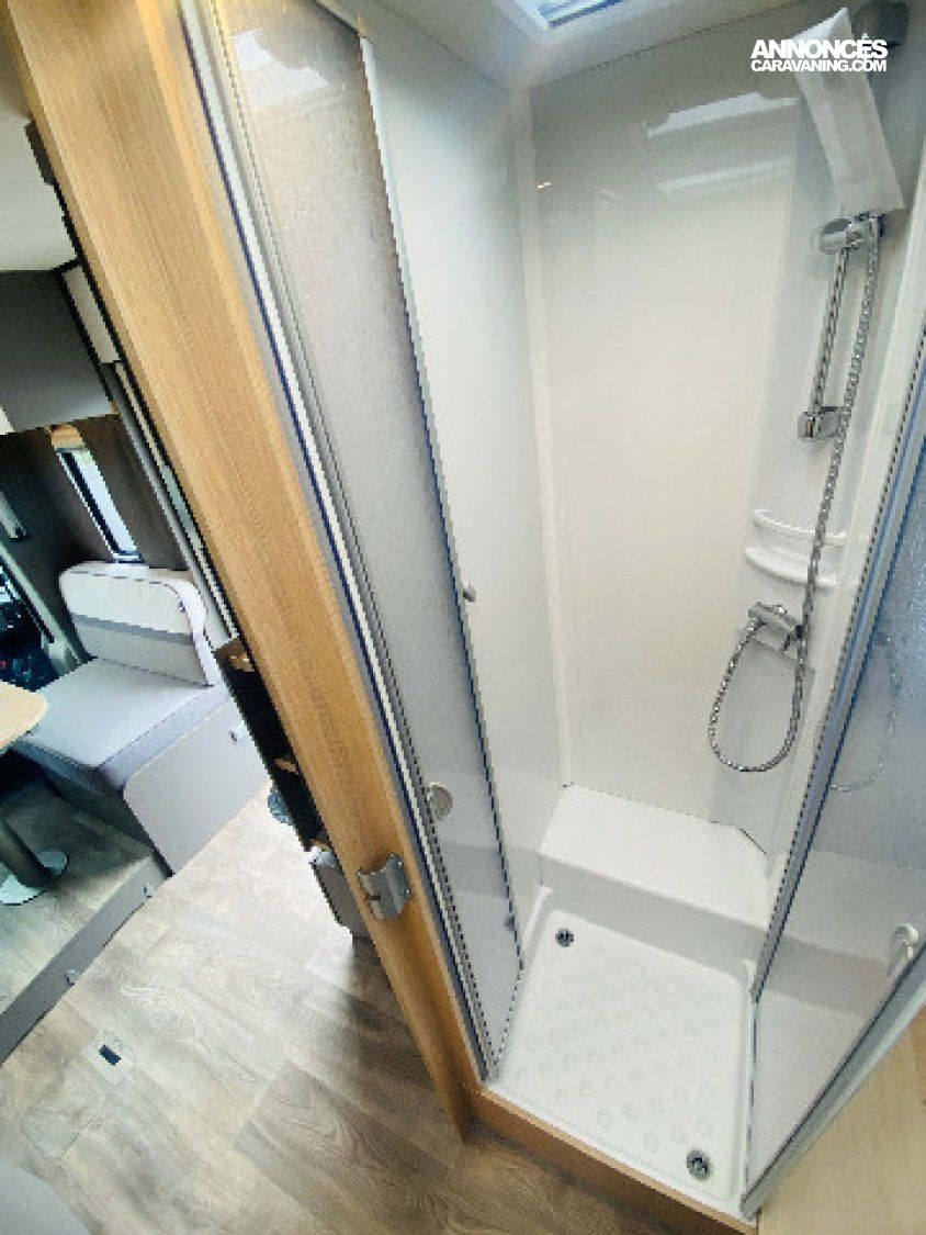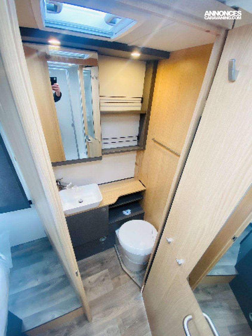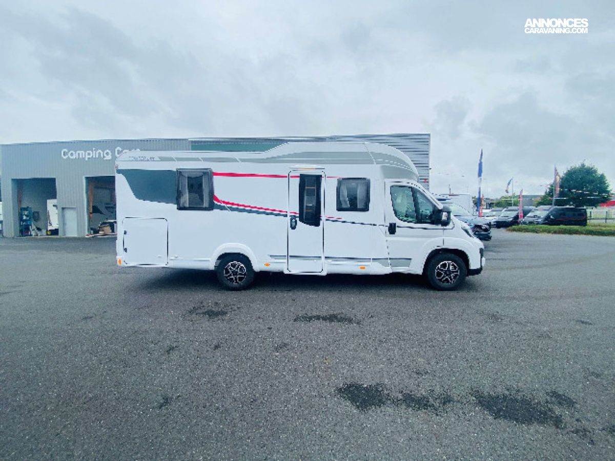 4 couchages : Lit pavillon intégré au plafond et lit central, Éclairage indirect au niveau du plancher, de la crédence cui, Finition anti-traces grâce au système "Anti-Finger-Print"., Porte cellule confort de 70 cm avec marche d’accès pour une