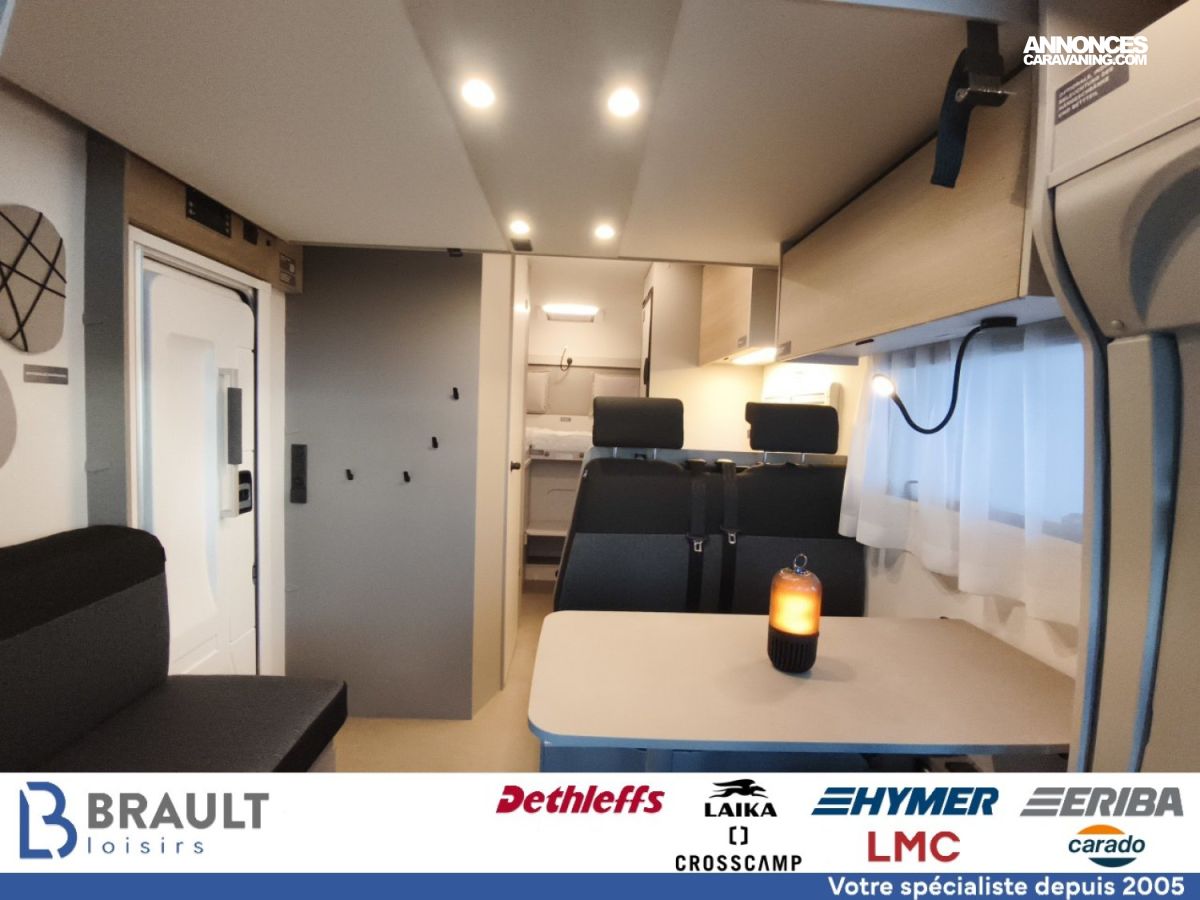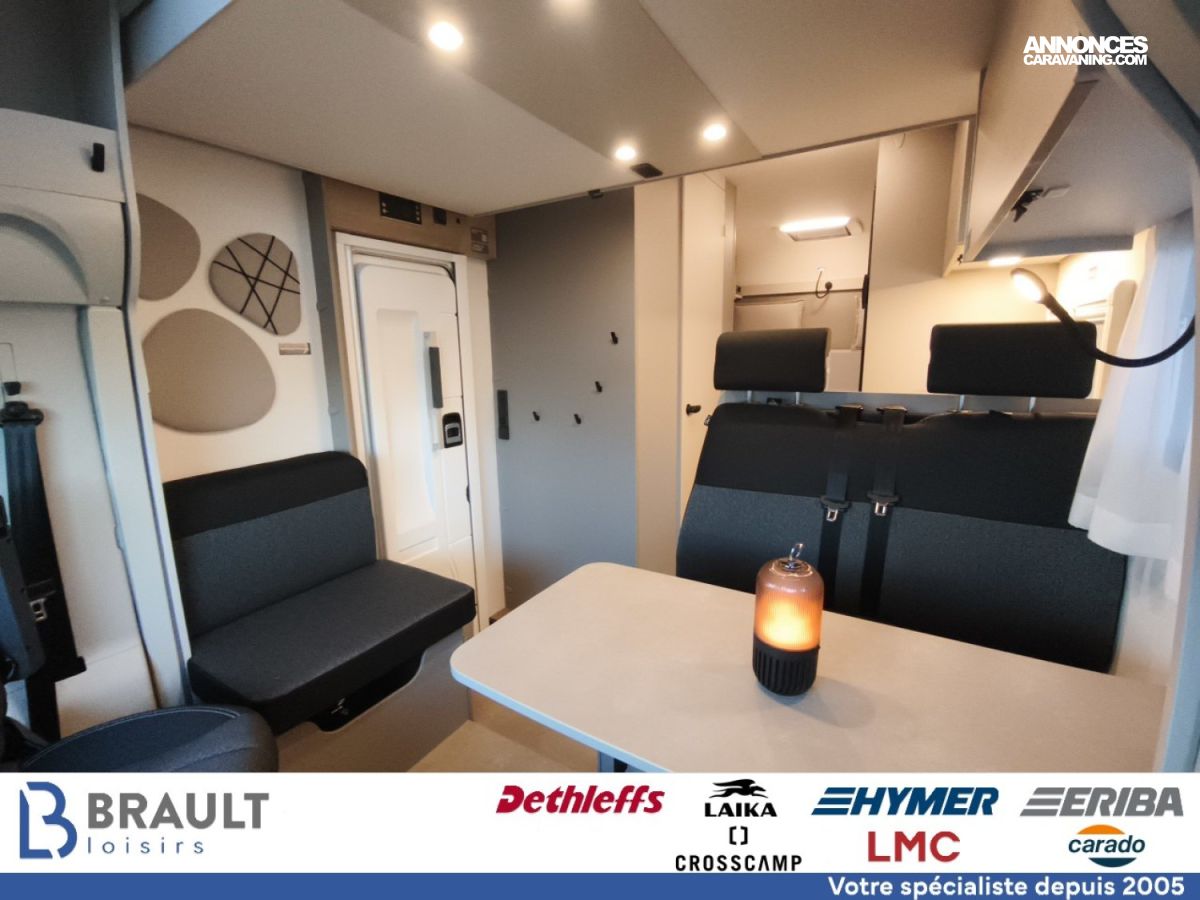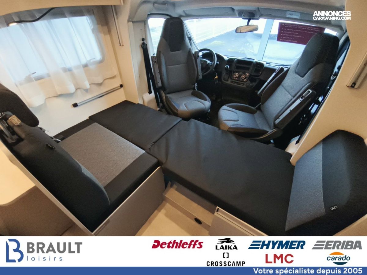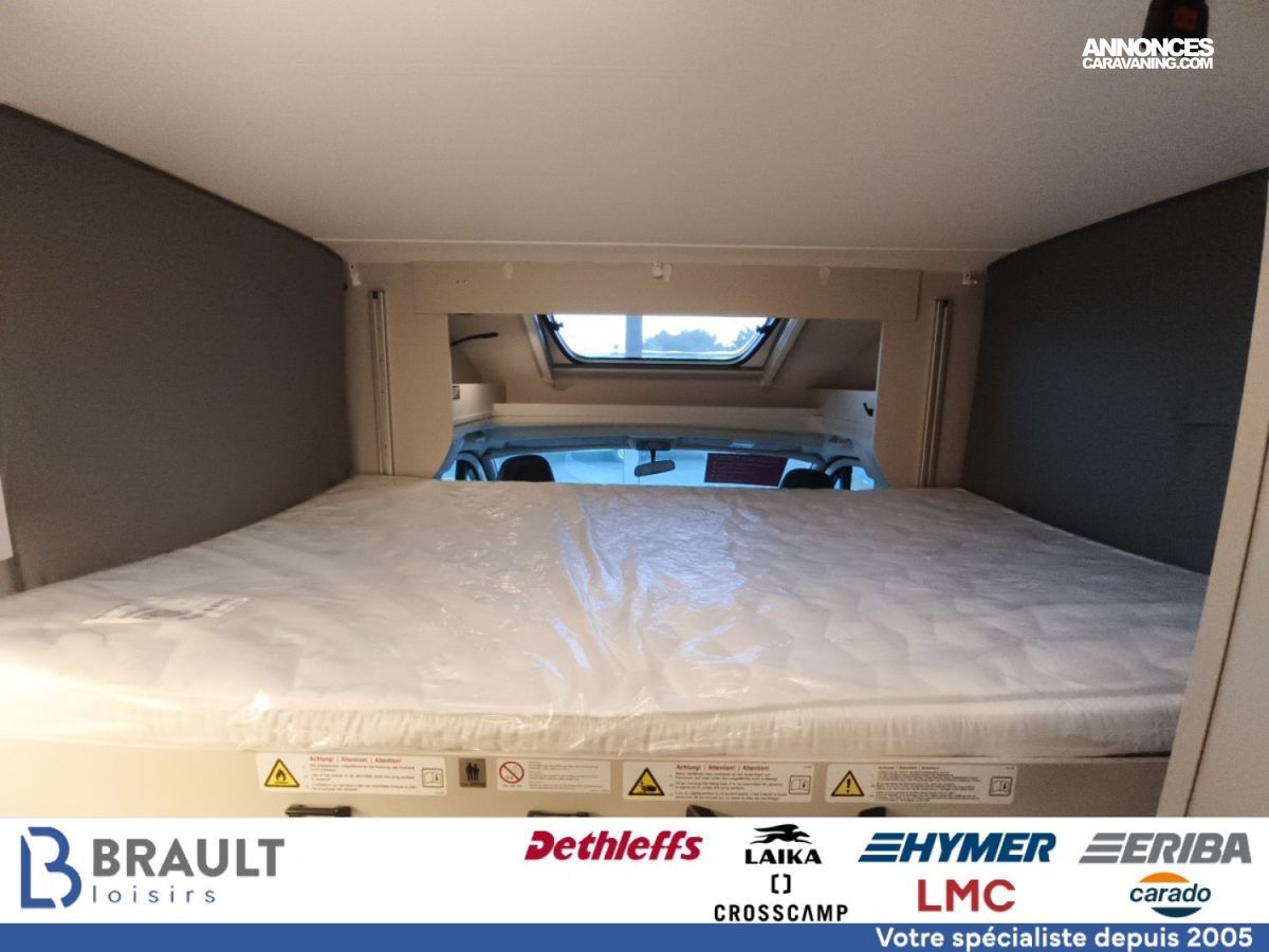Porte moustiquaire, Toit panoramique de cabine avec store occultant et moustiquaire, Système ISOFIX pour 2 sièges, Store extérieur coloris noir mat avec bande LED Stores plissés de cabine, Tableau d'affichage avec élastiques, 2 coussins Relax 600 x 400 pour le lit