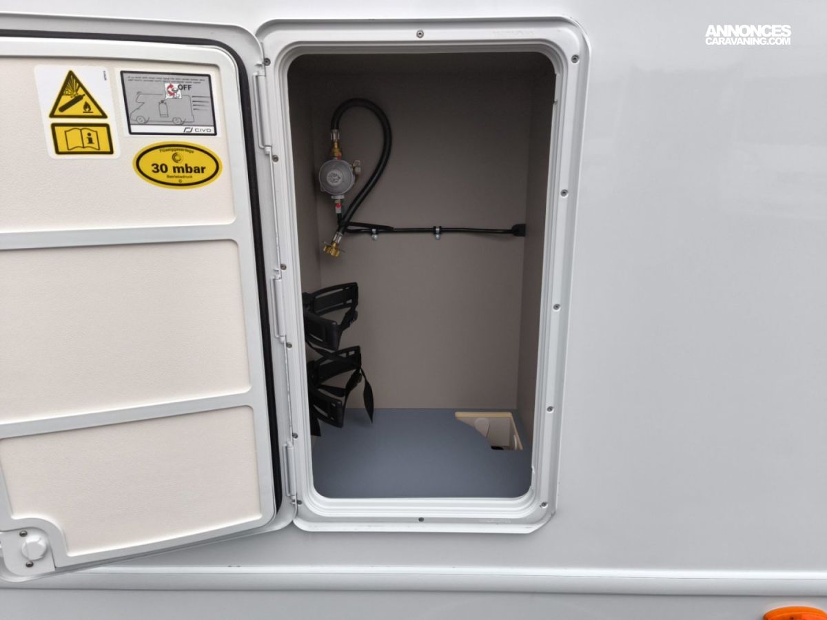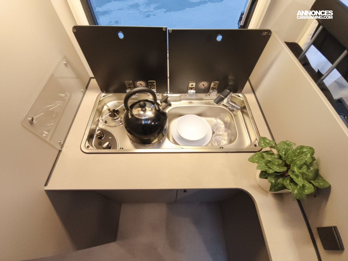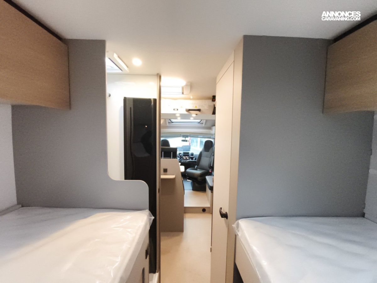 Porte moustiquaire, Toit panoramique de cabine avec store occultant et moustiquaire, Système ISOFIX pour 2 sièges, Store extérieur coloris noir mat avec bande LED, Stores plissés de cabine, Tableau d'affichage avec 2 élastiques, 2 coussins Relax