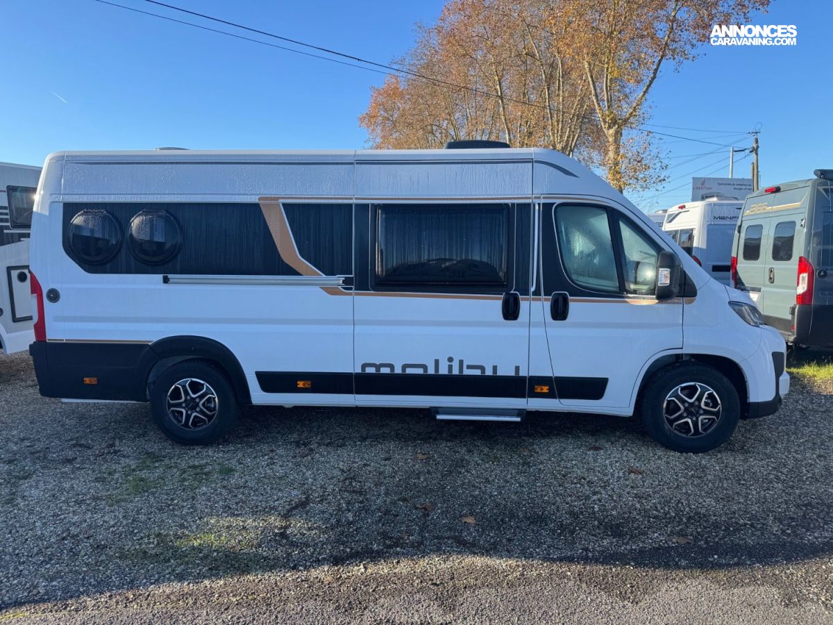 SET DE CAMPING MALIBU AVEC 2 CHAISES + 1 TABLE PLIABLES, SET DE DRAPS HOUSSES, MATELAS EN MOUSSE FROIDE LIT ARRIERE, STATION DE RECHARGE POUR SMARTPHONE CABINE, BOITE AUTO 8 RAPPORTS, PACK PRISES COMPRENANT 3 PRISES USB + 2 PRISES 230 V, PARECHOCS COULEUR CARROSSERIE, RESERVOIR DES EAUX USEES ISOLE, PANNEAU DE COMMANDE NUMERIQUE TRUMA CP PLUS, SET DECO CHAMBRE MALIBU COUSSINS + COUVERTURE LOGO MALIBU +, STORES REMIS CABINE, VOLAN + POMMEAU DE VITESSE EN CUIR, ECRAN MULTIFONCTIONS, FEUX ANTIBROUILLARDS AVANT, MOUSTIQUAIRE DE PORTE COULISSANTE, RESERVOIR DE CARBURANT 90 L, RETROVISEURS EXTERIEURS RABATTABLES ELECTRIQUEMENT, AIDE AU STATIONNEMENT ARRIERE, TRUMA COMBI 6 D+E + KIT ALTITUDE, RADIO PIONNEER 6.8" AVEC DAB+, FREIN DE STATIONNEMENT ELECTRIQUE, JANTES ALU 16 "