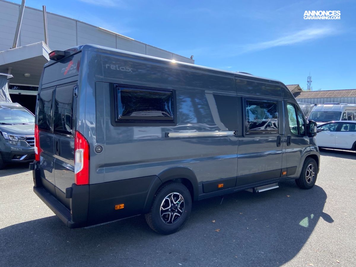 LA VERSION RELAX AMBITION COMPREND :, AIDE AU STATIONNEMENT AVEC CAPTEURS A L ARRIERE, RESERVOIR DE CARBURANT 90 L, AMPLIFICATEUR DE CHARGE, STORES D OCCULTATION PLISSES CABINE, MOUSTIQUAIRE DE PORTE COULISSANTE, RETROVISEURS EXTERIEURS REGLABLES ET RABATTABLES, ELECTRIQUEMENT, VOLANT MULTIFONCTION, GRILLES AERATION TABLEAU DE BORD CHROMES, JANTES ALU 16", PARE-CHOCS COULEUR CARROSSERIE, ANTIBROUILLARDS AVANT AVEC ECLAIRAGE ADAPTATIF, CLIMATISATION AUTOMATIQUE CABINE, ENTREE ET SORTIE SANS CLE, ASSISTANT FREINAGE ACTIF, MAINTIEN DANS LA VOIE, RECONNAISSANCE DES PANNEAUX DE SIGNALISATION, CAPTEUR PLUIE ET LUMIERE, PANNEAU DE COMMANDE CP PLUS, RESERVOIR EAUX USEES ISOLE, SYSTEME MULTIMEDIA FIAT AVEC NAVIGATION, GUIDAGE CAMPING-CAR, DAB + ET CAMERA DE RECUL, CARROSSERIE COULEUR GRIS FER METALISE, PACK PRISES : 3 USB + 2 PRISES 230 V