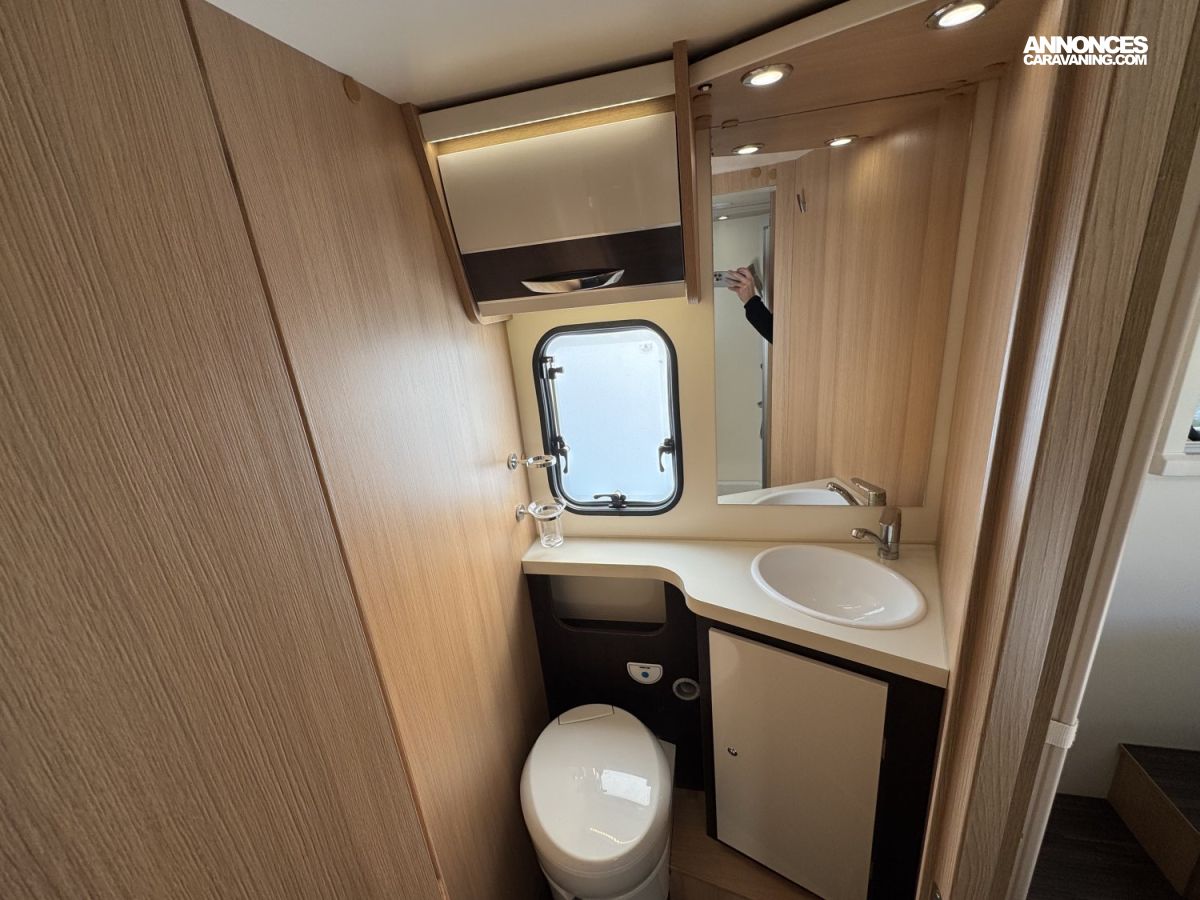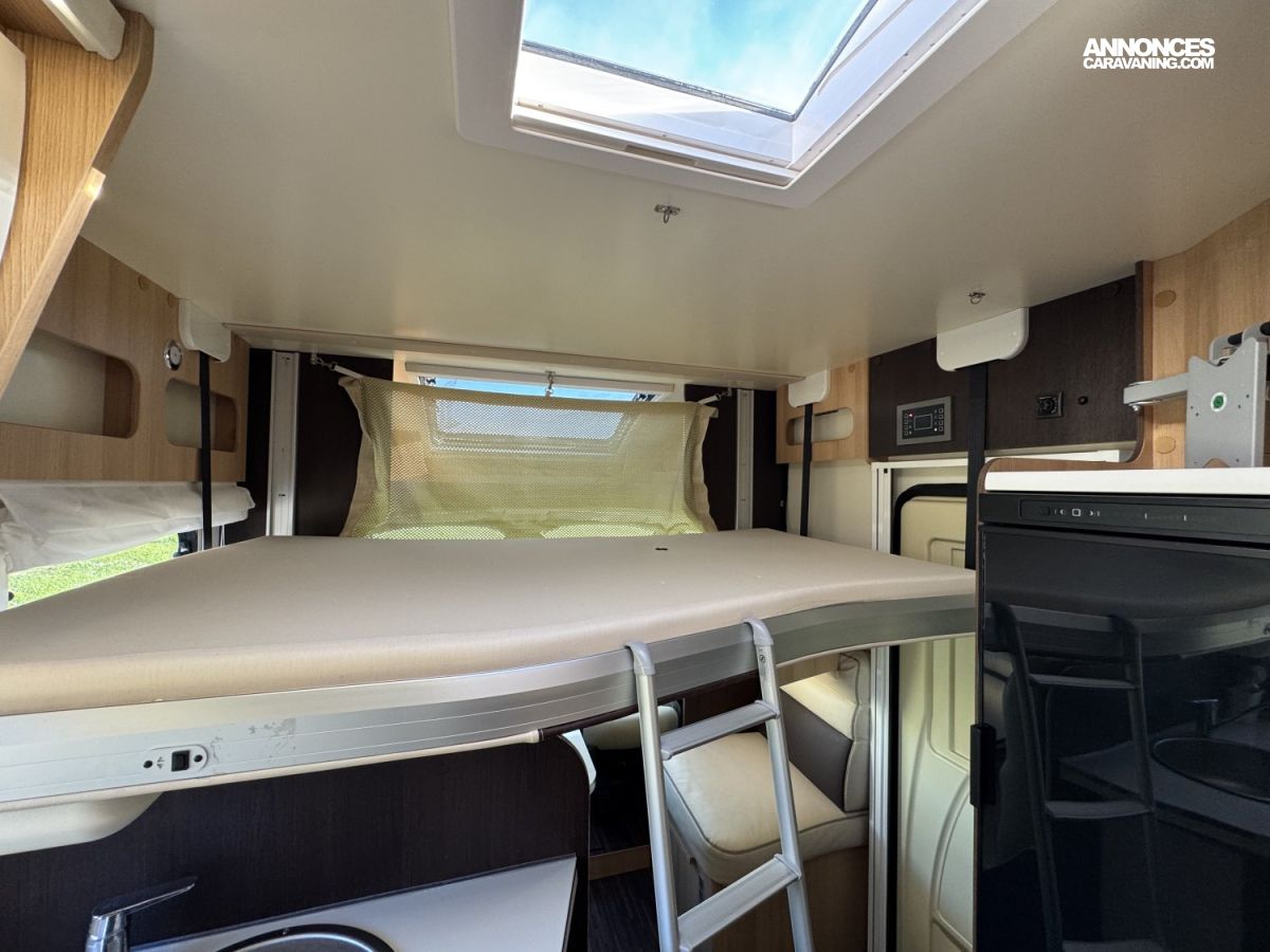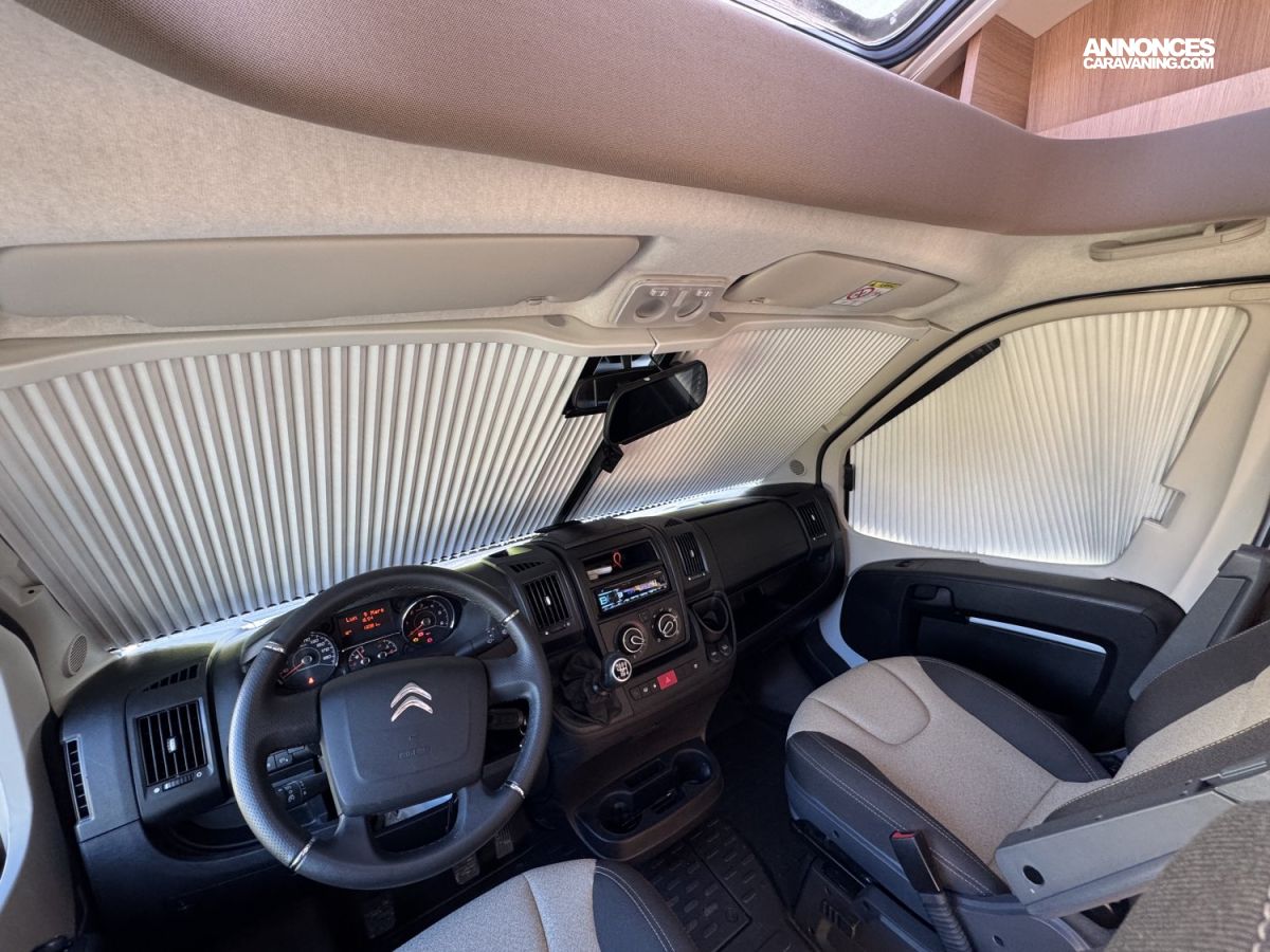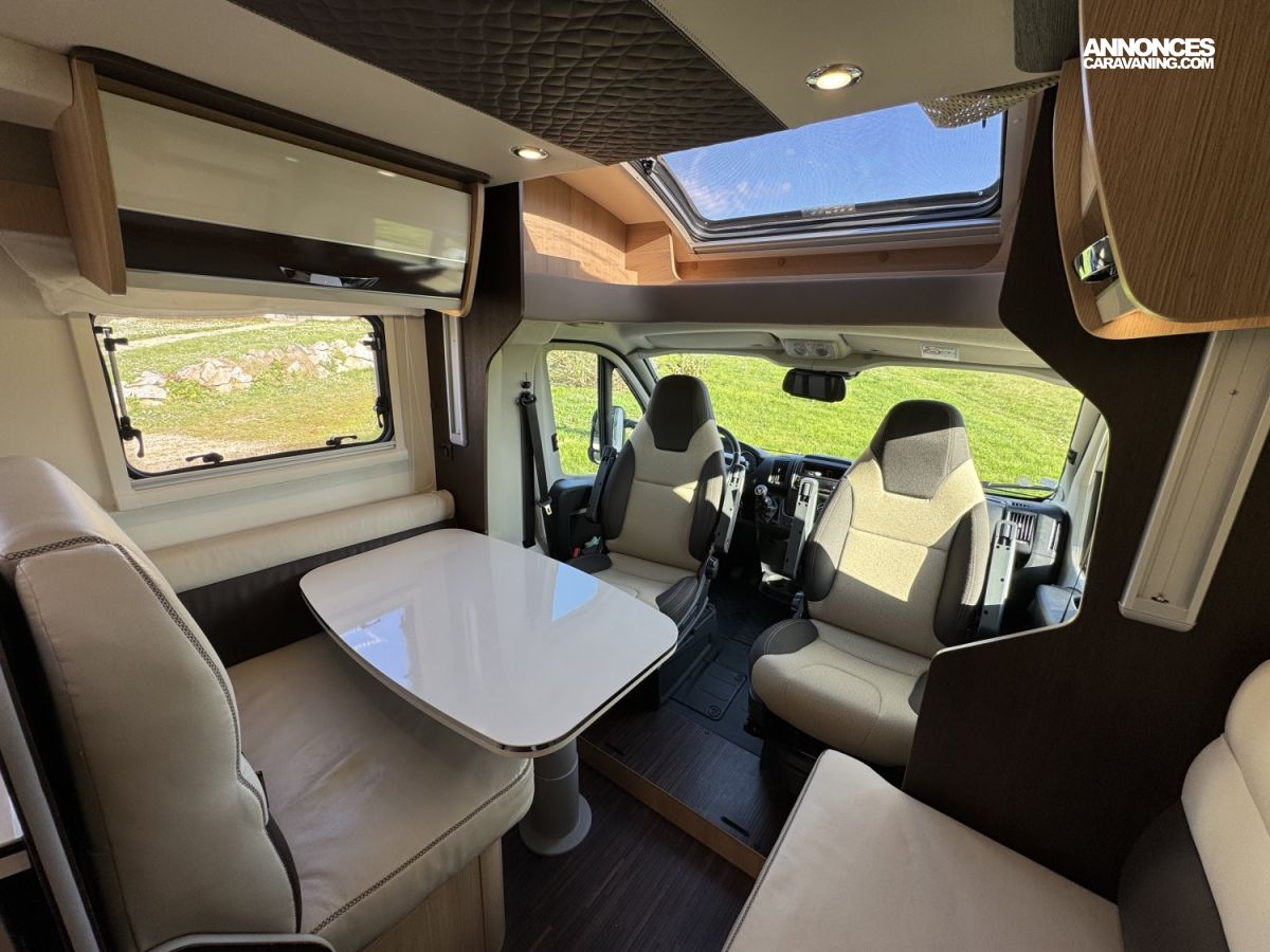CHAUFFAGE COMBI TRUMA 4, FRIGO 140L AVEC TIROIR 9BOUTEILLES, STORE EXTERIEUR 4.5M, CUISINE EN L, DOUCHE ET WC SEPARES, ECLAIRAGE LED, REFRIGERATEUR TRI MIX, STORES PLISSES DE CABINE, VOLET ISOTHERME INTERIEUR, DOUBLE CLOISON DE SEPARATION, LANTERNEAU PANORAMIQUE
