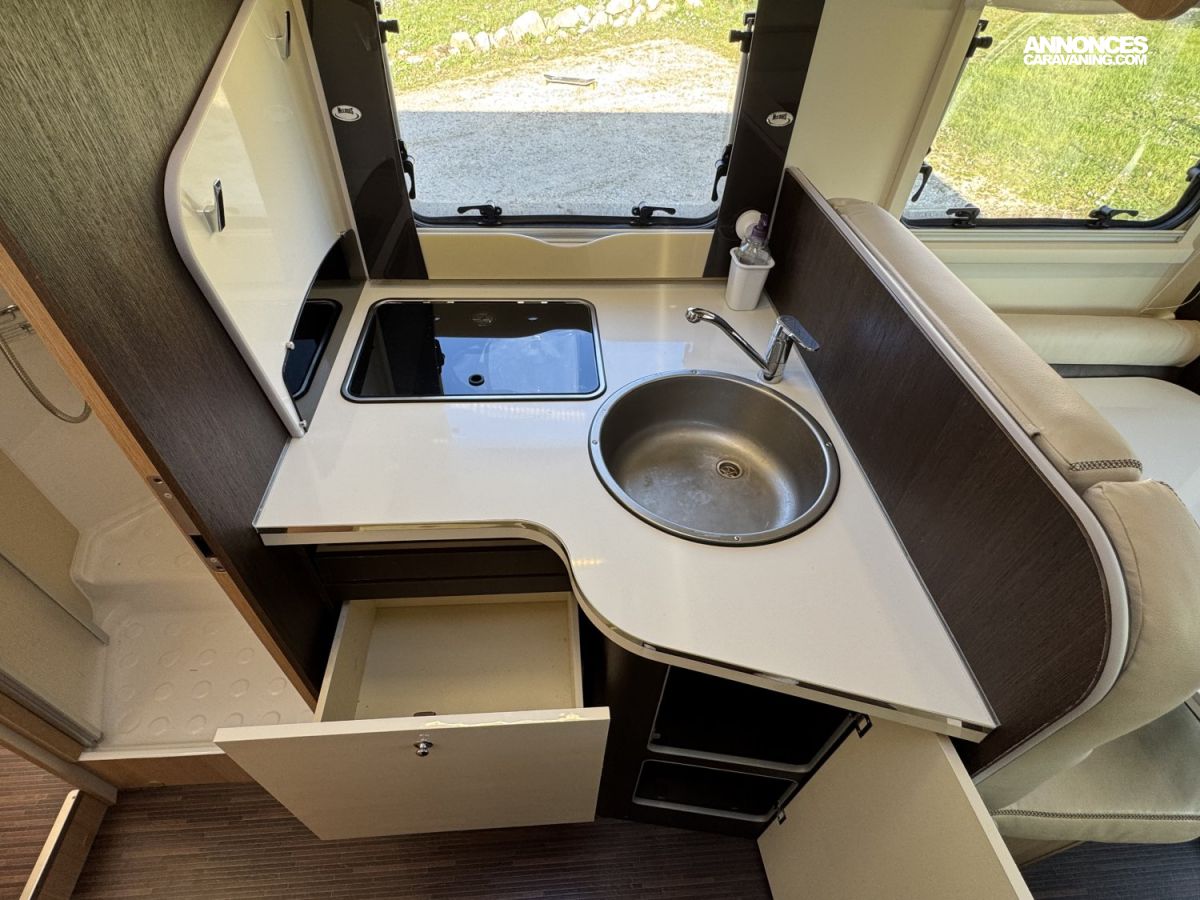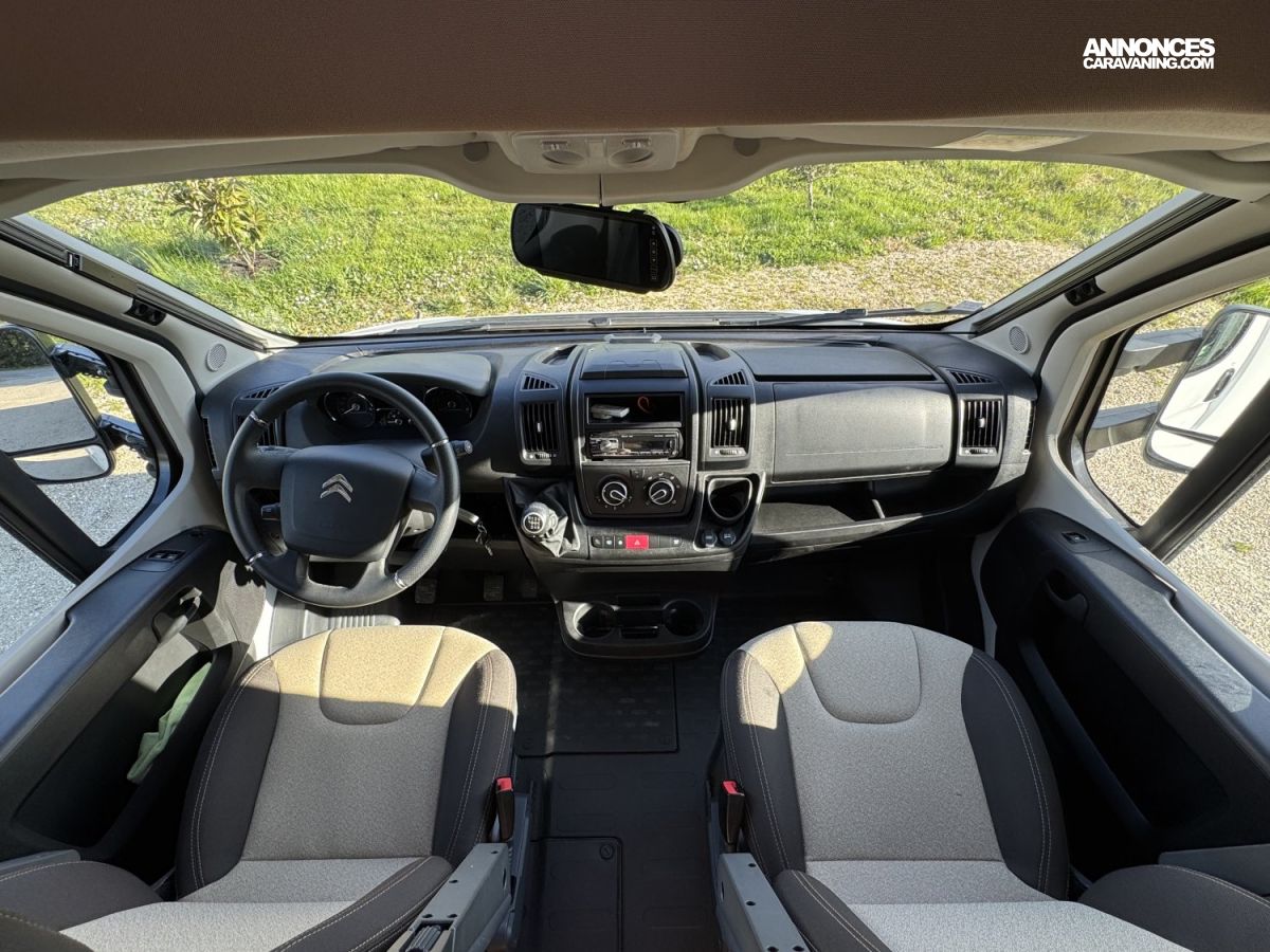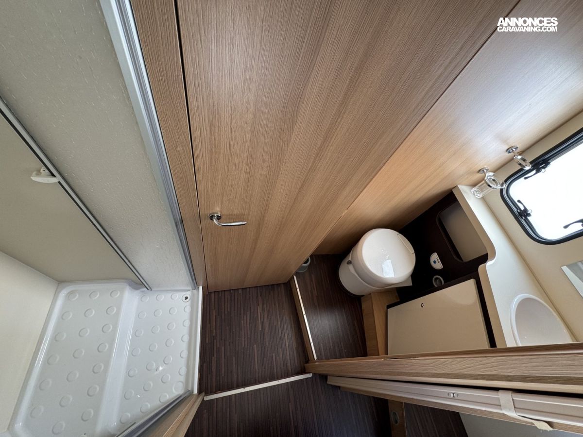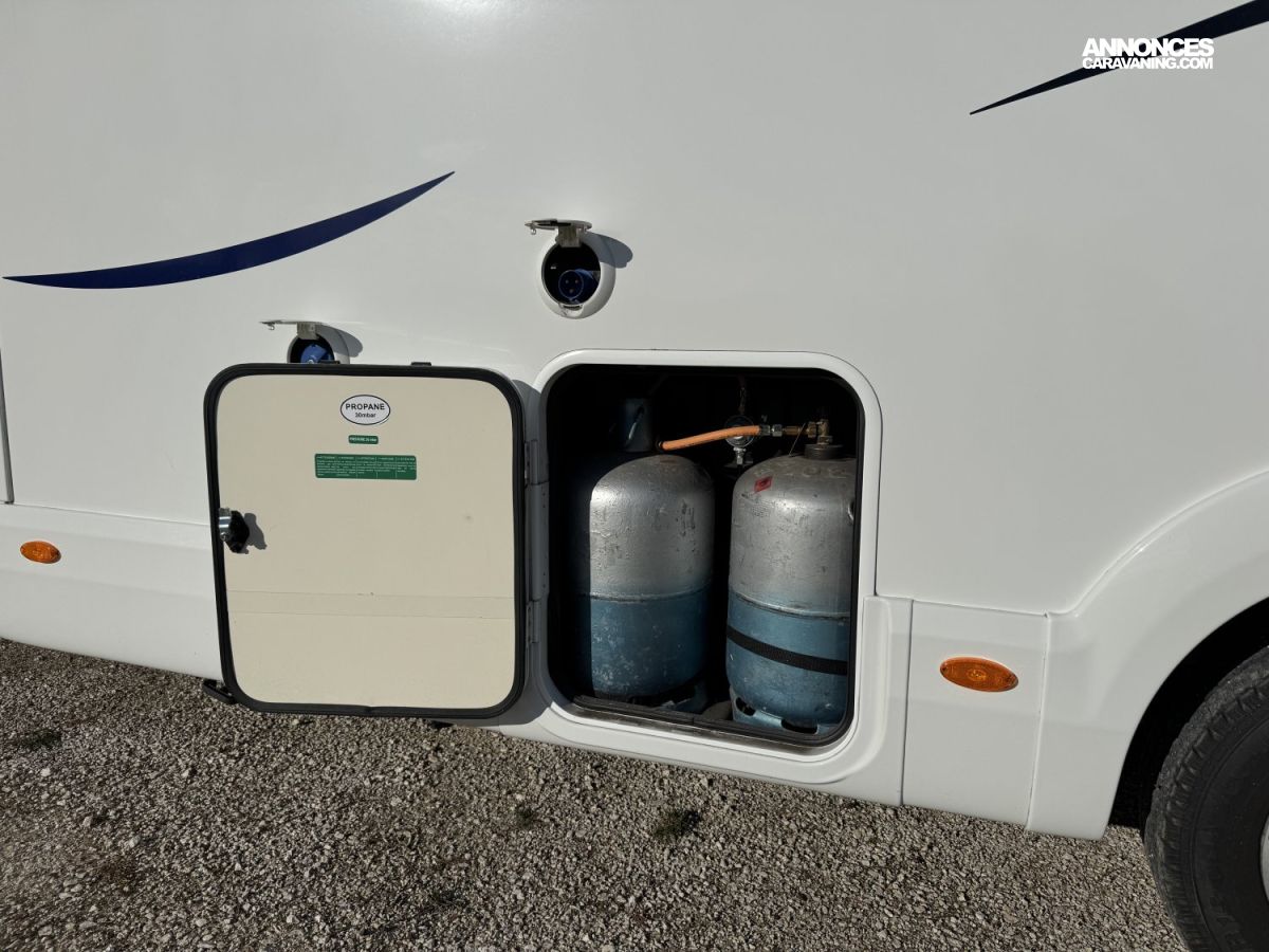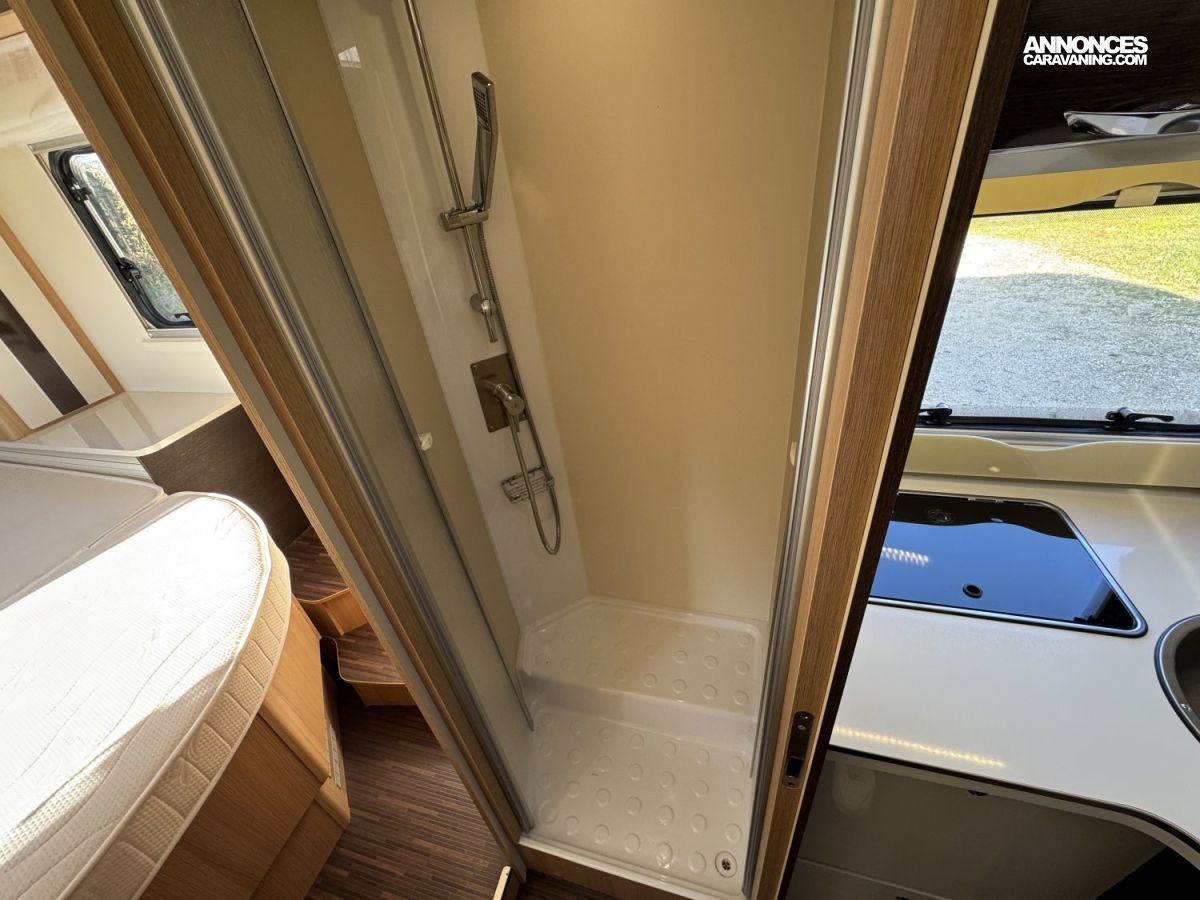 CHAUFFAGE COMBI TRUMA 4, FRIGO 140L AVEC TIROIR 9BOUTEILLES, STORE EXTERIEUR 4.5M, CUISINE EN L, DOUCHE ET WC SEPARES, ECLAIRAGE LED, REFRIGERATEUR TRI MIX, STORES PLISSES DE CABINE, VOLET ISOTHERME INTERIEUR, DOUBLE CLOISON DE SEPARATION, LANTERNEAU PANORAMIQUE