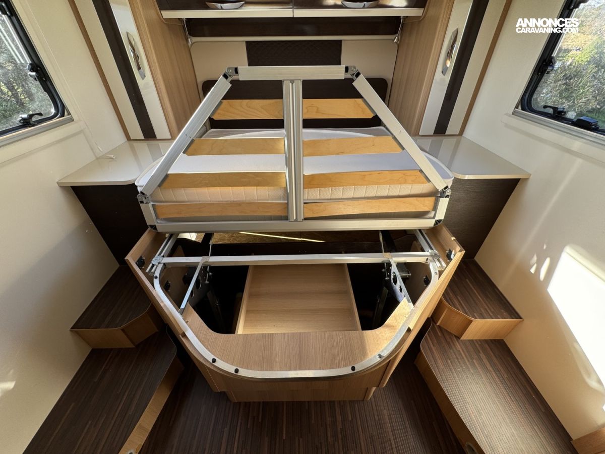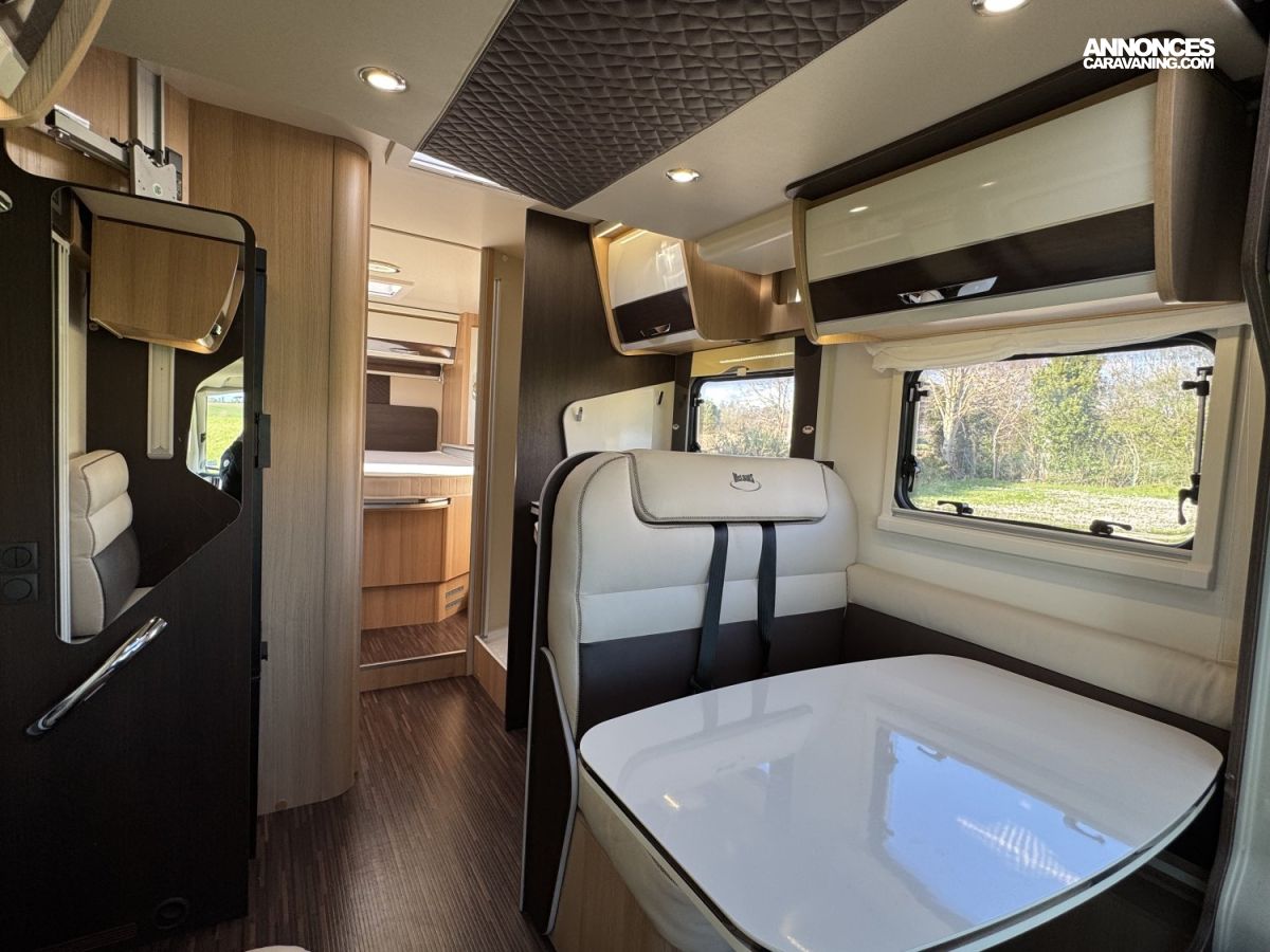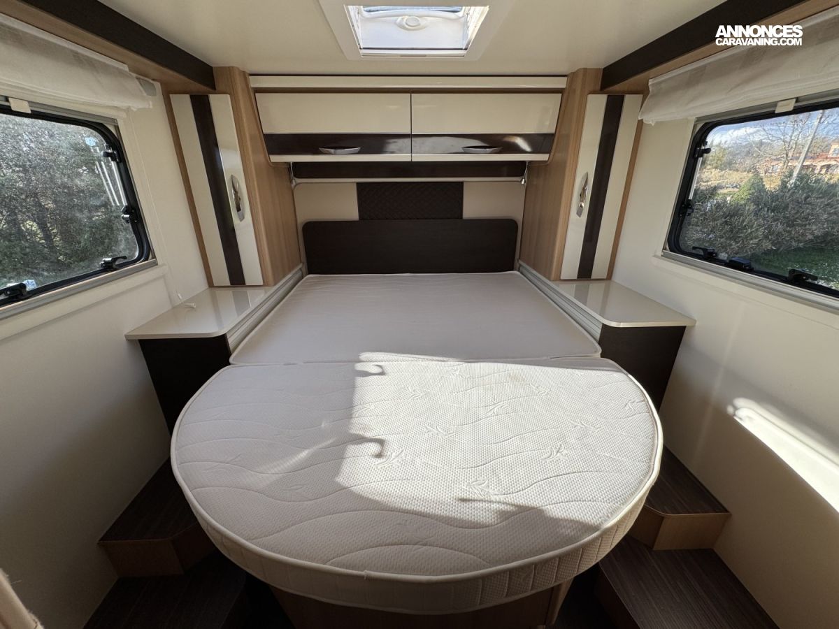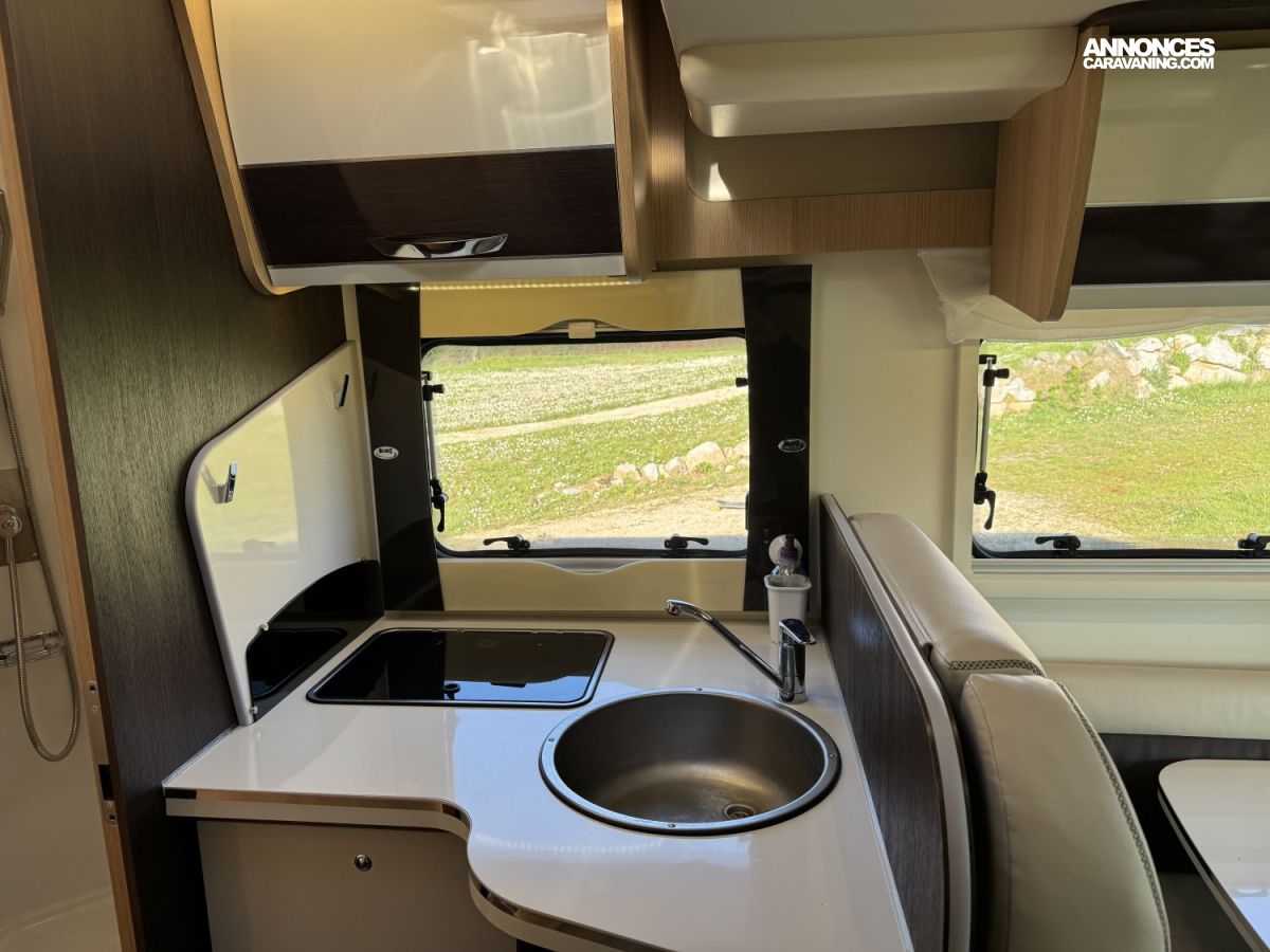 CHAUFFAGE COMBI TRUMA 4, FRIGO 140L AVEC TIROIR 9BOUTEILLES, STORE EXTERIEUR 4.5M, CUISINE EN L, DOUCHE ET WC SEPARES, ECLAIRAGE LED, REFRIGERATEUR TRI MIX, STORES PLISSES DE CABINE, VOLET ISOTHERME INTERIEUR, DOUBLE CLOISON DE SEPARATION, LANTERNEAU PANORAMIQUE