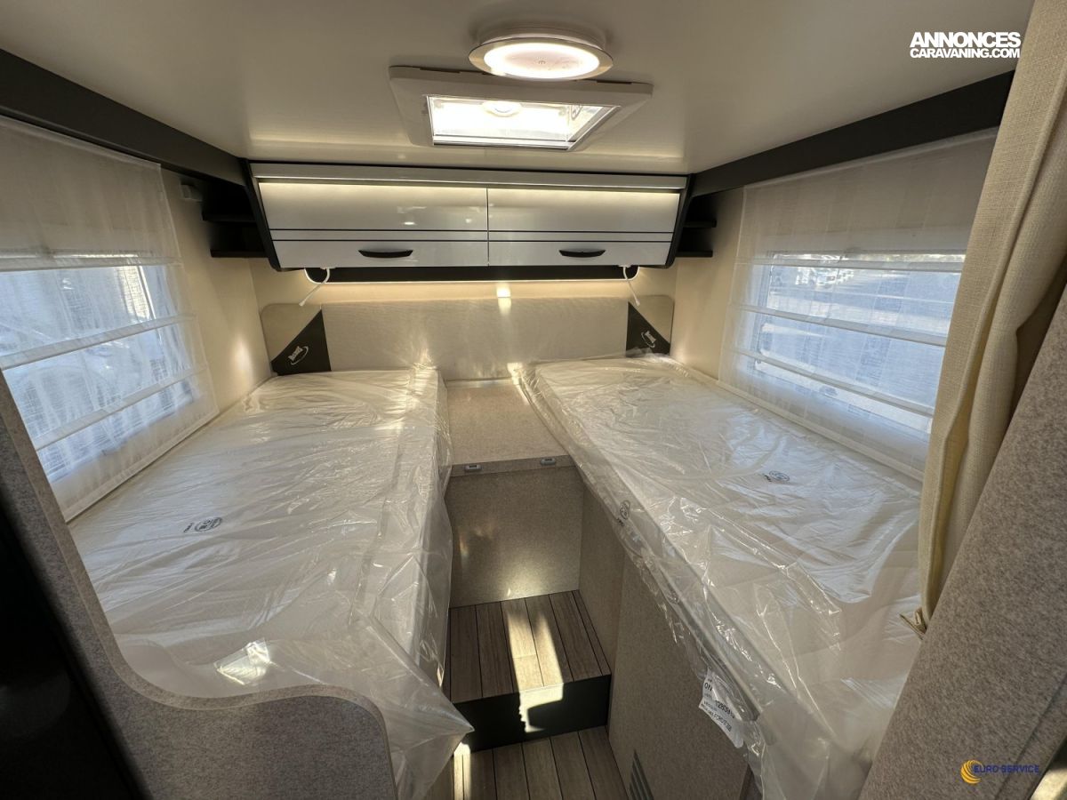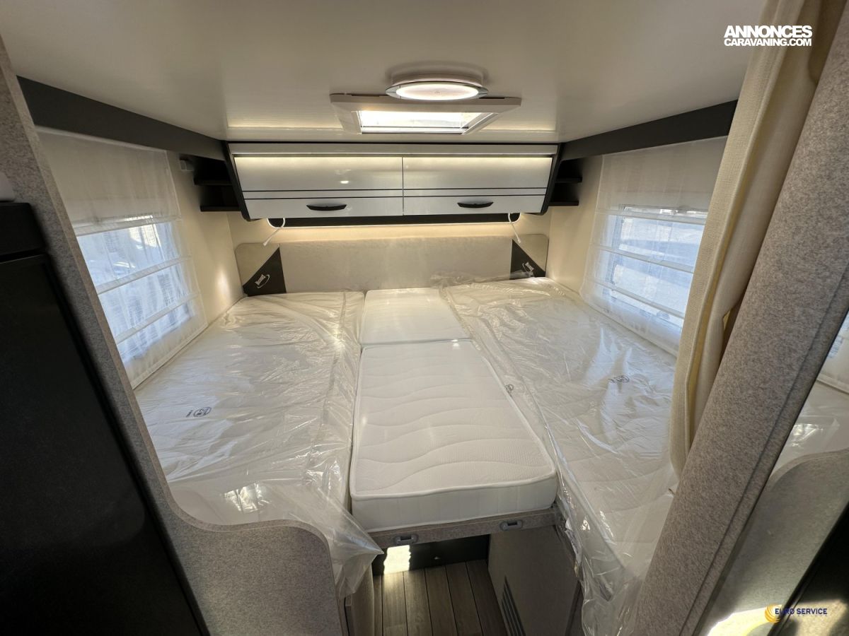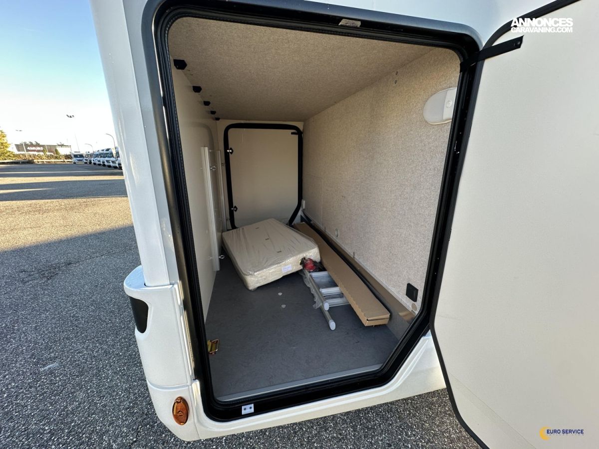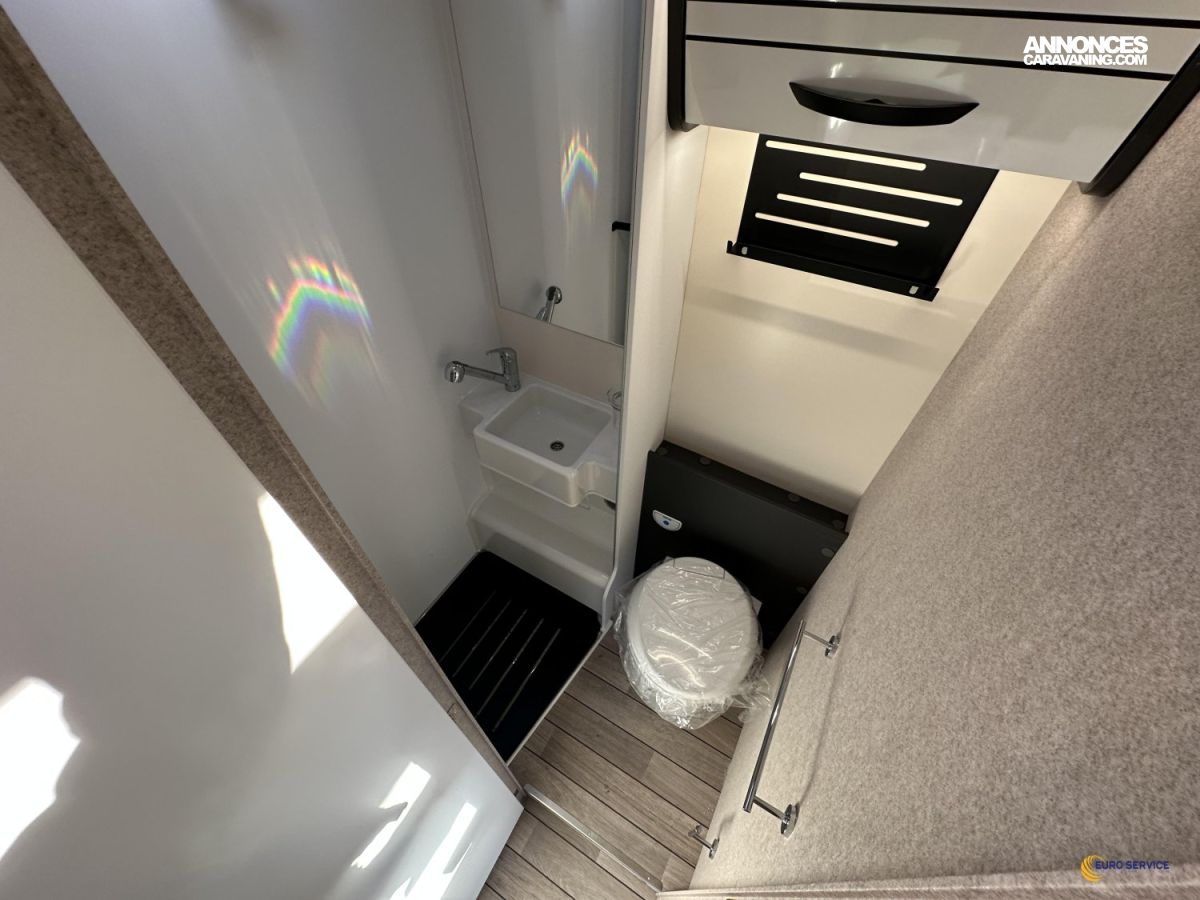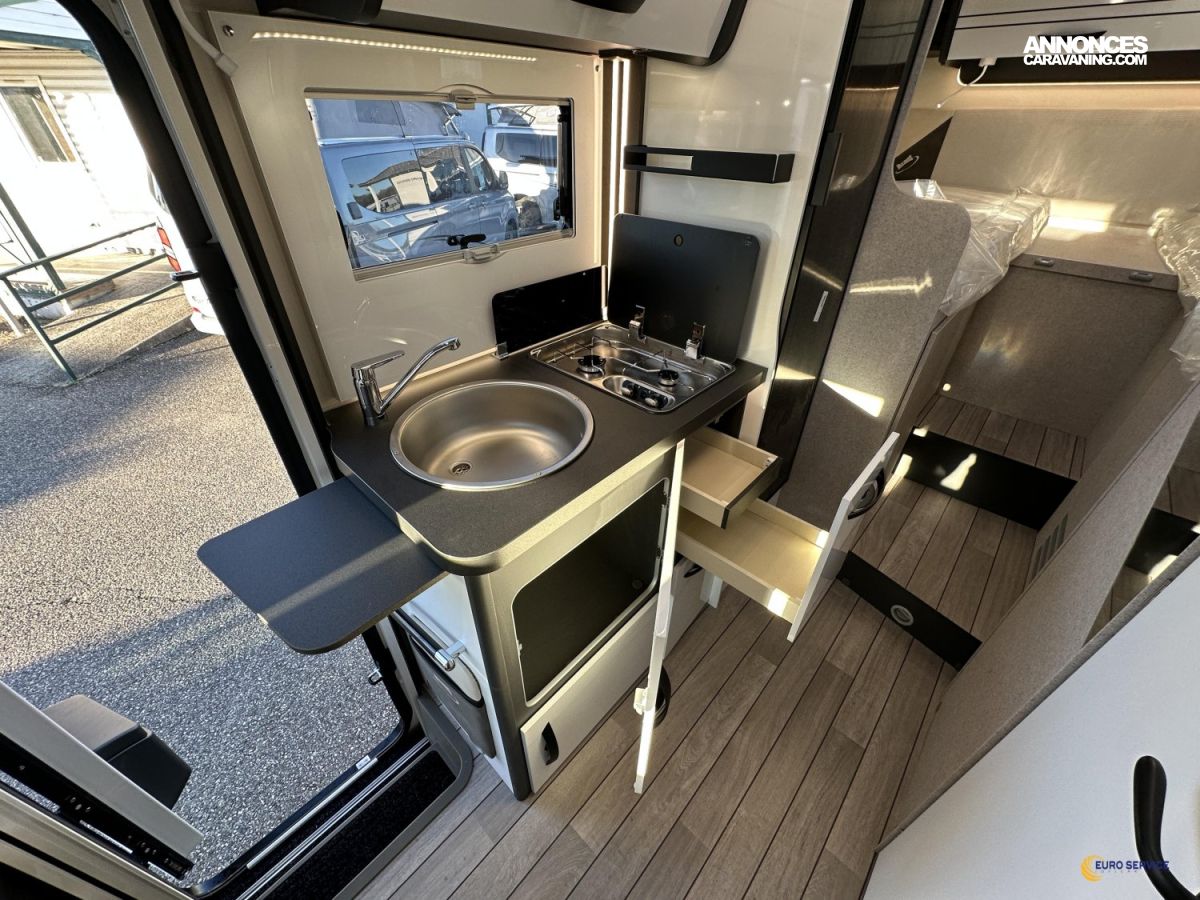 Pare-chocs avant blanc, Porte XL avec 2 points de fermeture fenêtre et fermeture centralisée, Panneau solaire 200W avec régulateur MPPT, Panneau de commandes CP-Plus, Support TV