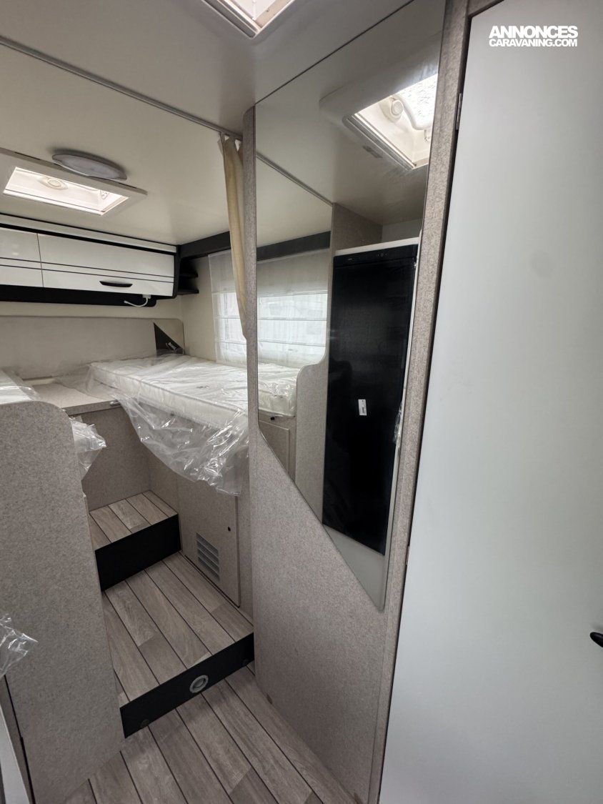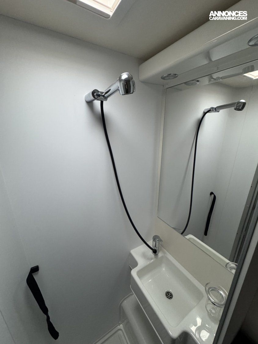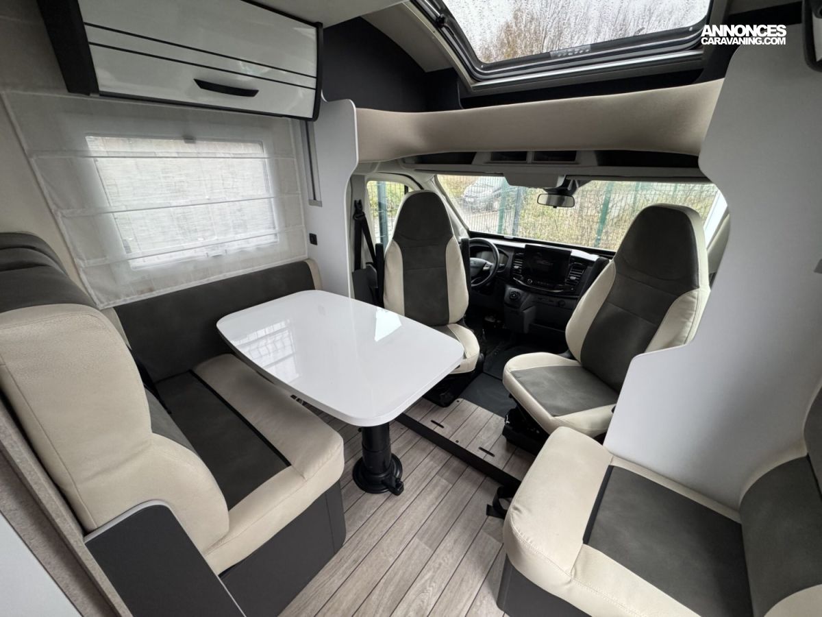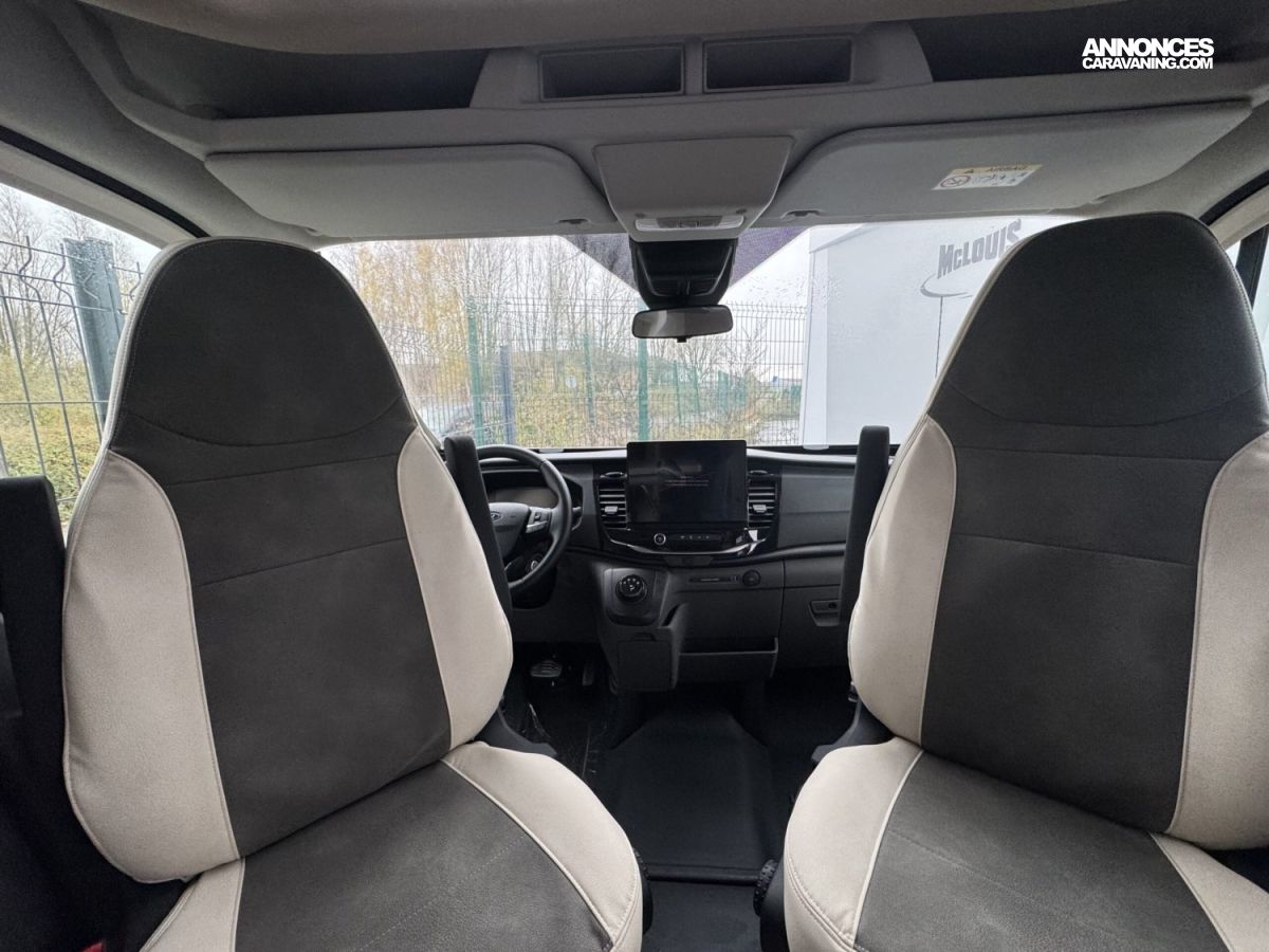 Réservoir Diesel 70Litres- Régulateur de vitesse (Cruise control) avec « Intelligent Speed Assist » – Feux de jours DRL-Feux anti-brouillard–Allumage automatique des phares – Essuie-glace automatique-Frein à main électrique–Service d’urgence FORD-Caméra de recul-Système de freinage avec atténuation de collision N2–Alerte et assistance au maintien dans la voie-Reconnaissance des panneaux de signalisation de vitesse –Avertissement du conduite en sens inverse-Capteurs de stationnement avant -Capteur de pression de gonflage des pneus -Écran tactile 12″ avec système SYNC 4 (Apple Car Play + Android Auto)-Tableau de bord semi-numérique de 8″ –Climatisation automatique-Modem 5G avec mises à jour sans fil également via smartphone –ABS/ESP, Start&Stop, double airbag, rétroviseurs réglables électriquement et dégivrants, Fix&Go (Kit réparation des pneus- •Carrosserie EXPS : Étanchéité maximale et isolation acoustique de l’habitacle. Intérieur murs et sol en matière plastique imperméable •Épaisseur du sol : 54 mm •Épaisseur du plafond et des murs : 30 mm •Toit extérieur en fibre de verre •Parois intérieures/extérieures en fibre de verre •Zone inférieure plancher châssis recouvert de fibre de verre-Chauffage Truma combi 4 Gaz (4000W) -5ème place homologuée -Transformation de la dinette en lit (lits supplémentaires- ISOFIX