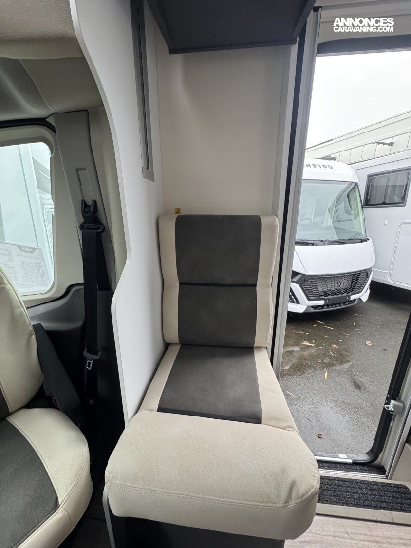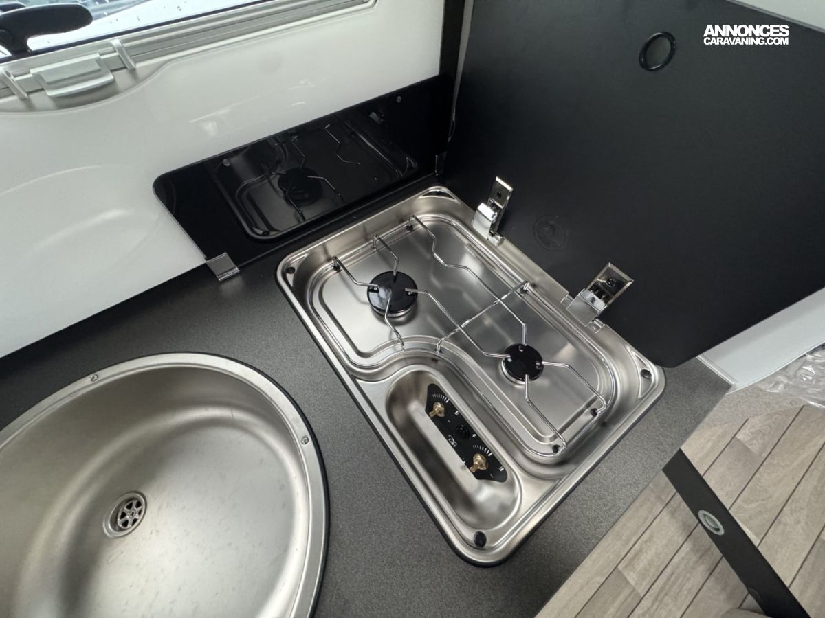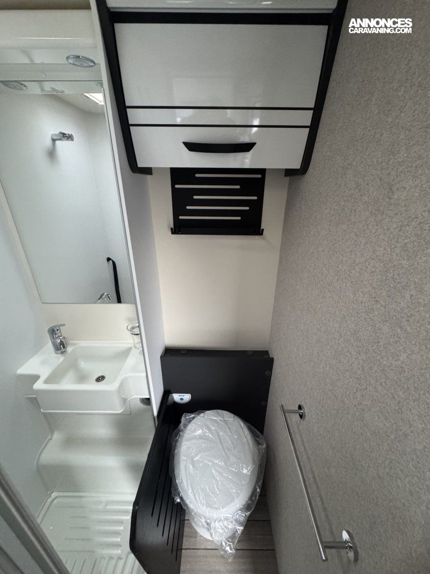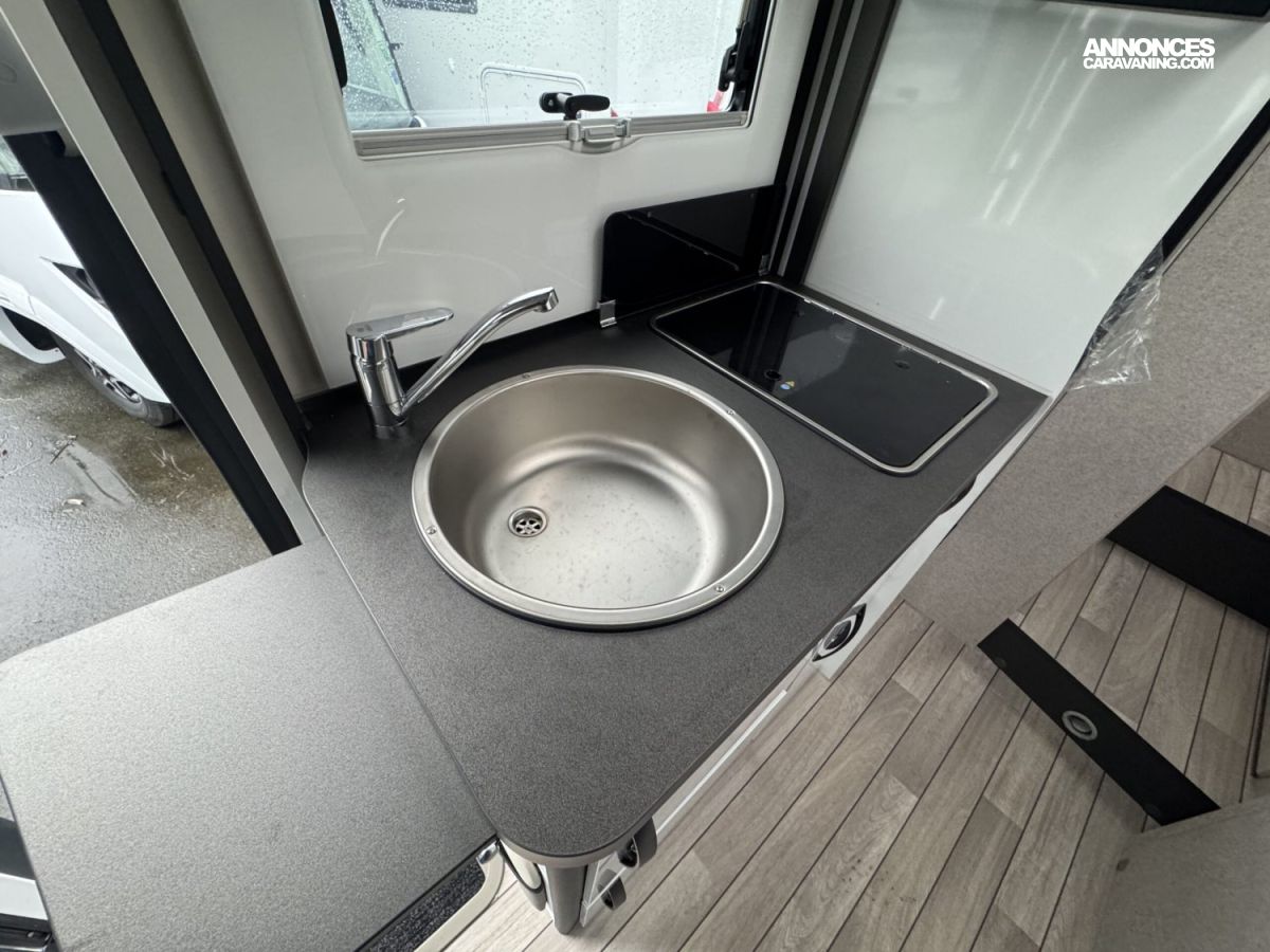 Réservoir Diesel 70Litres- Régulateur de vitesse (Cruise control) avec « Intelligent Speed Assist » – Feux de jours DRL-Feux anti-brouillard–Allumage automatique des phares – Essuie-glace automatique-Frein à main électrique–Service d’urgence FORD-Caméra de recul-Système de freinage avec atténuation de collision N2–Alerte et assistance au maintien dans la voie-Reconnaissance des panneaux de signalisation de vitesse –Avertissement du conduite en sens inverse-Capteurs de stationnement avant -Capteur de pression de gonflage des pneus -Écran tactile 12″ avec système SYNC 4 (Apple Car Play + Android Auto)-Tableau de bord semi-numérique de 8″ –Climatisation automatique-Modem 5G avec mises à jour sans fil également via smartphone –ABS/ESP, Start&Stop, double airbag, rétroviseurs réglables électriquement et dégivrants, Fix&Go (Kit réparation des pneus- •Carrosserie EXPS : Étanchéité maximale et isolation acoustique de l’habitacle. Intérieur murs et sol en matière plastique imperméable •Épaisseur du sol : 54 mm •Épaisseur du plafond et des murs : 30 mm •Toit extérieur en fibre de verre •Parois intérieures/extérieures en fibre de verre •Zone inférieure plancher châssis recouvert de fibre de verre-Chauffage Truma combi 4 Gaz (4000W) -5ème place homologuée -Transformation de la dinette en lit (lits supplémentaires- ISOFIX