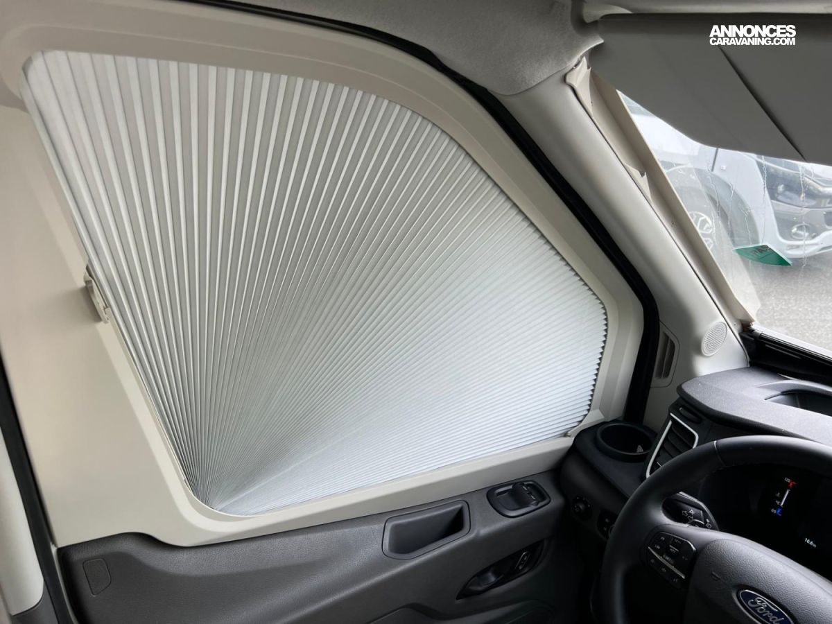 PACK SERIE 300 FORD :, Support TV, Panneau solaire 200 w avec regulateur MPPT, PACK MATIC :, Skid plate noir, Jantes alliage 16", Volant cuir, Prise externe multimedia, Guide et ancrage dans la soute, Boite Automatique, PACK ENJOY OUTDOOR :, Store exterieur Blanc, Prise de gaz externe, Douchette exterieure, Feux antibrouillard, Frein à main electrique