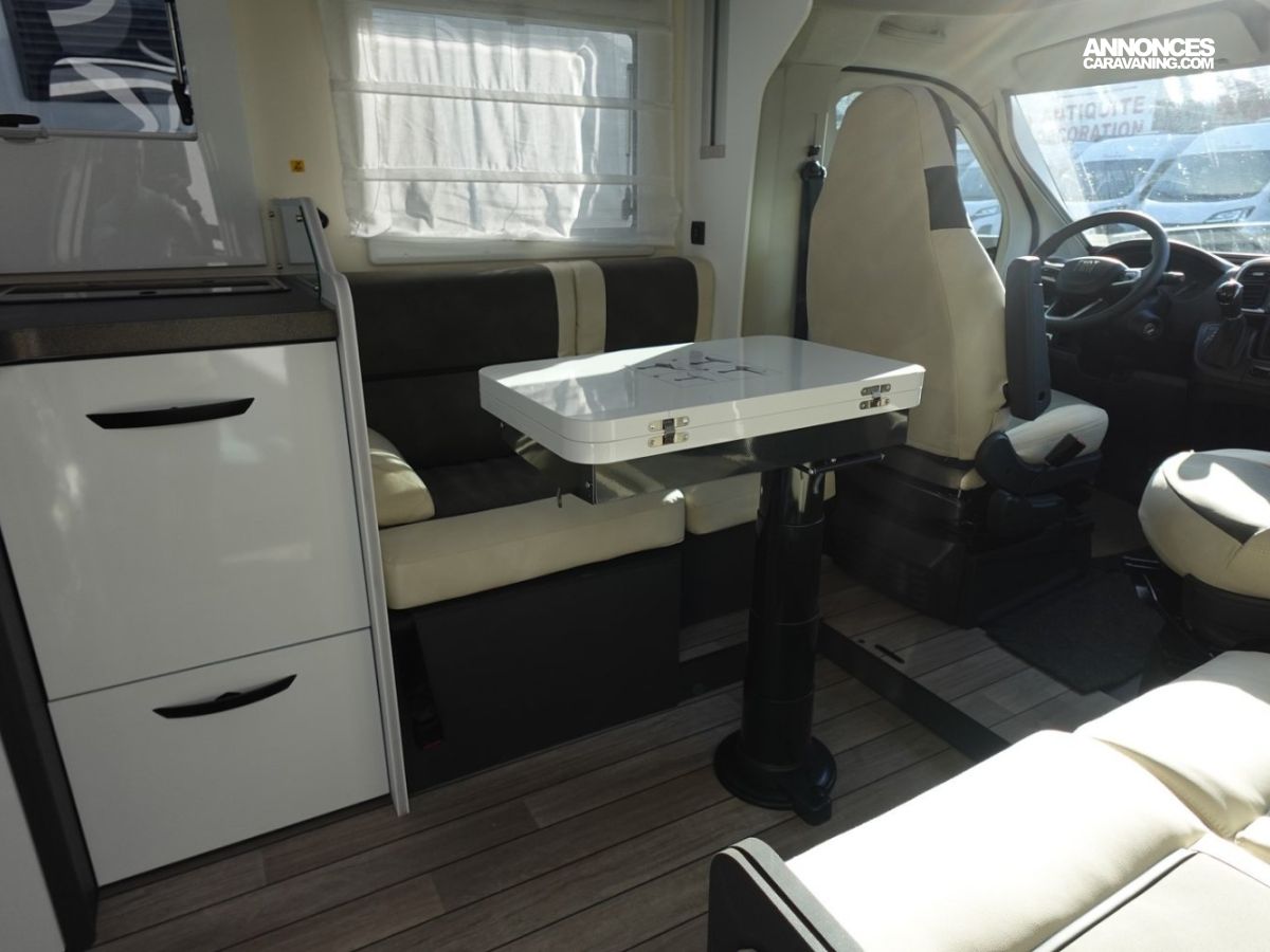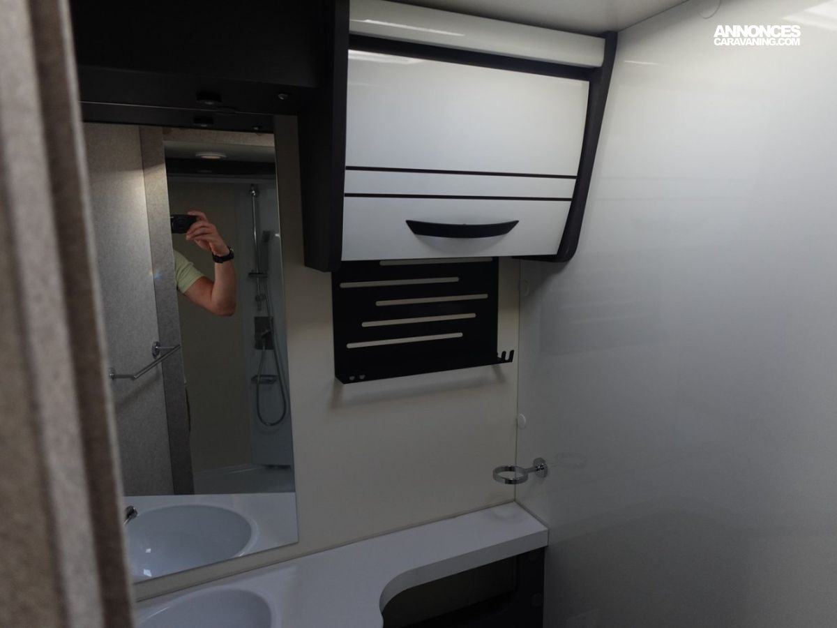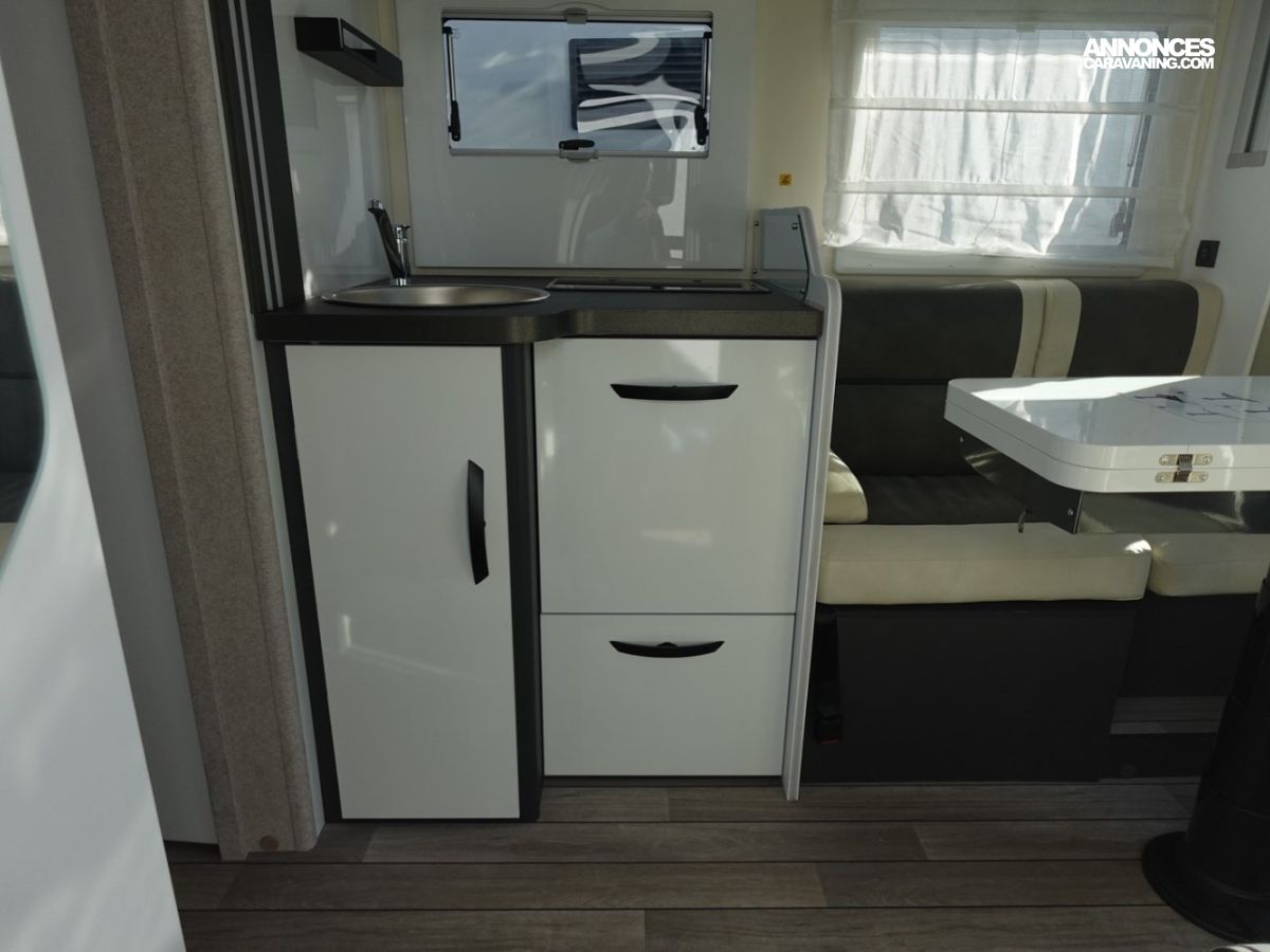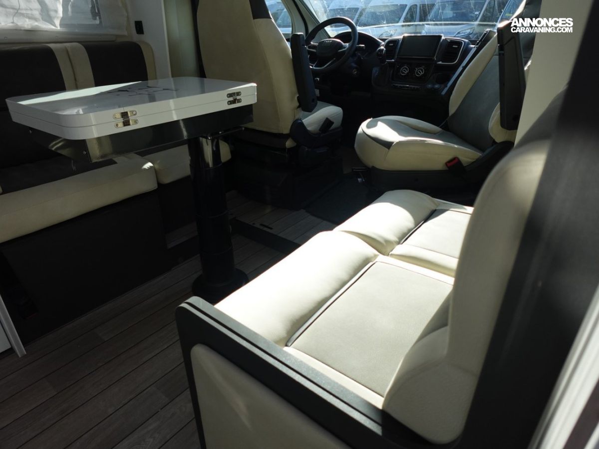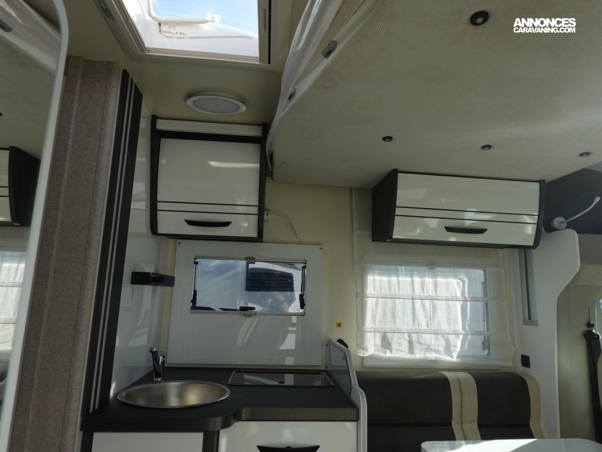 Magnifique profilé comprenant un grand salon avant panoramique avec banquette face / face, une douche indépendante de l’espace WC/lavabo, un lit central et une cuisine en L avec de nombreux rangements.