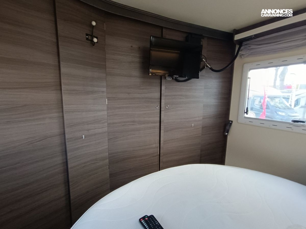 STORES AVANT PLISSES, PANNEAU SOLAIRE, ECLAIRAGE EXTERIEUR, SECUMOTION, ANTENNE AUTOMATIQUE, PORTE VELOS, REGULATEUR + LIMITEUR DE VITESSES, CLIMATISATION MOTEUR, DOUBLE AIRBAG, TRACTION PLUS, LIT DE PAVILLON, FOUR A GAZ, 5 PLACES CG, 1 TV ARRIERE, TURBOVENT, FERMETURE CENTRALISEE, MOUSTIQUAIRE DE PORTE, STORE EXTERIEUR, RADIO