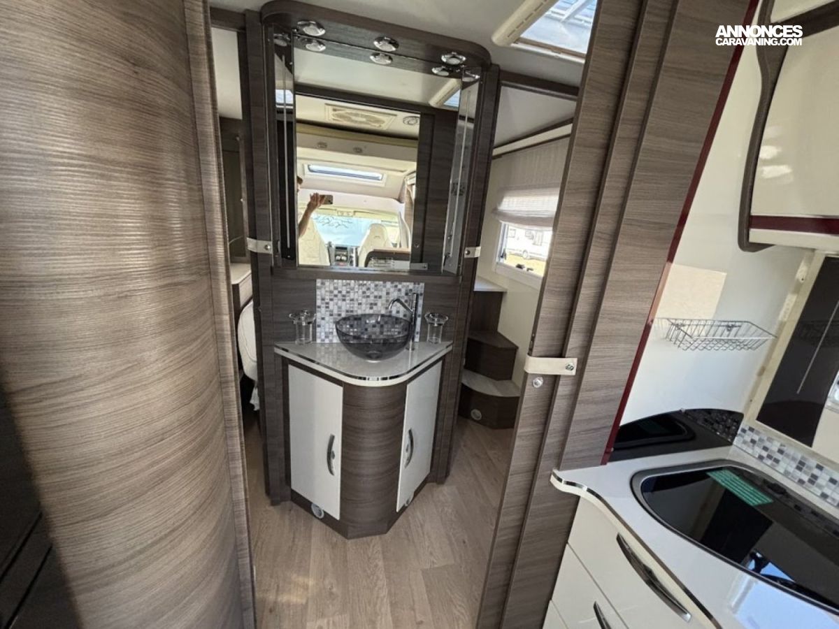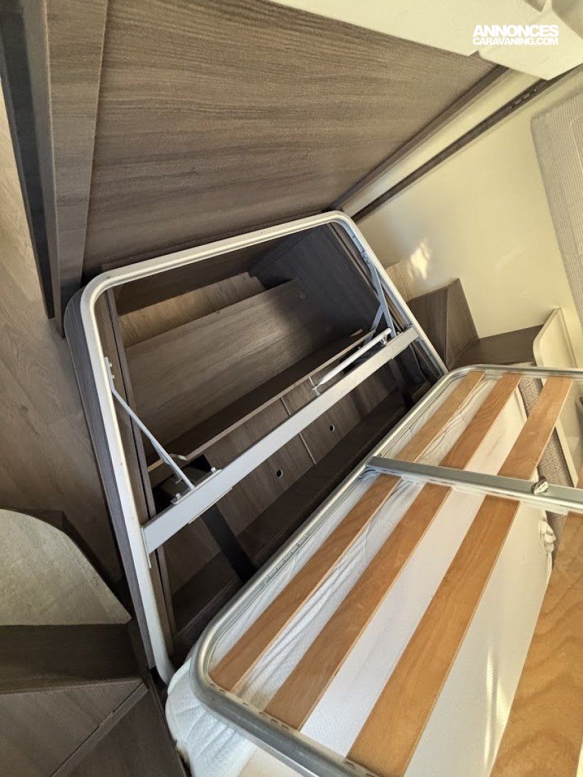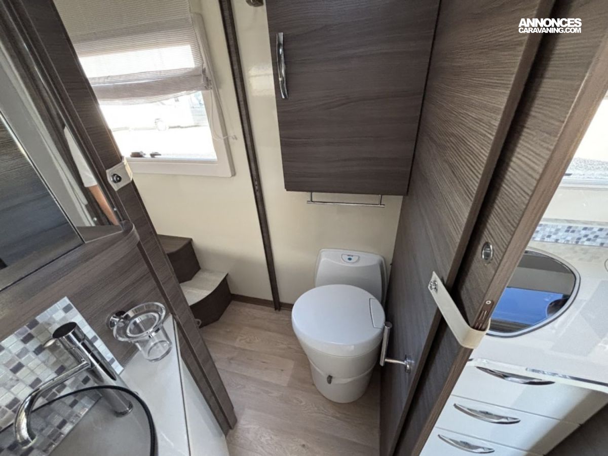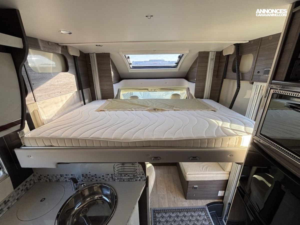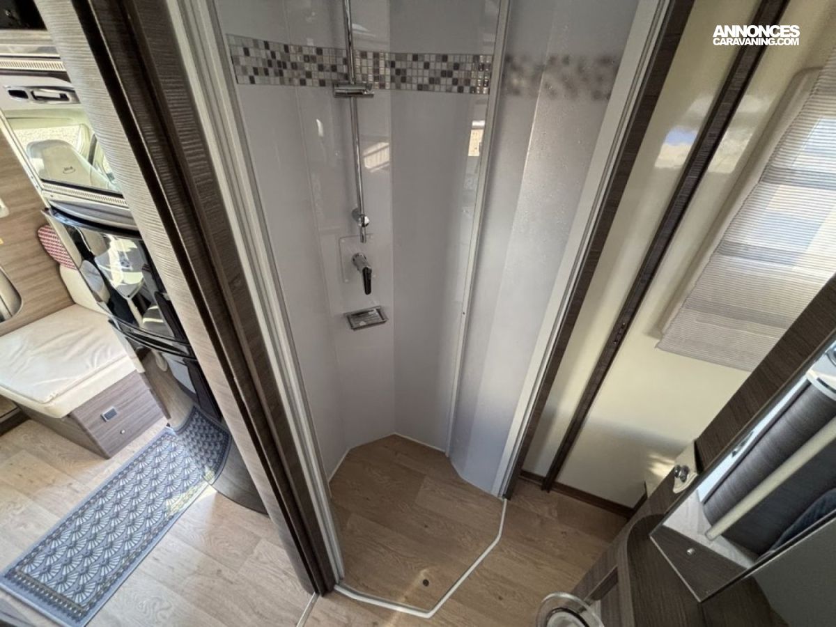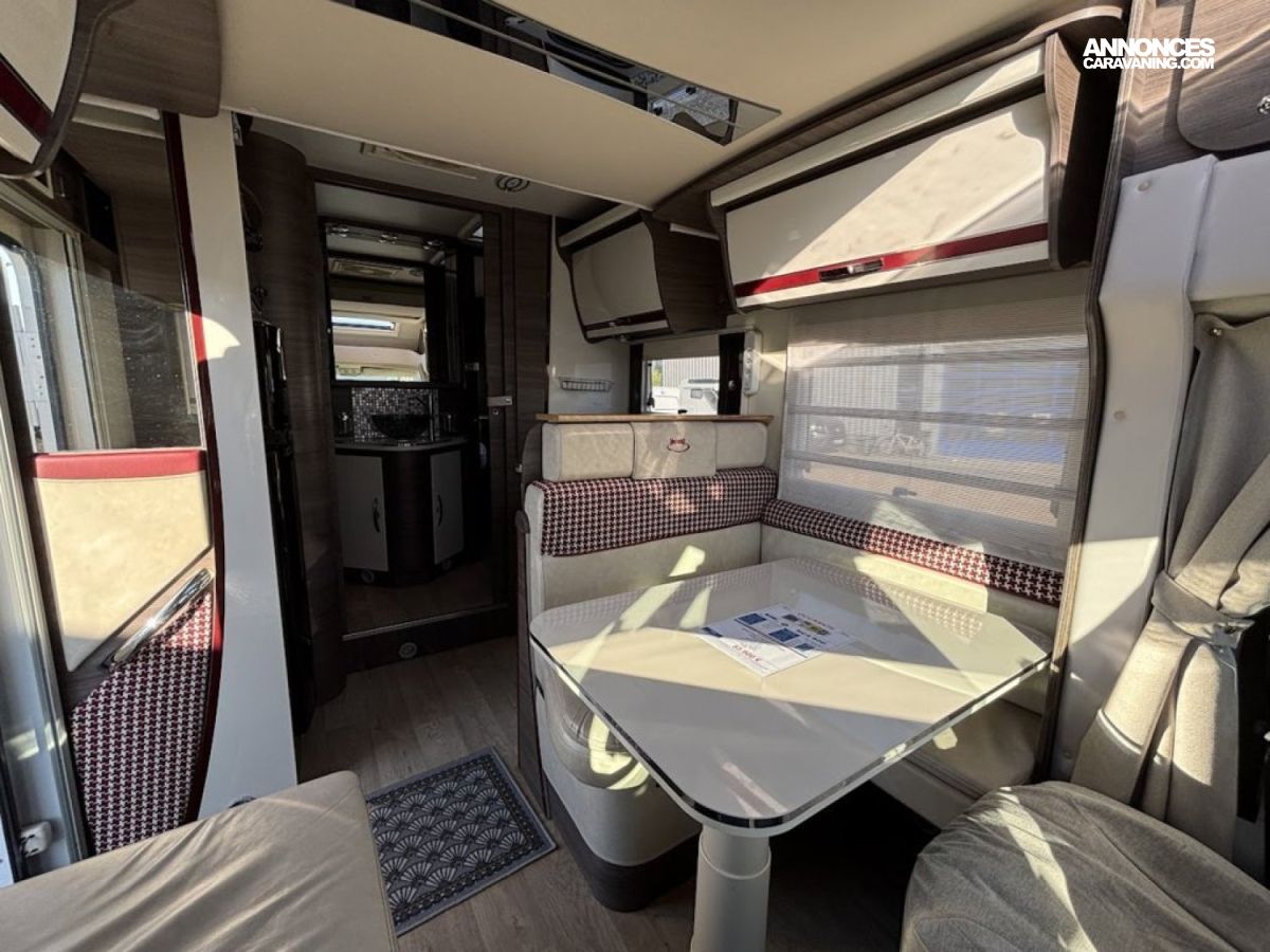 Cuisine en L, Douche indépendante, Ilot lavabo central, Lit central, Lit dînette avant, lit pavillon, Salon avant sièges pivotants, Salon en L, Soute réglable en hauteur, WC Cassette.
