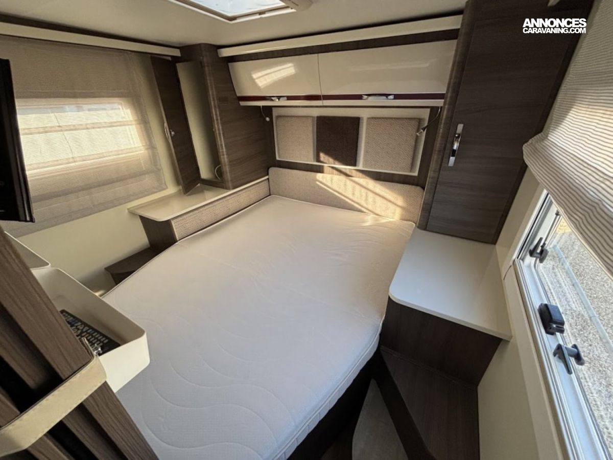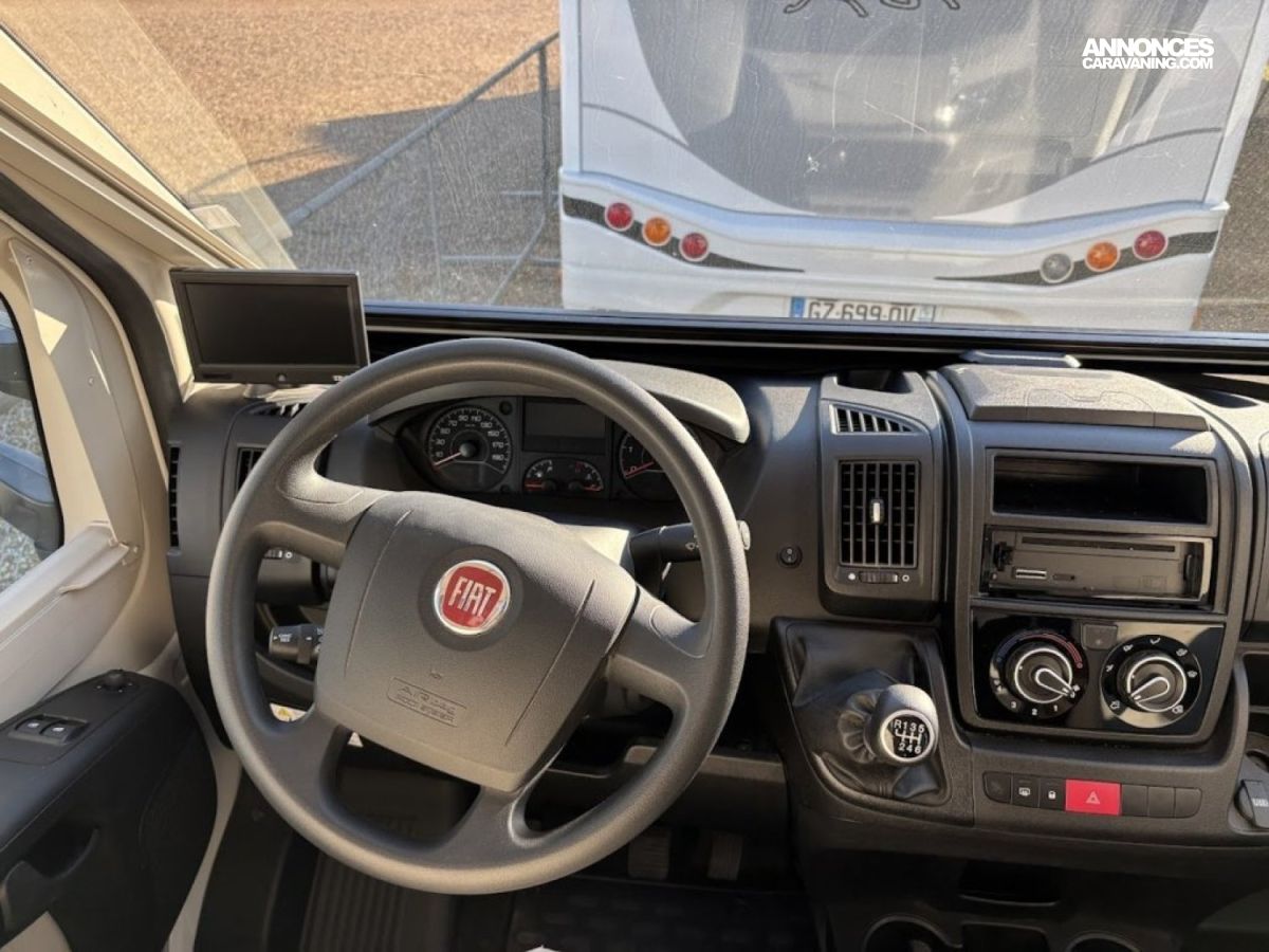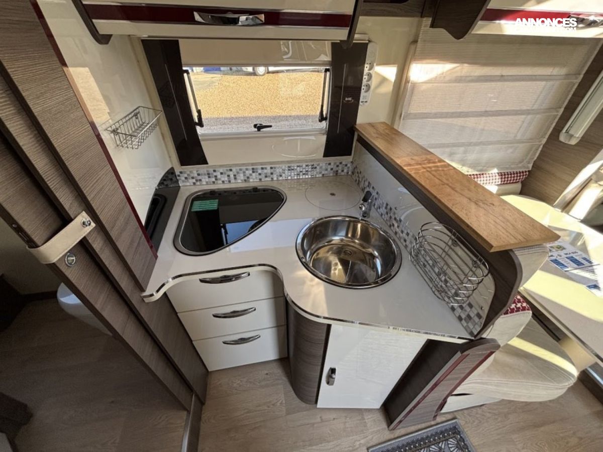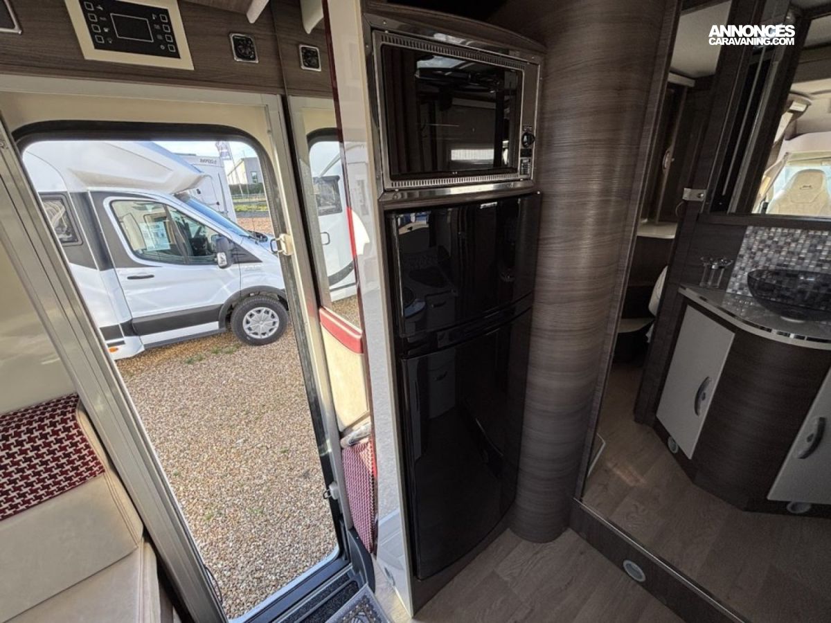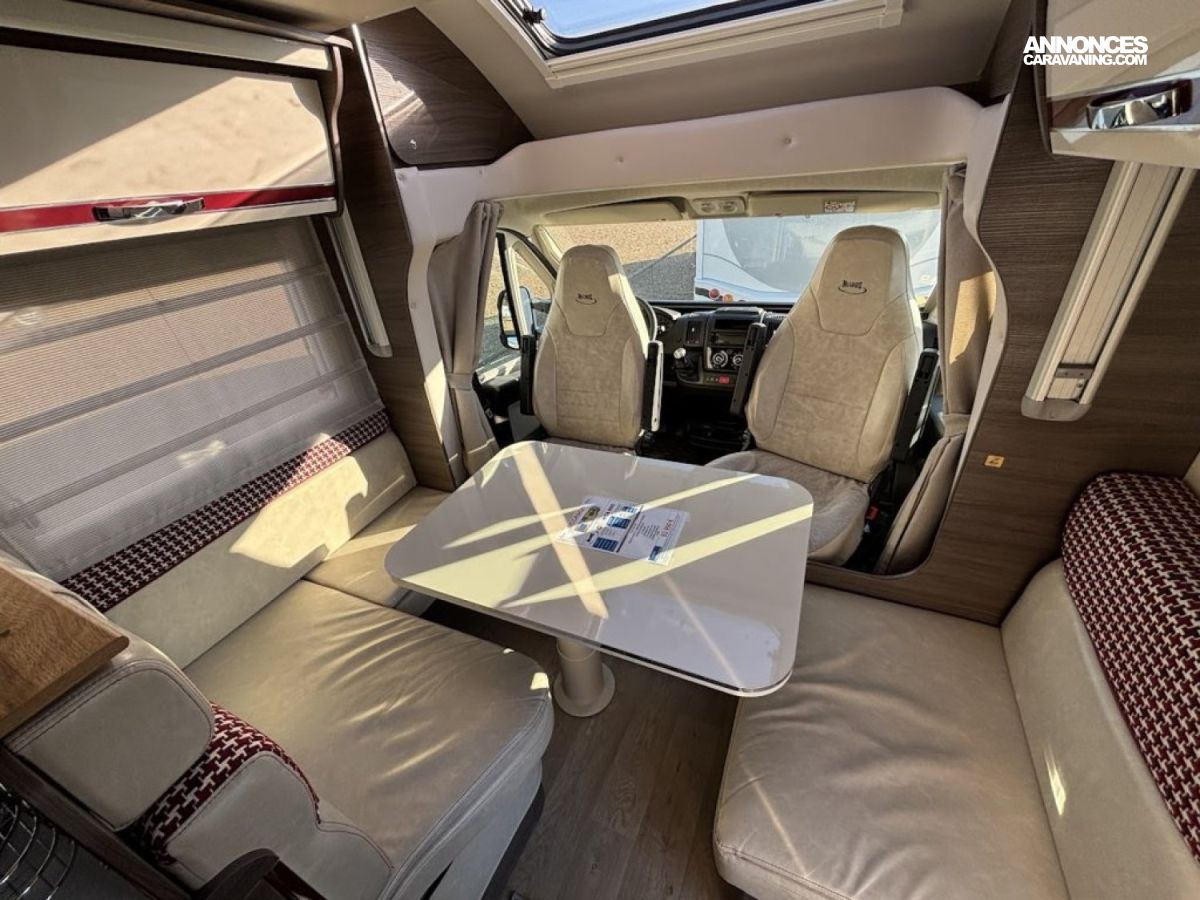 Cuisine en L, Douche indépendante, Ilot lavabo central, Lit central, Lit dînette avant, lit pavillon, Salon avant sièges pivotants, Salon en L, Soute réglable en hauteur, WC Cassette.