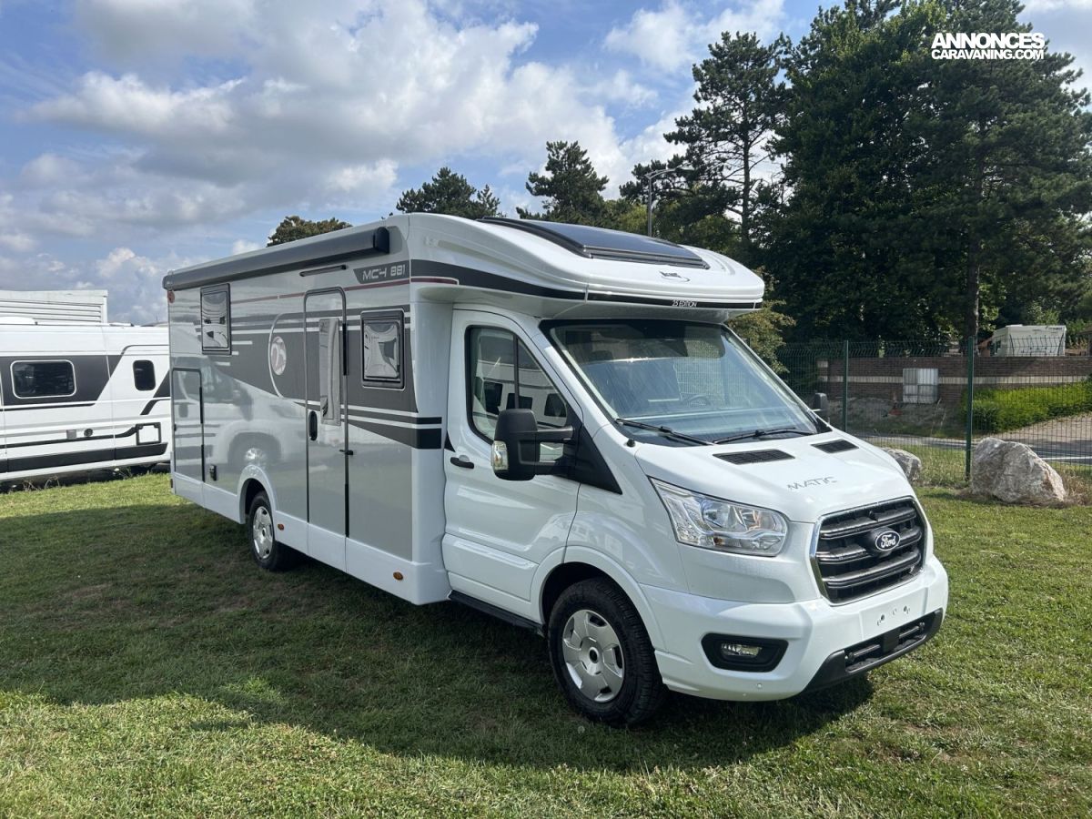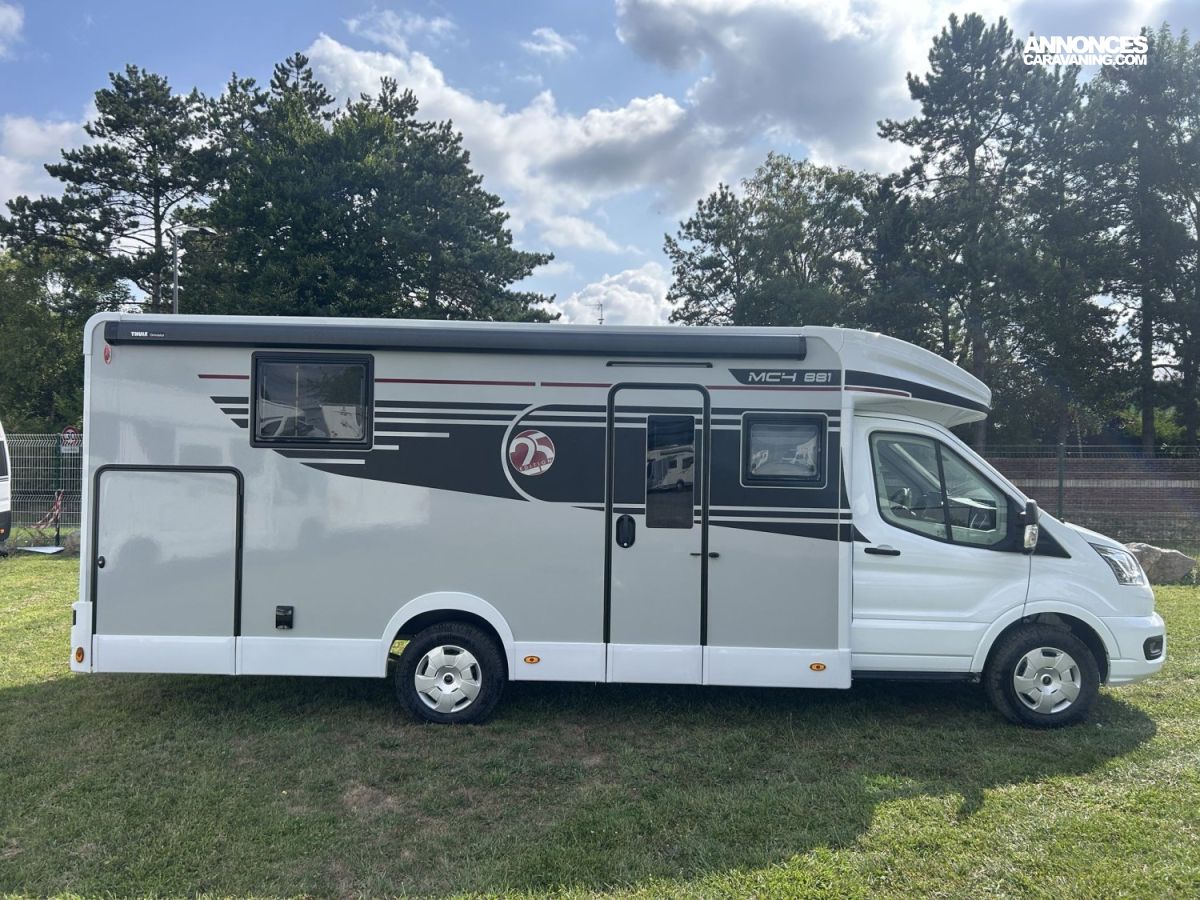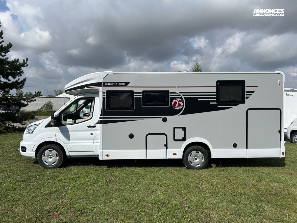 Profilé avec lit de pavillon de 7,45 mètres avec lit central à l’arrière et dînette face-à-face. Boite auto 165cv