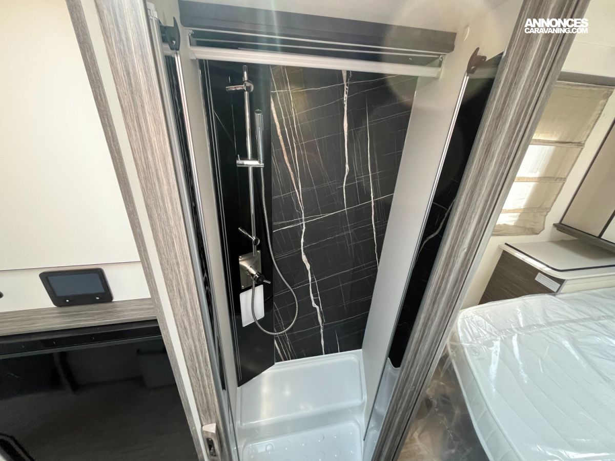 Édition spéciale 25 ans avec design et sellerie exclusifs. Équipements premium : Pack Plein Air (store extérieur, prise de gaz, douchette) et Pack Série 800 Mc4 Ford (feux adaptatifs, skyroof, porte XL, panneau solaire 200W, store occultant cabine, support TV, housses coordonnées, finitions intérieures haut de gamme). Confort et autonomie pour voyager sereinement en couple ou en famille.